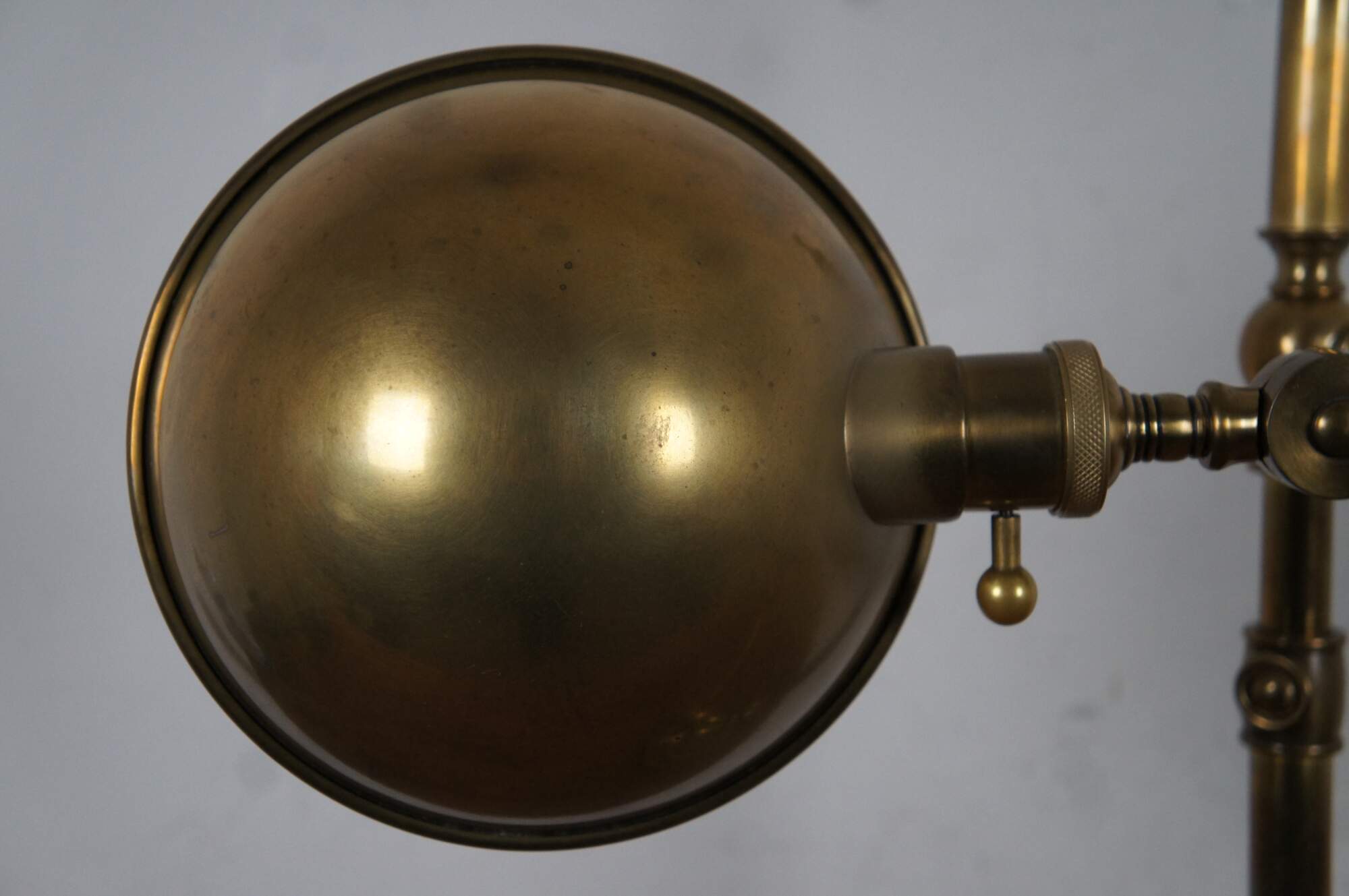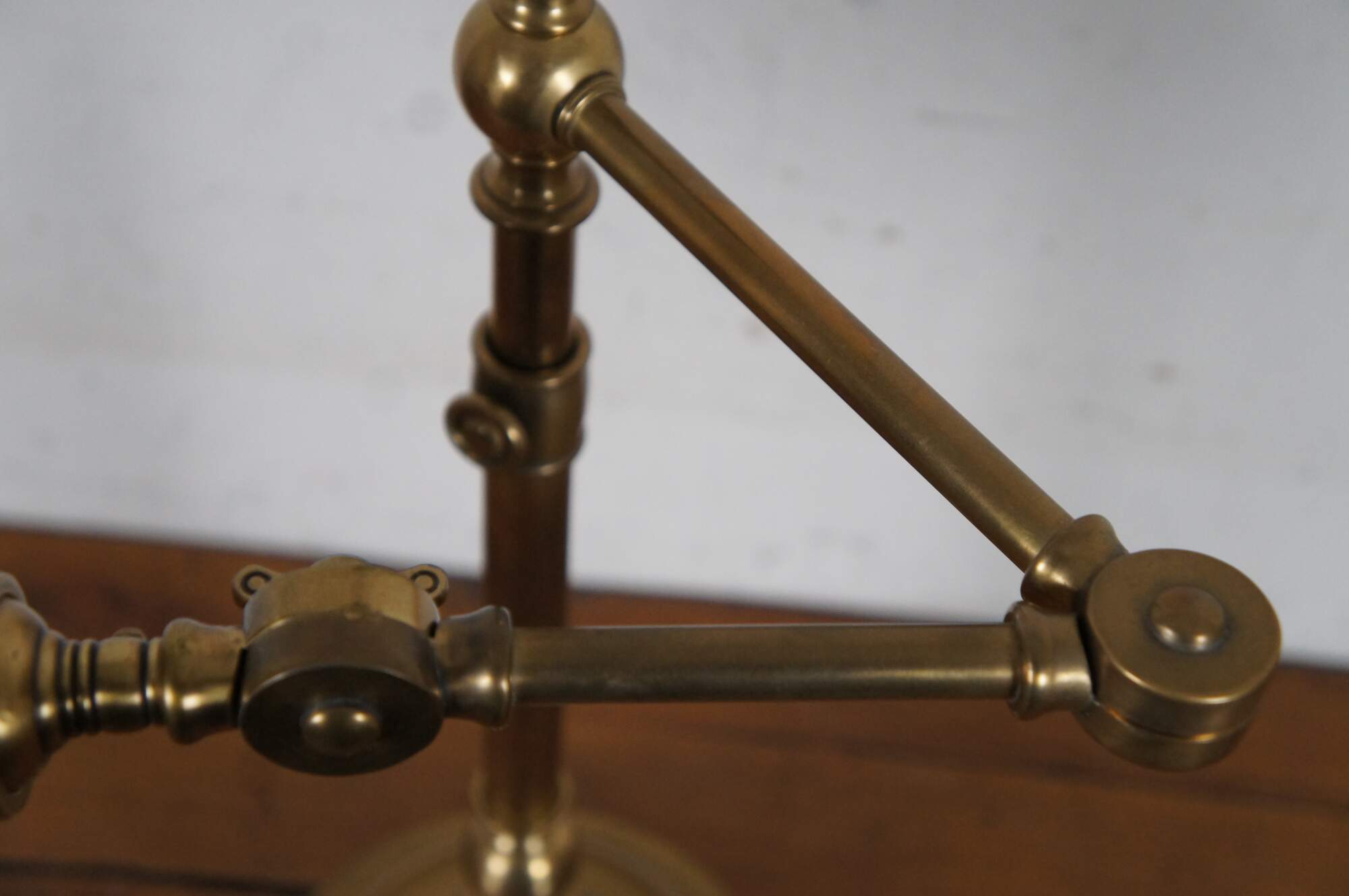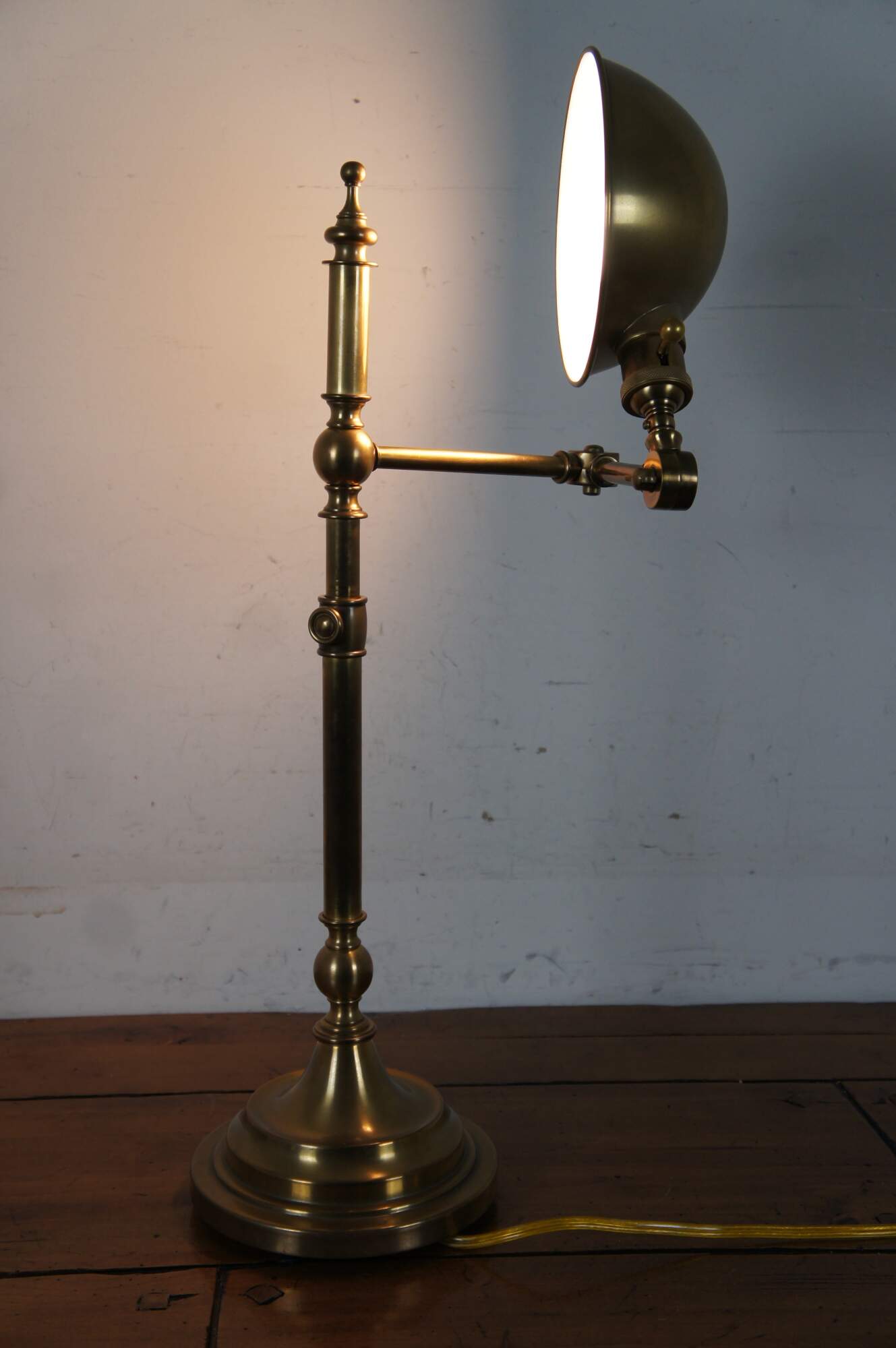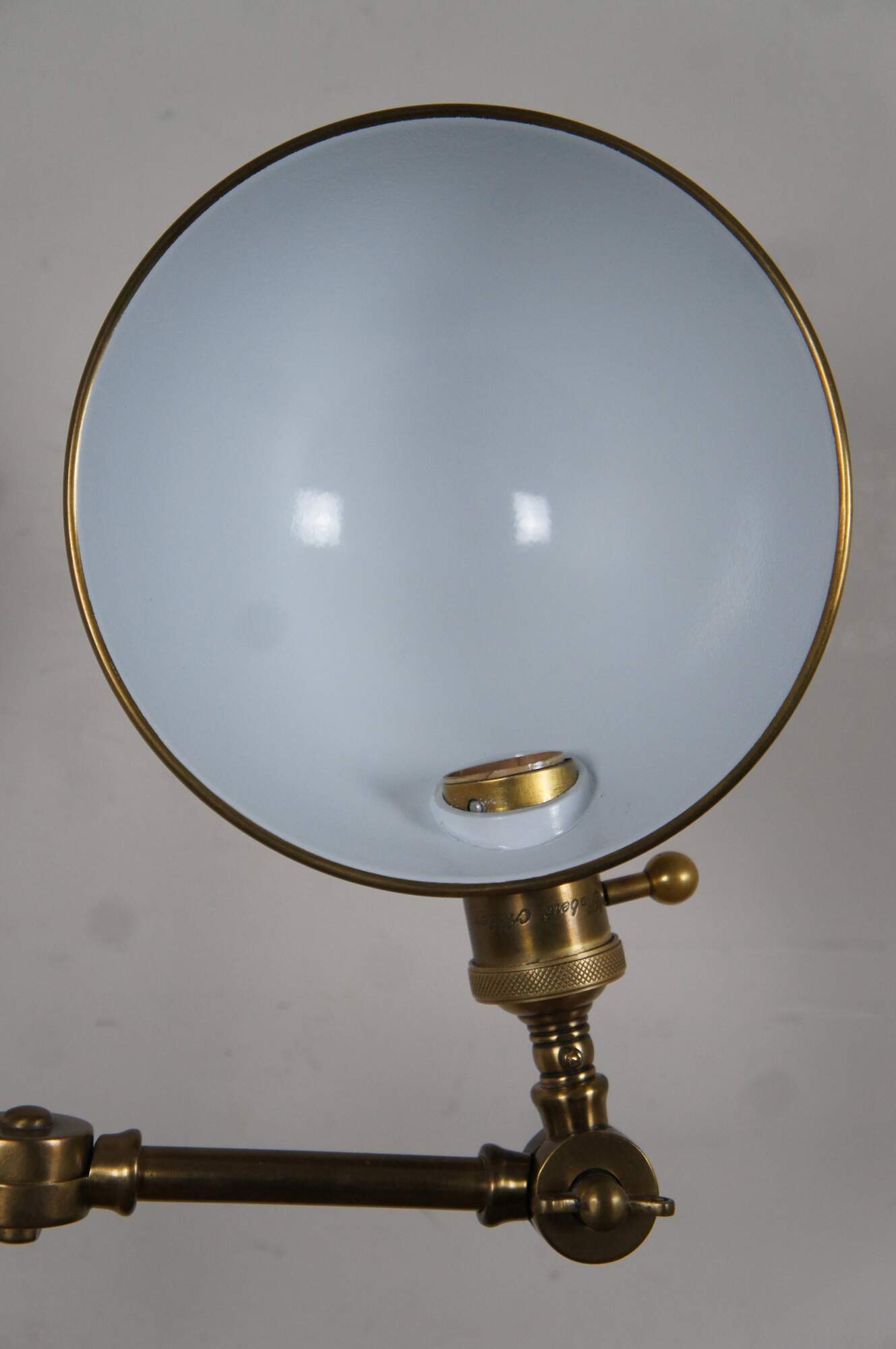 Robert Abbey Ant Bee articulated swing arm table / library desk pharmacy style lamp in antique brass finish. Circa 2003.