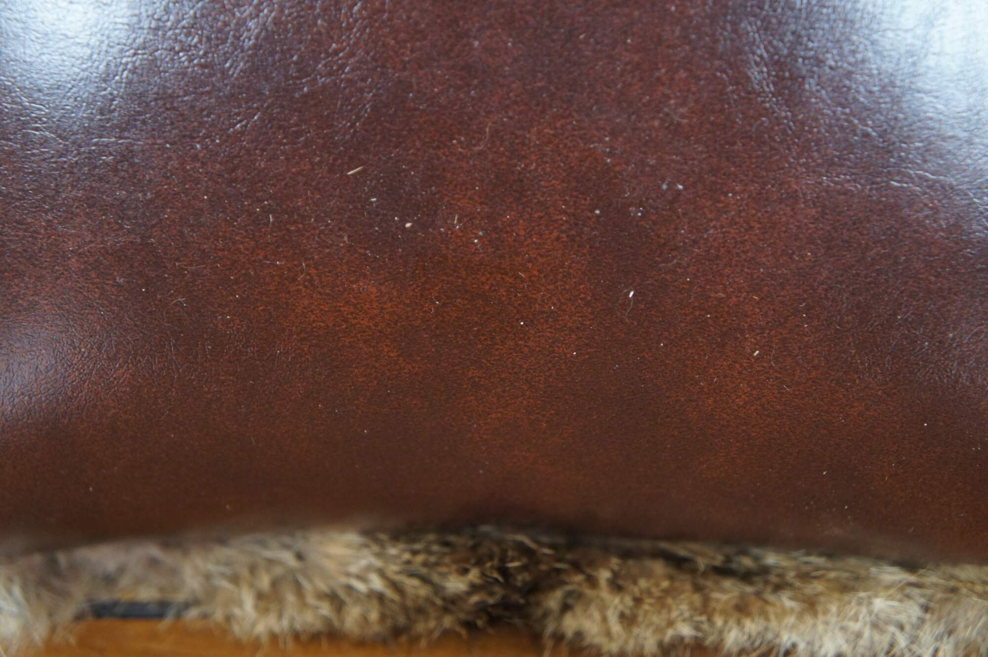 Vintage real coyote fur / pelt throw pillow in shades of light brown with streaks of black, backed with mahogany brown leather. Kapok filled pillow form.