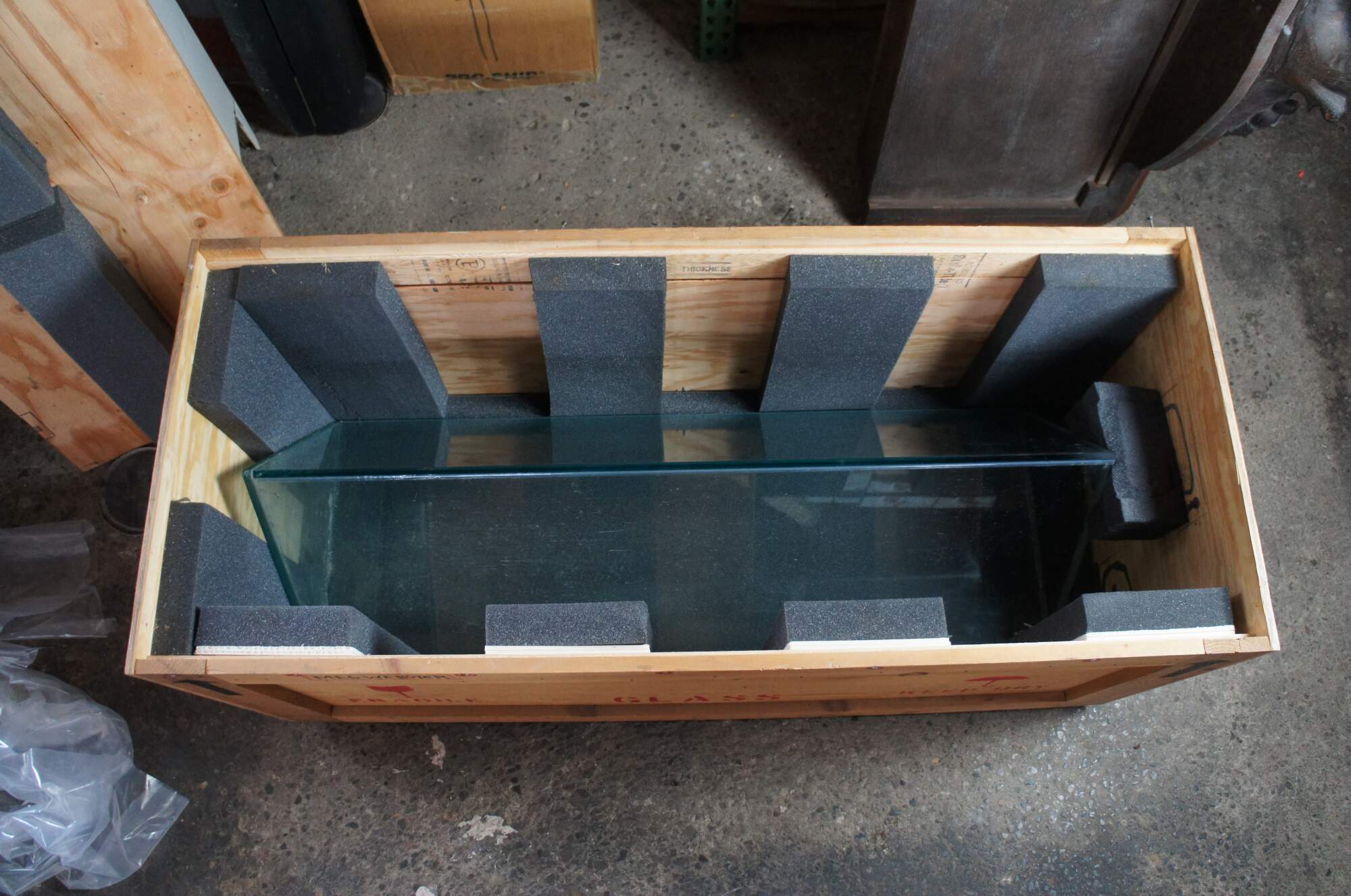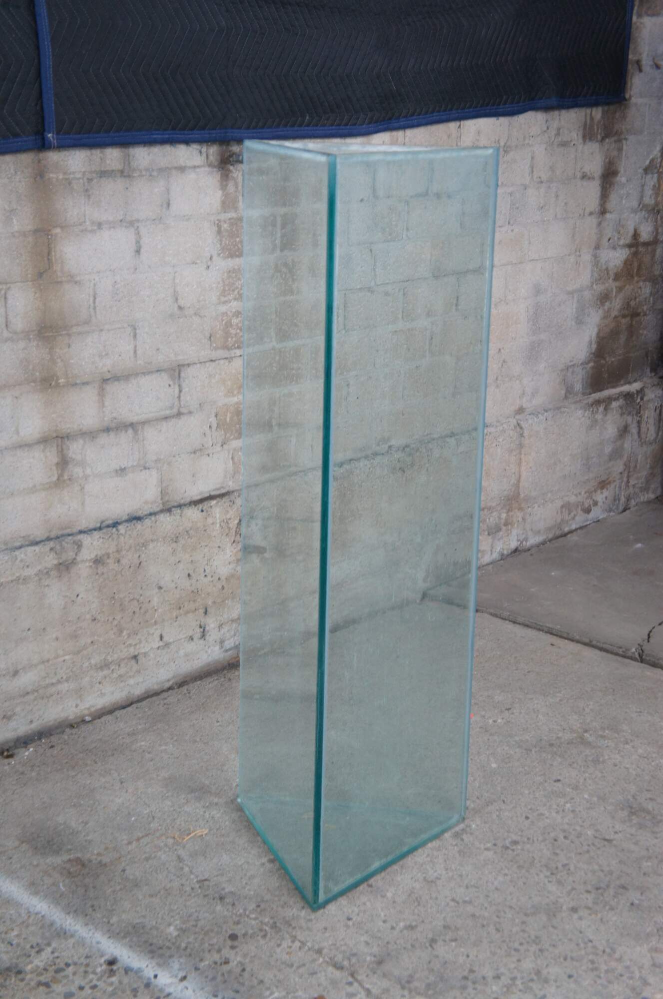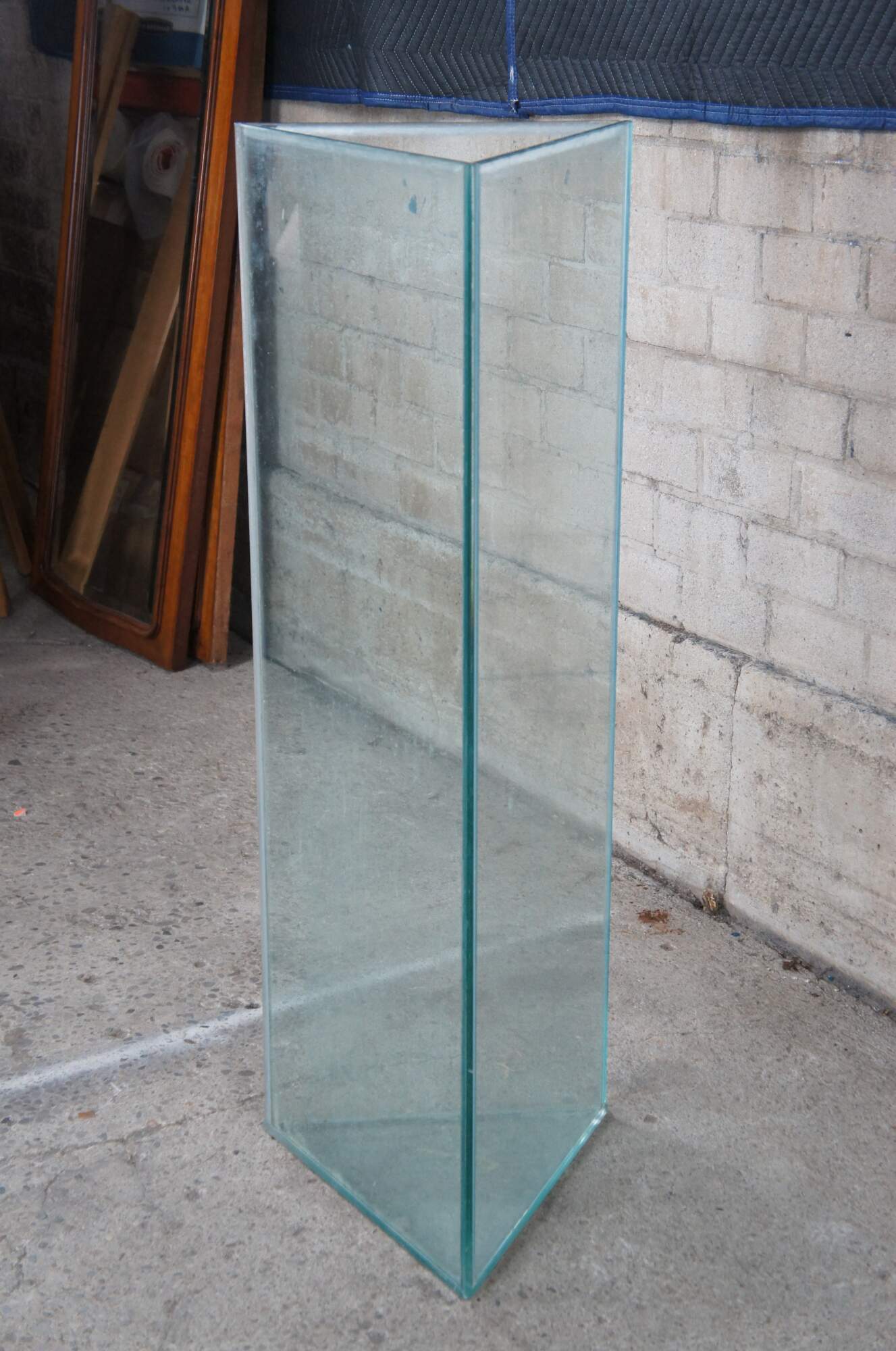 Vintage 1987 Meg Webster Contained Pond Water art pedestal sculpture. Made of thick glass in the form of a triangle or prism, intended to contain pond water. Crate included. Water and algae not. This work is from an edition of three.