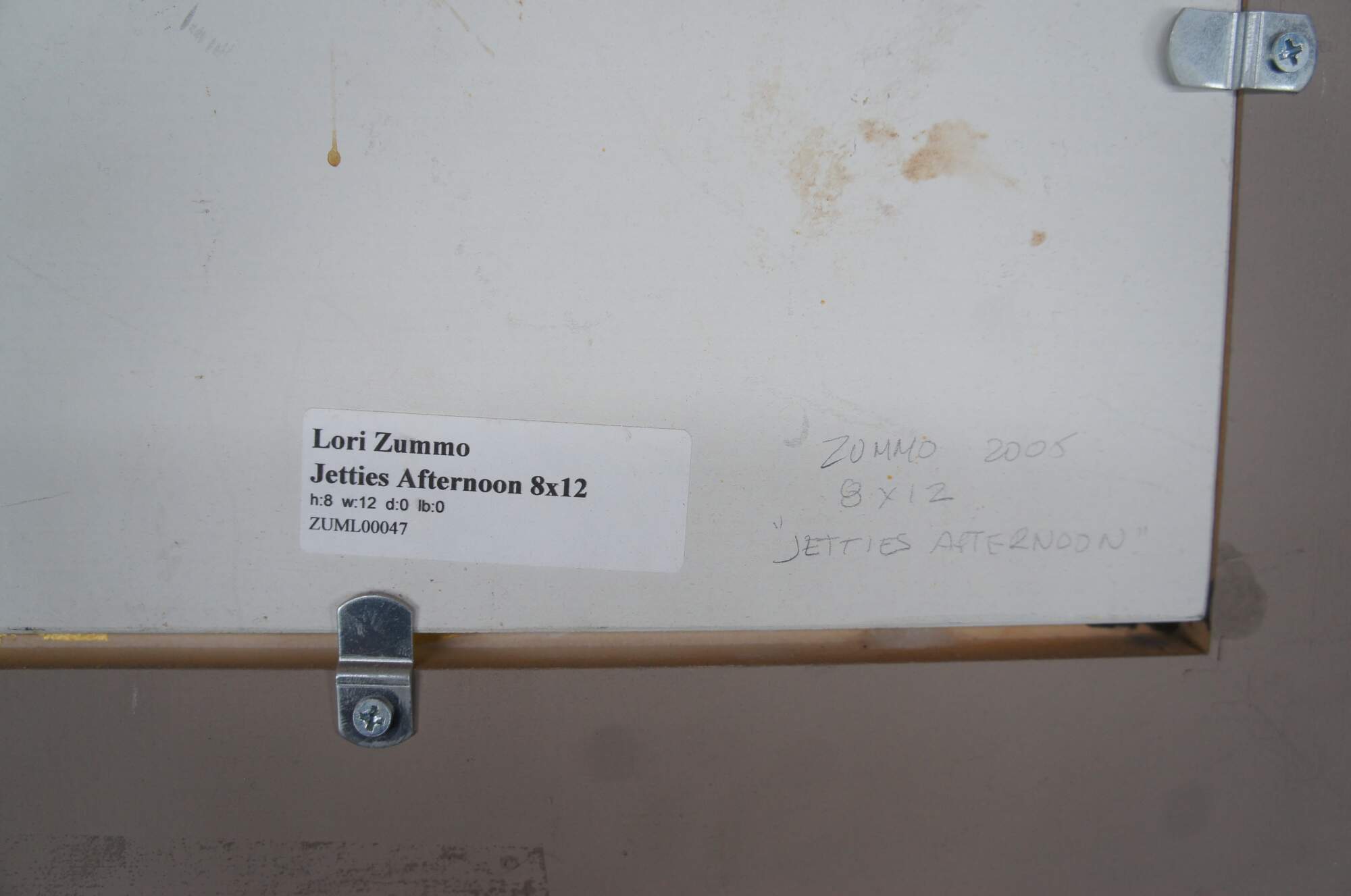 Vintage Lori Zummo Nantucket landscape / seascape oil painting on board titled Jetties Afternoon.