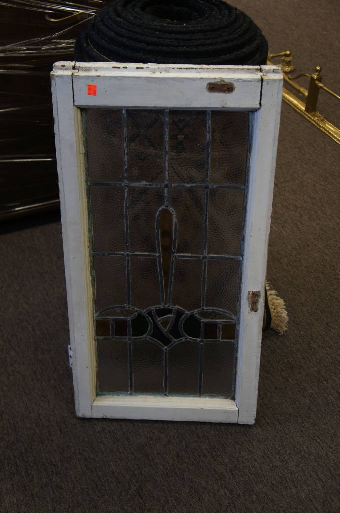 Here is a colorful stained glass panel. A leaded criss-cross pattern with a colorful design.