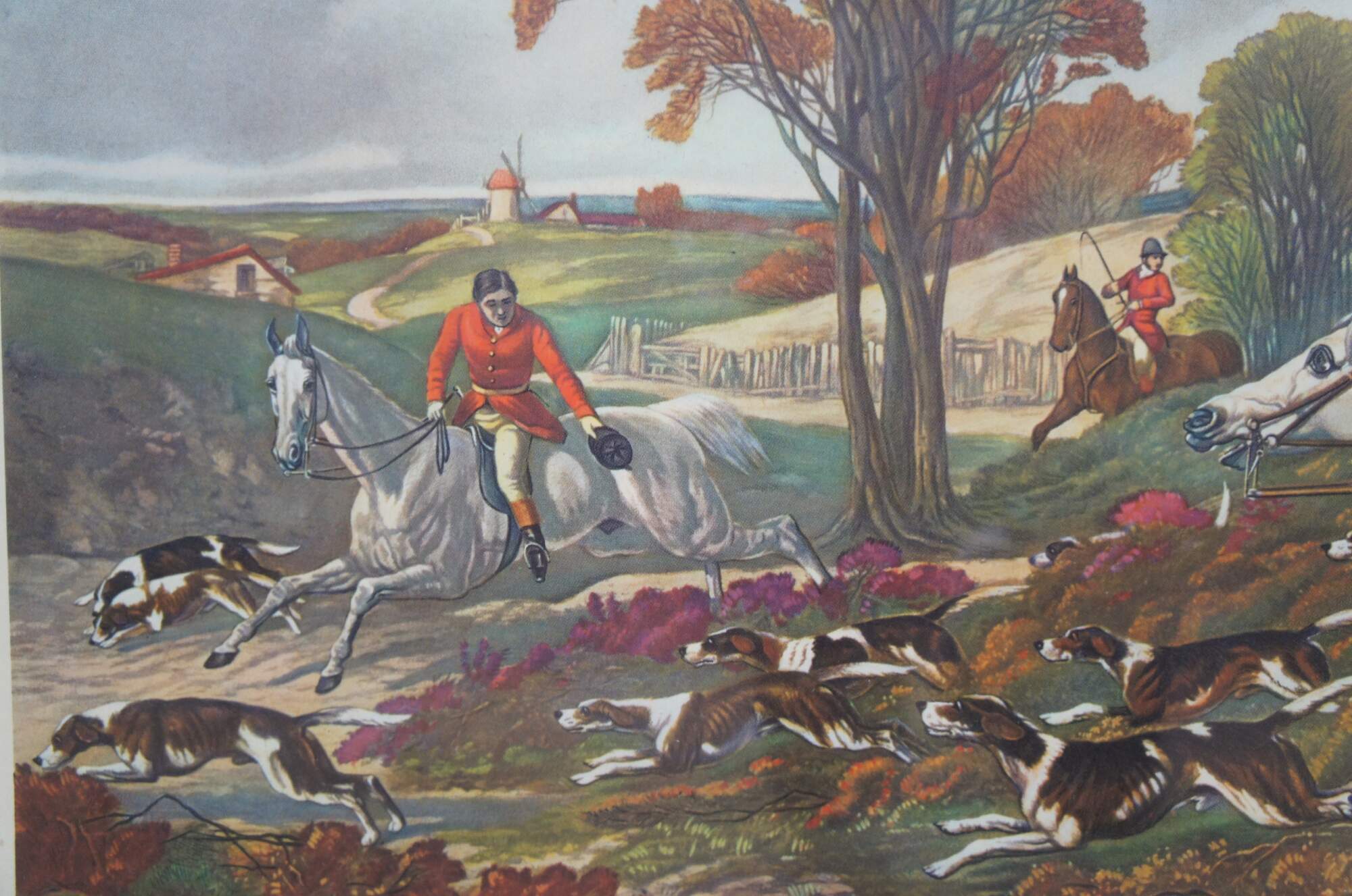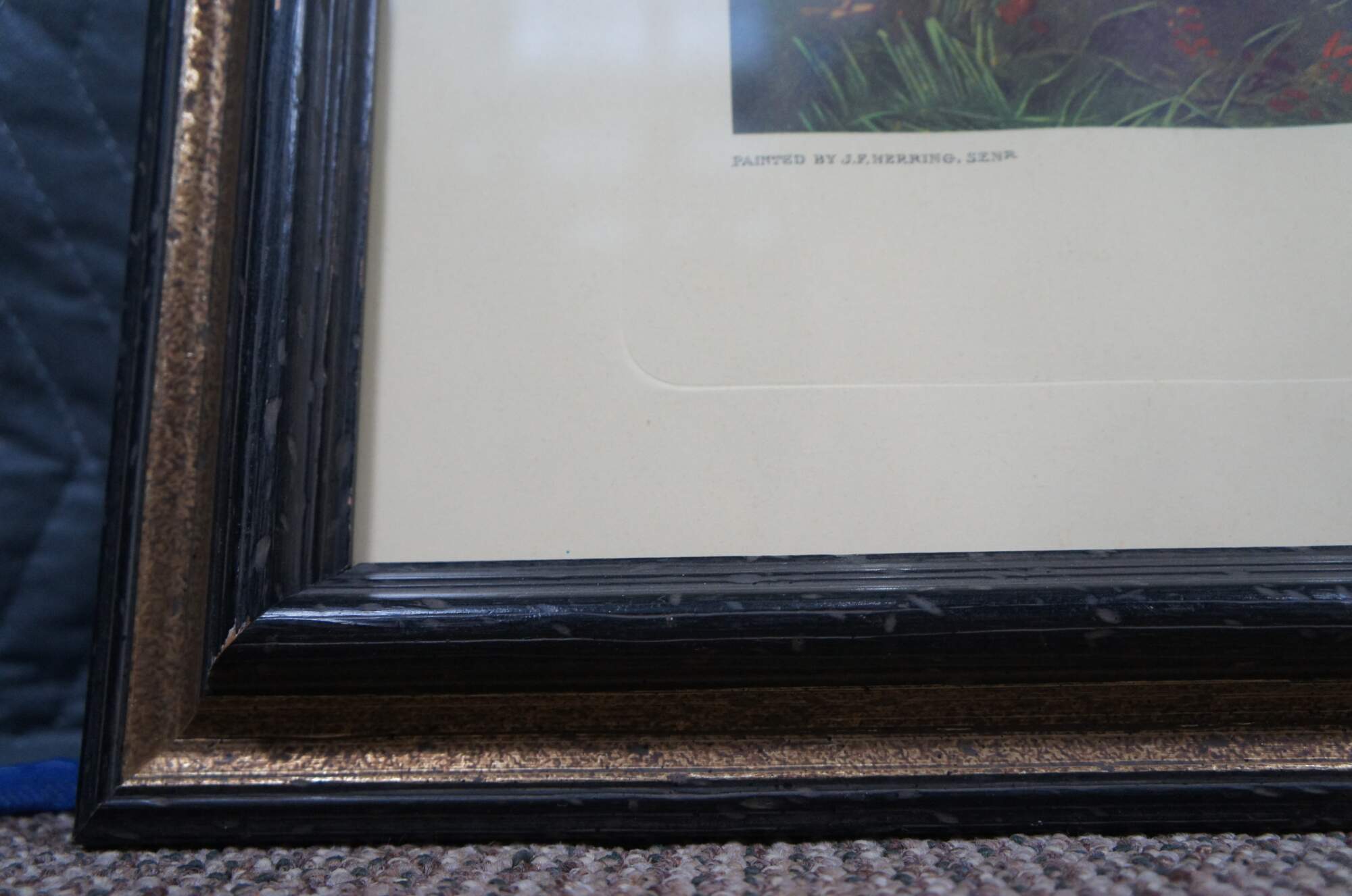 A Large format vintage re-strike of the popular Plate, circa mid 20th century. The original prints were struck from engraved steel plates don by J. Harris, printed by a variety of publishers,and then hand-colored. Harris directly copied the engraving from the painting done bu J.F. Herring SENR (There were a father and son working on similar scenes at the same time.). The majority of these pieces are 30"" or smaller in frame. With a larger 41"" presence this piece offers a stately vibe making it perfect for a library, office or study.
