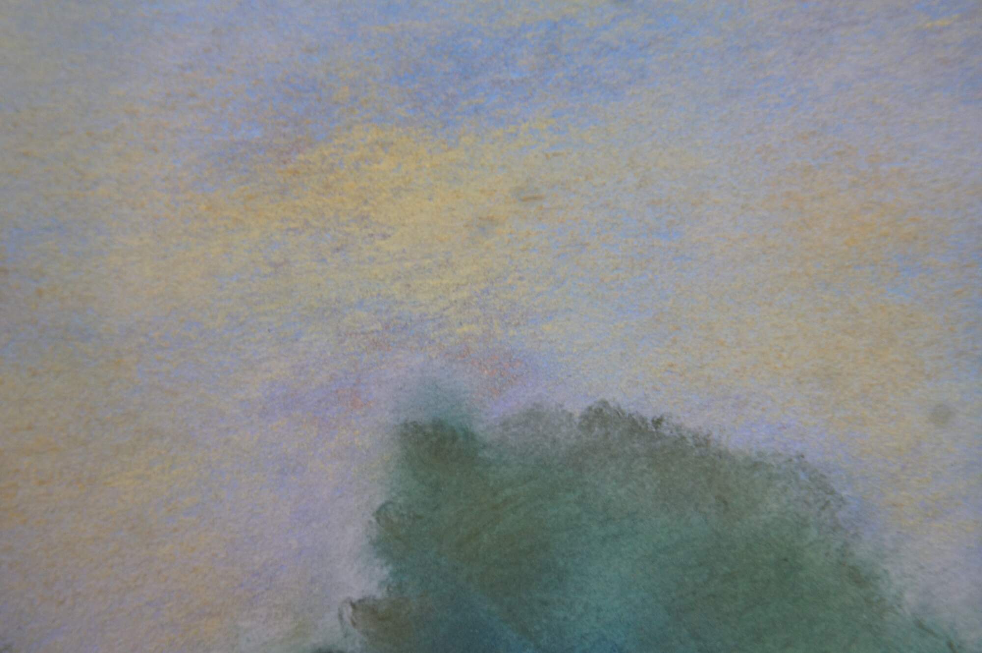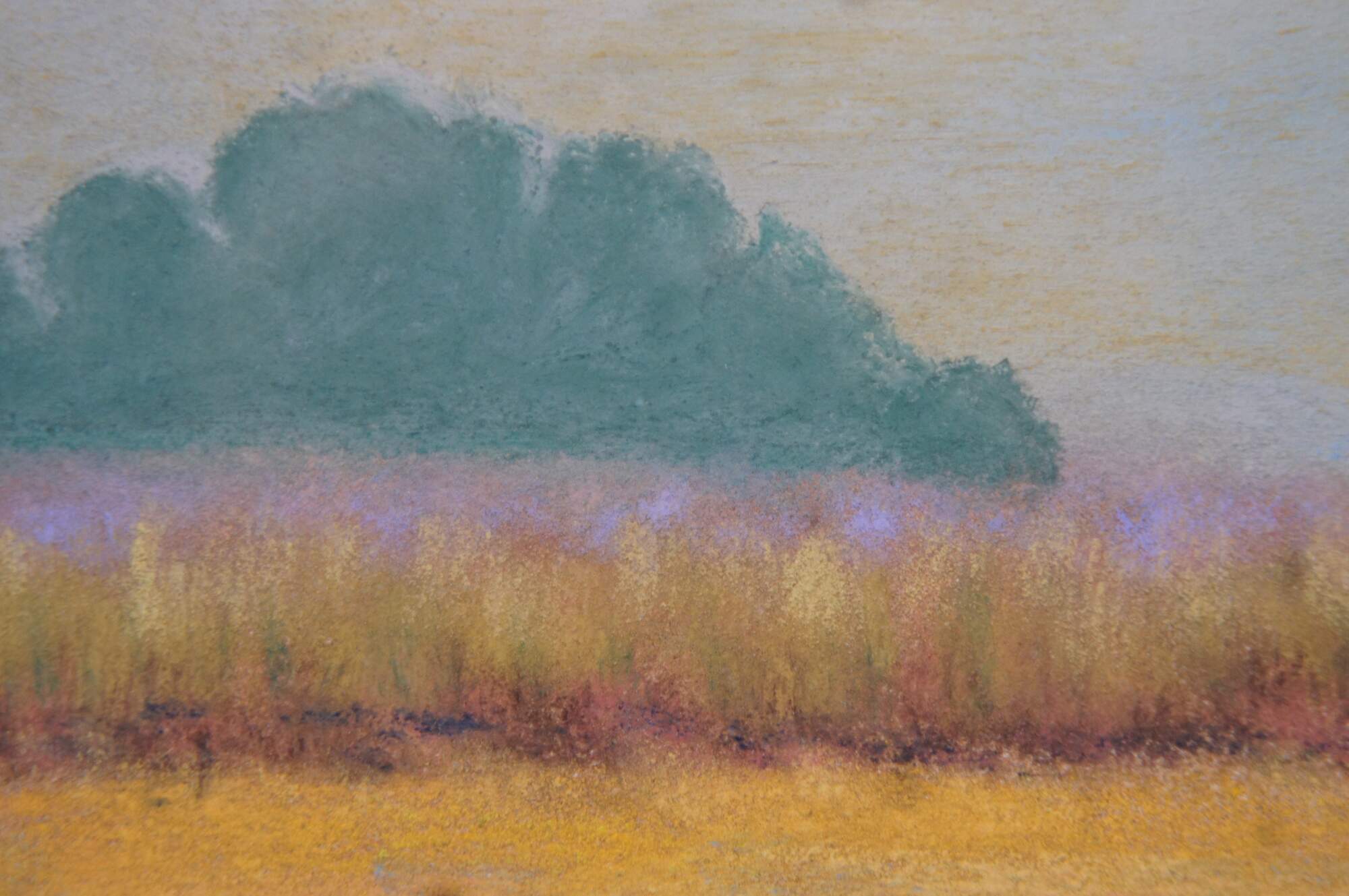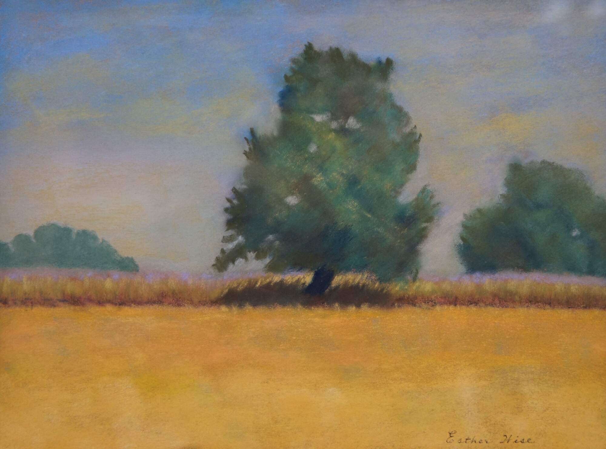 Vintage original pastel landscape painting by Dayton artist Esther Wise titled “Golden Field.”