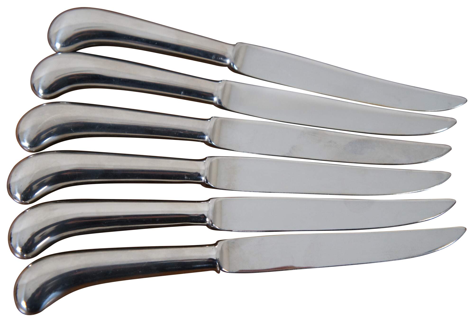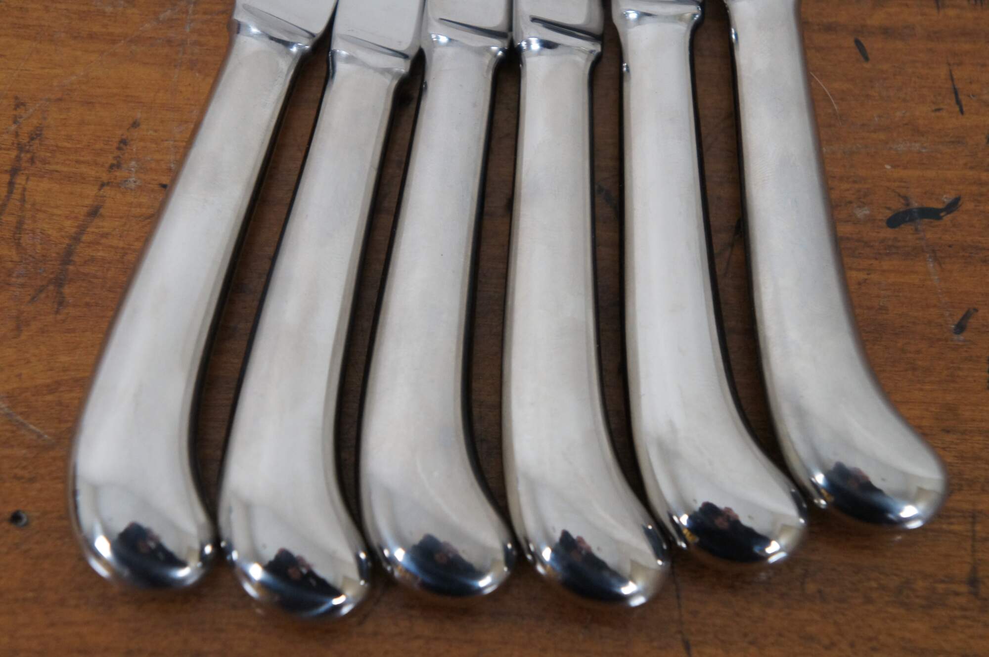 Vintage boxed set of six Hoffritz Sheffield silver plate and stainless fruit / table knives, with hefty handles.