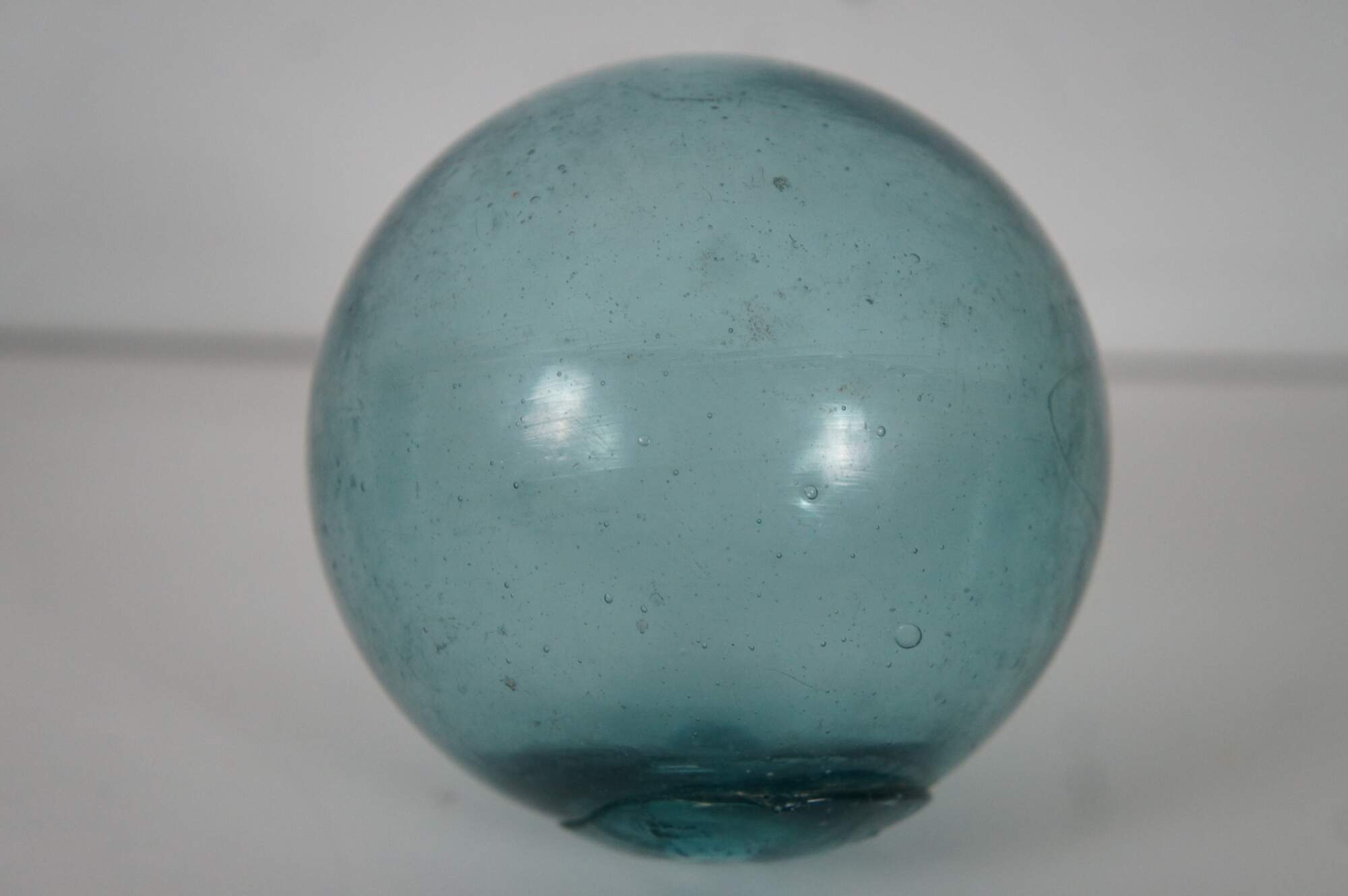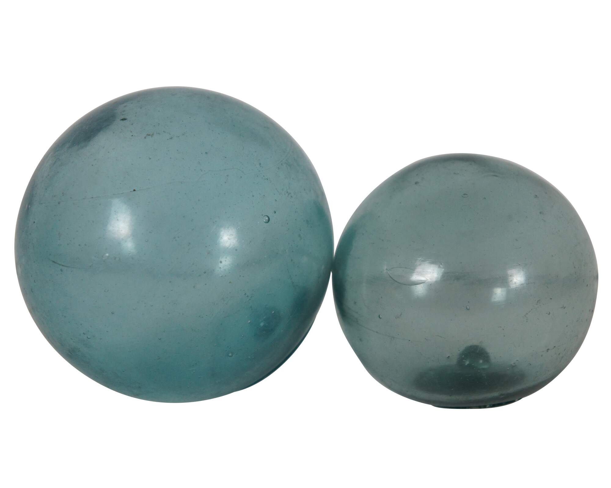 3 Antique hand blown Japanese fishing floats / markers. One rolling pin style and 2 orbs.
