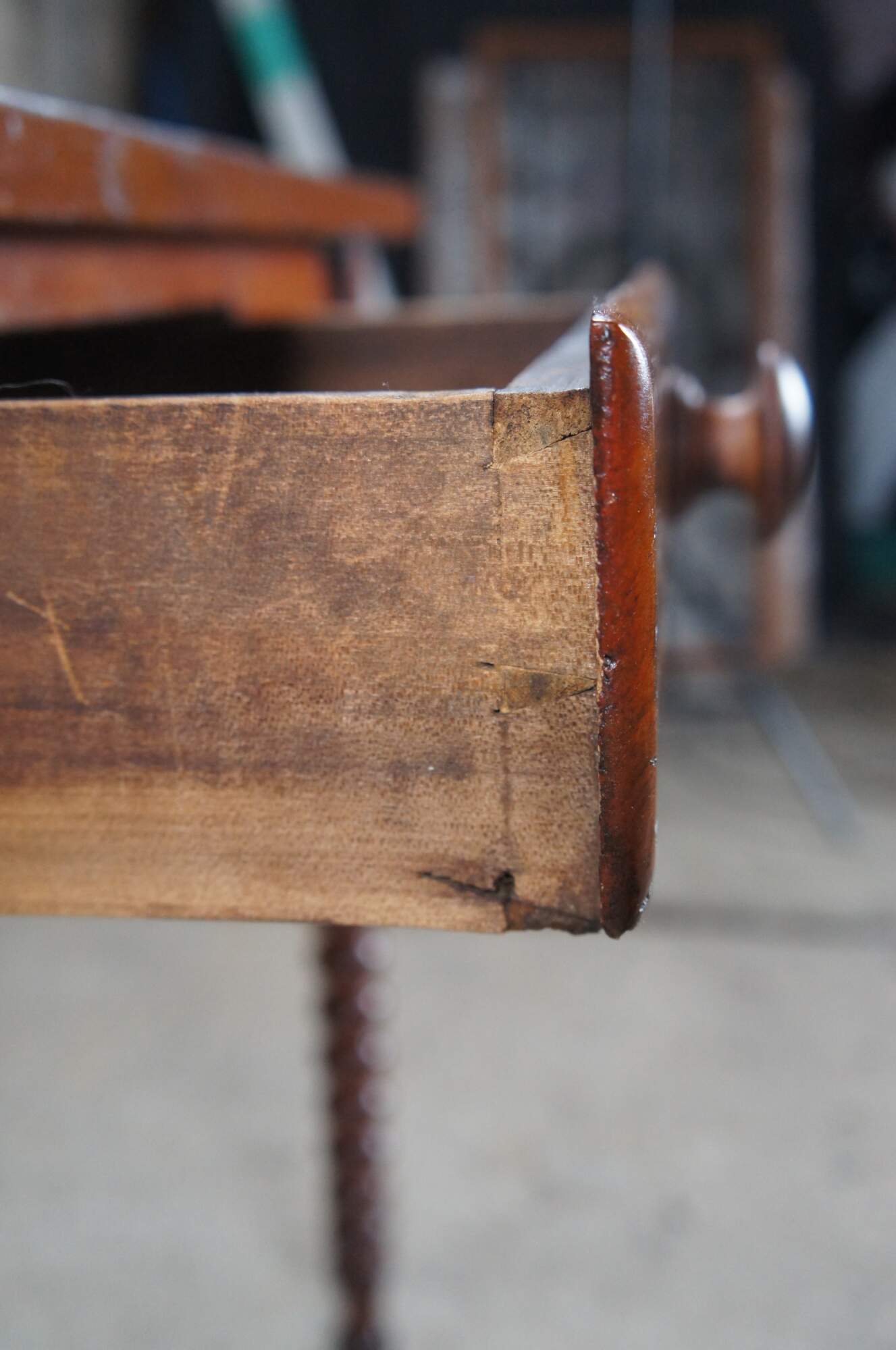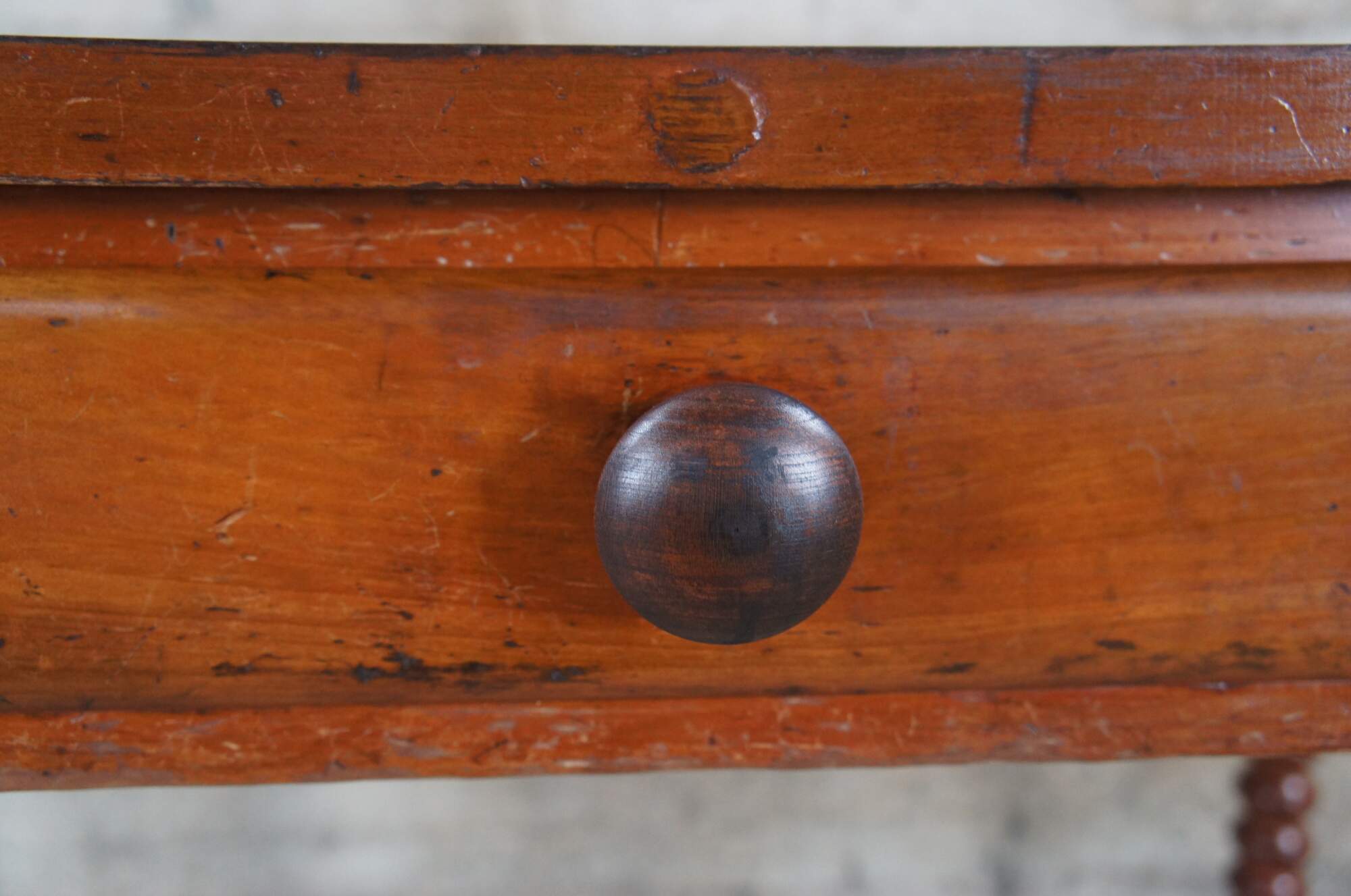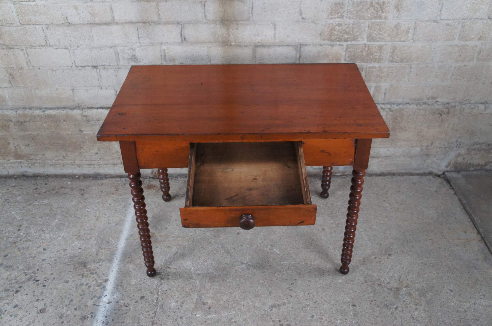 A beautiful American Victorian era writing desk. Made from poplar with one hand dovetailed drawer. Features hand turned bobbin legs leading to bun feet.