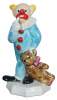 3 Available – Vintage Goebel West Germany ceramic figurine of a blond clown in a blue costume holding a teddy bear.