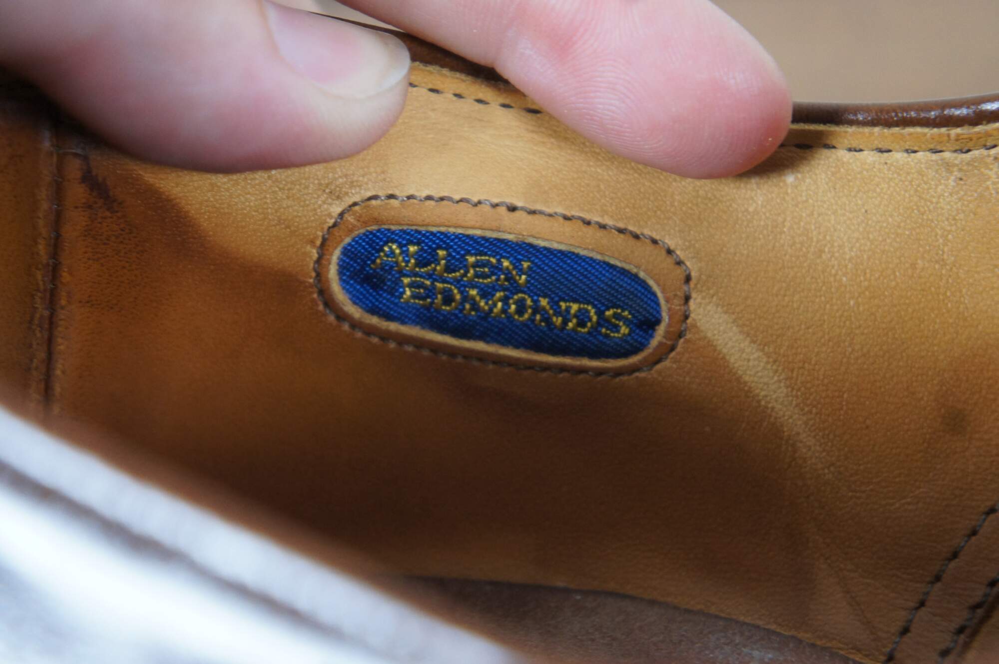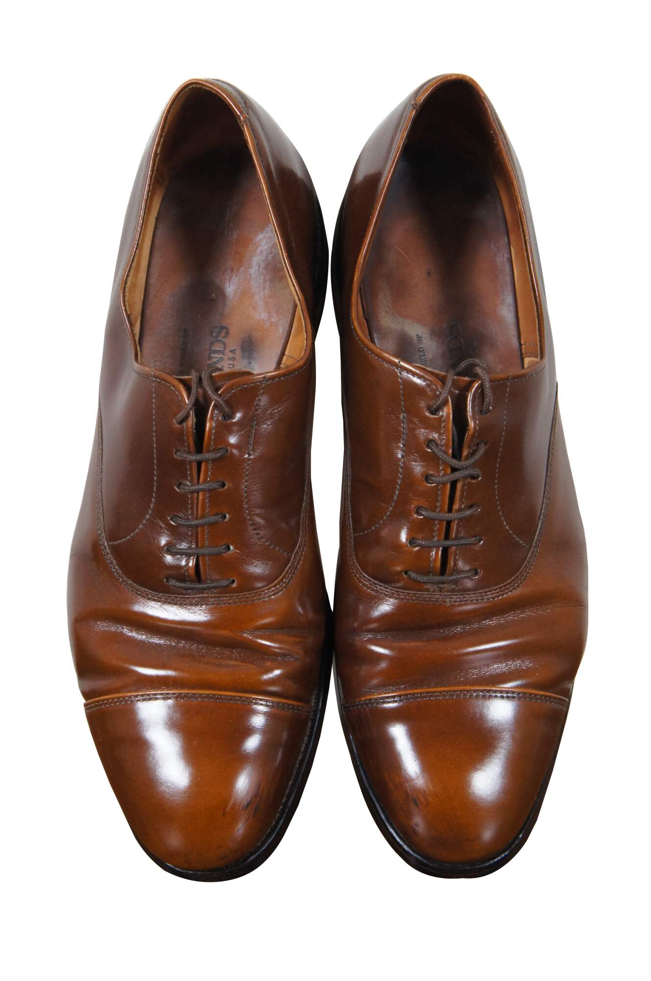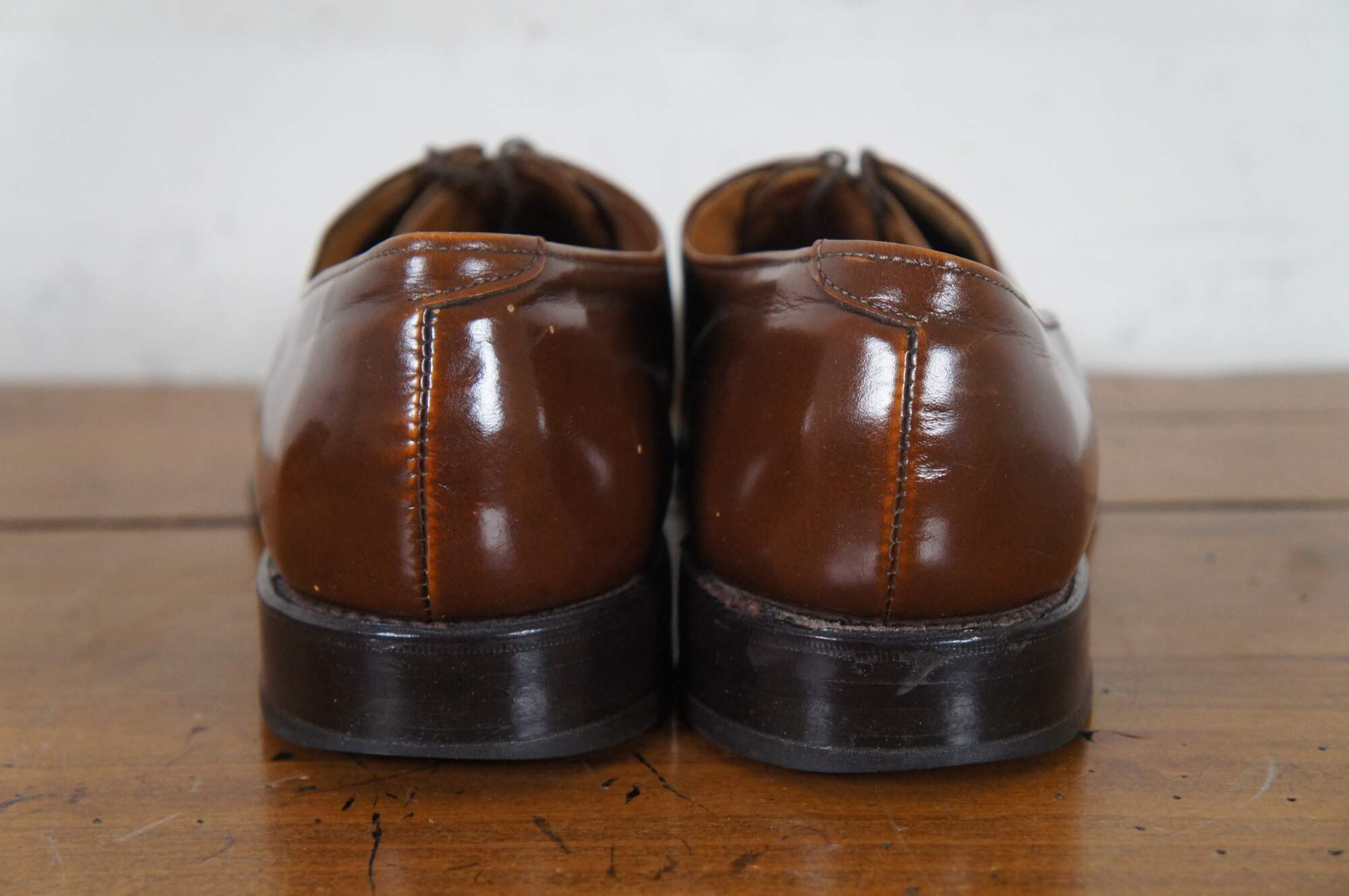 Allen Edmonds “Park Avenue” cap toe leather oxfords in walnut brown. Includes dust bags.