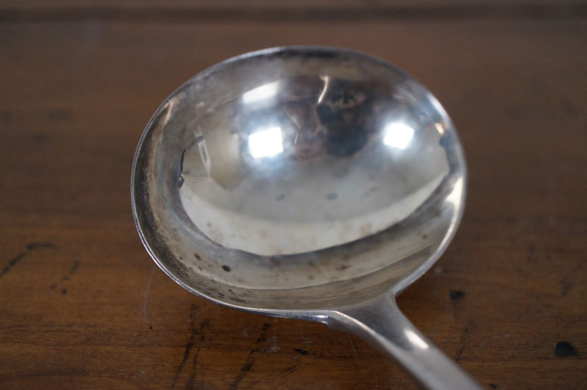 Antique Georgian sauce / gravy / soup ladle or spoon with fluted / scrolled handle. Made circa 1816 by Richard Turner of London.