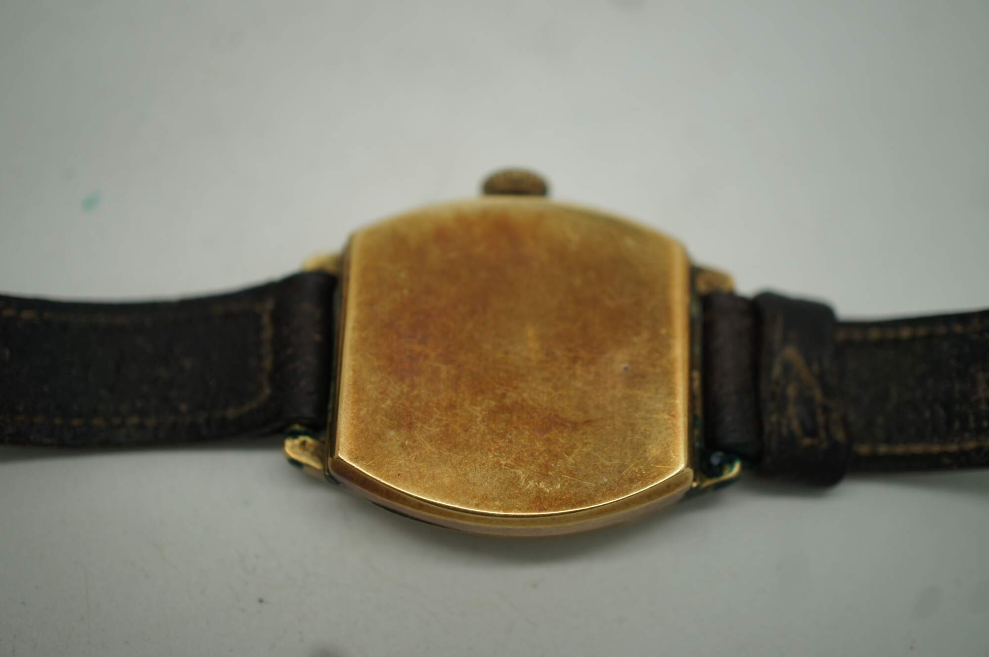 Antique early to mid 20th century Cyma / Tacy Watch Co 15 Jewel wrist watch produced by Tavannes Watch Co. Stellar case by Star Watch Case Company, 0 ½ Ligne, numbered 7253188. Brown leather band.