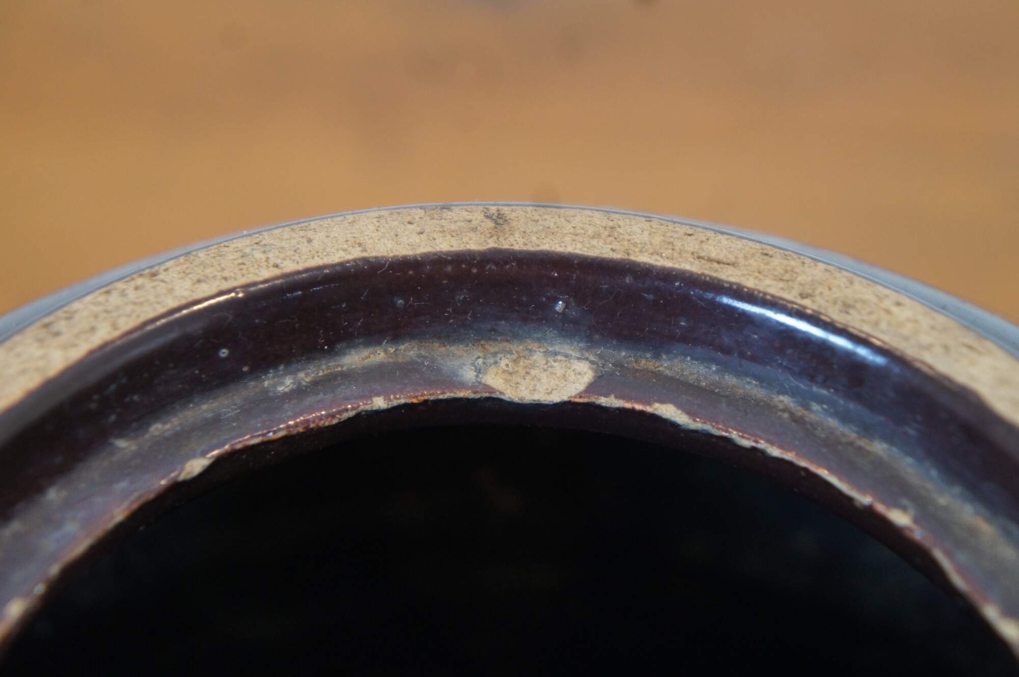 Antique 19th century dark brown stoneware pottery crock with no handles. Lid missing.