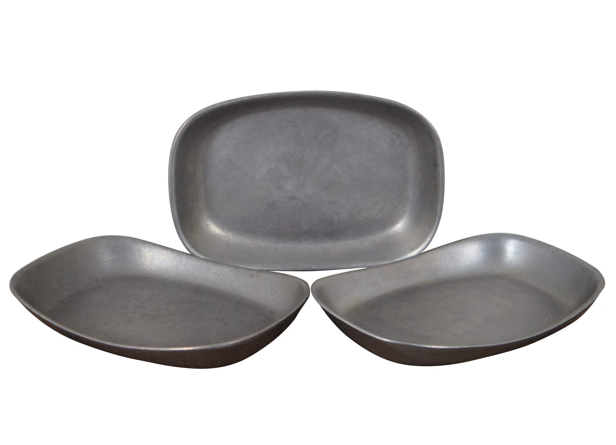 Set of three Wilton Armetale rectangular pewter bread plates or trenchers.