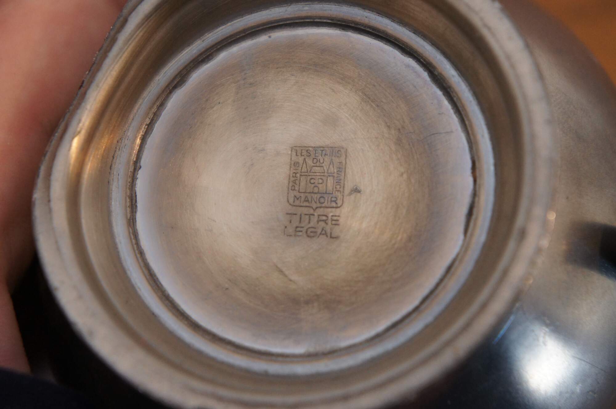 Vintage Colonial style pewter creamer by Les Etains du Manoir of Paris, France.