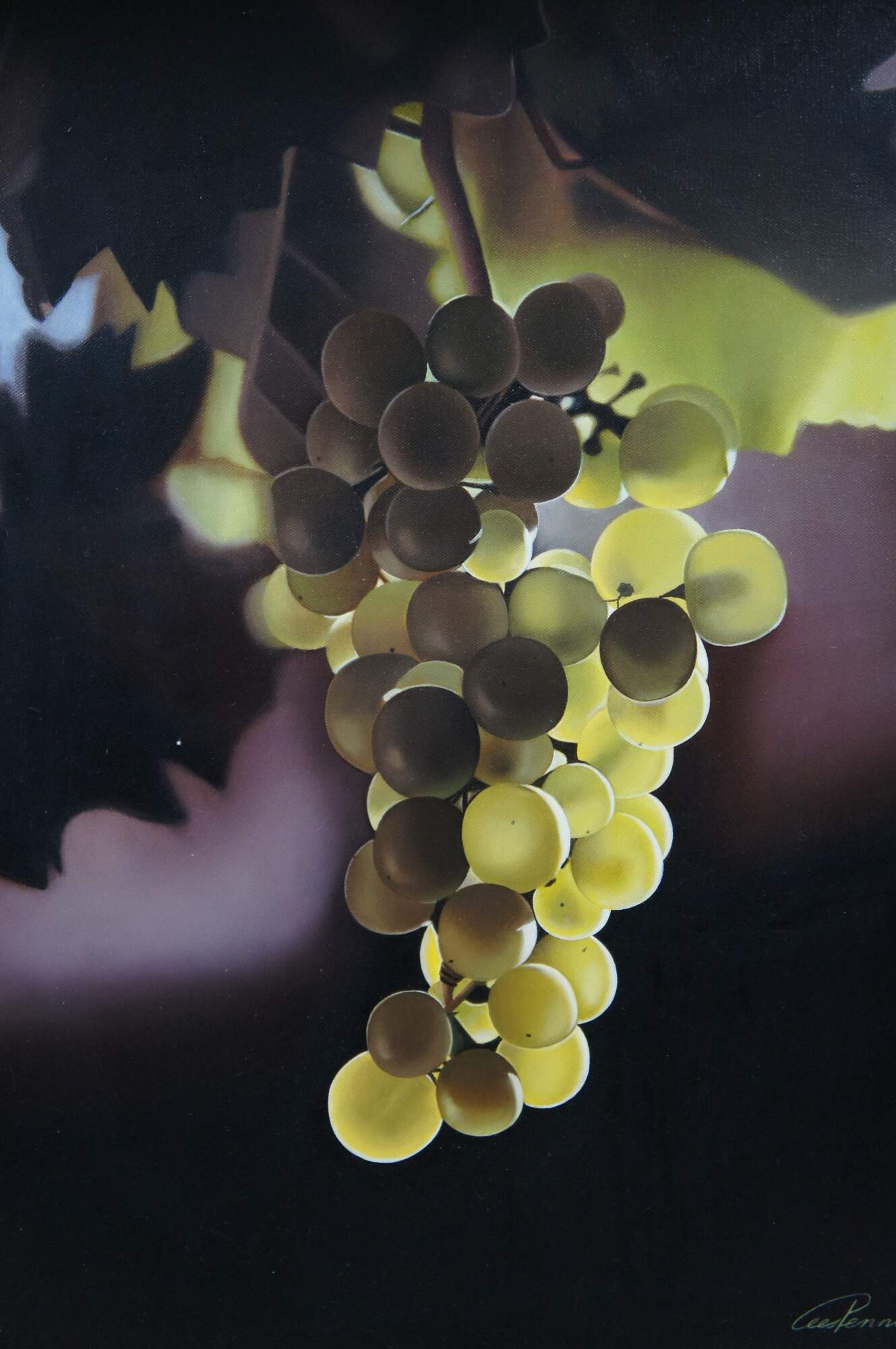 Vintage oil on canvas realistic still life painting titled “Grapes” by Cees Penning.