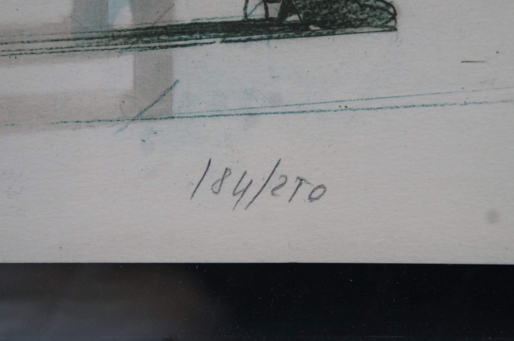 Vintage lithograph sketch or study in the style of the Old Masters of the Renaissance, depicting a male artist at an easel, surrounded by other male figures / scholars / philosophers in various attitudes; pencil signed and numbered 184/270. Mounted in a heavy acrylic frame.