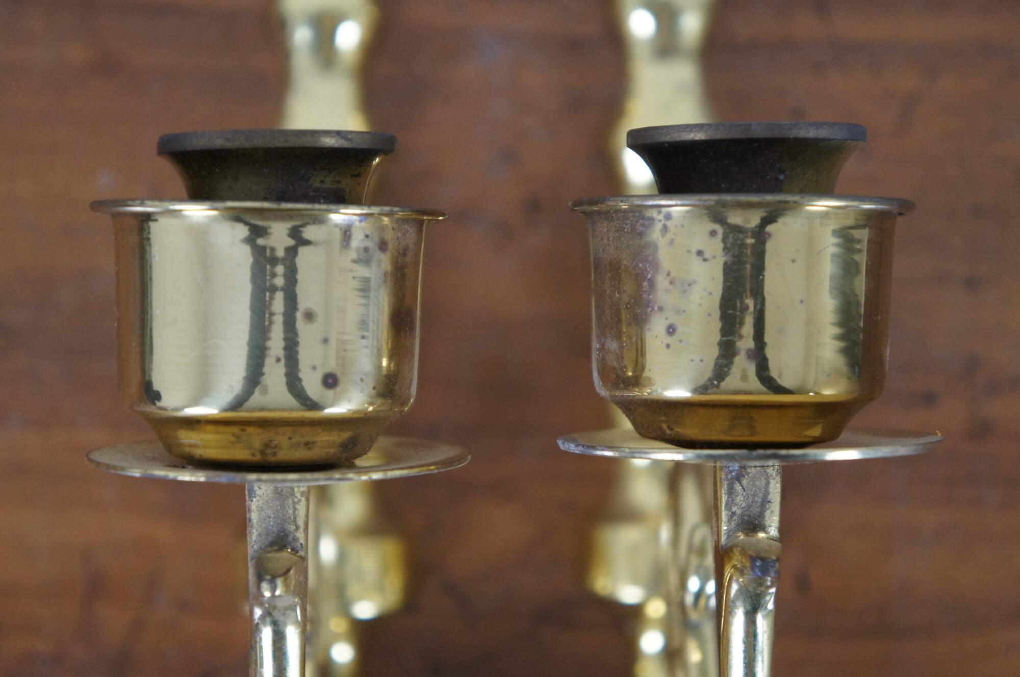 Pair of vintage lacquered brass Federal / Colonial style single arm, candle holder wall sconces.