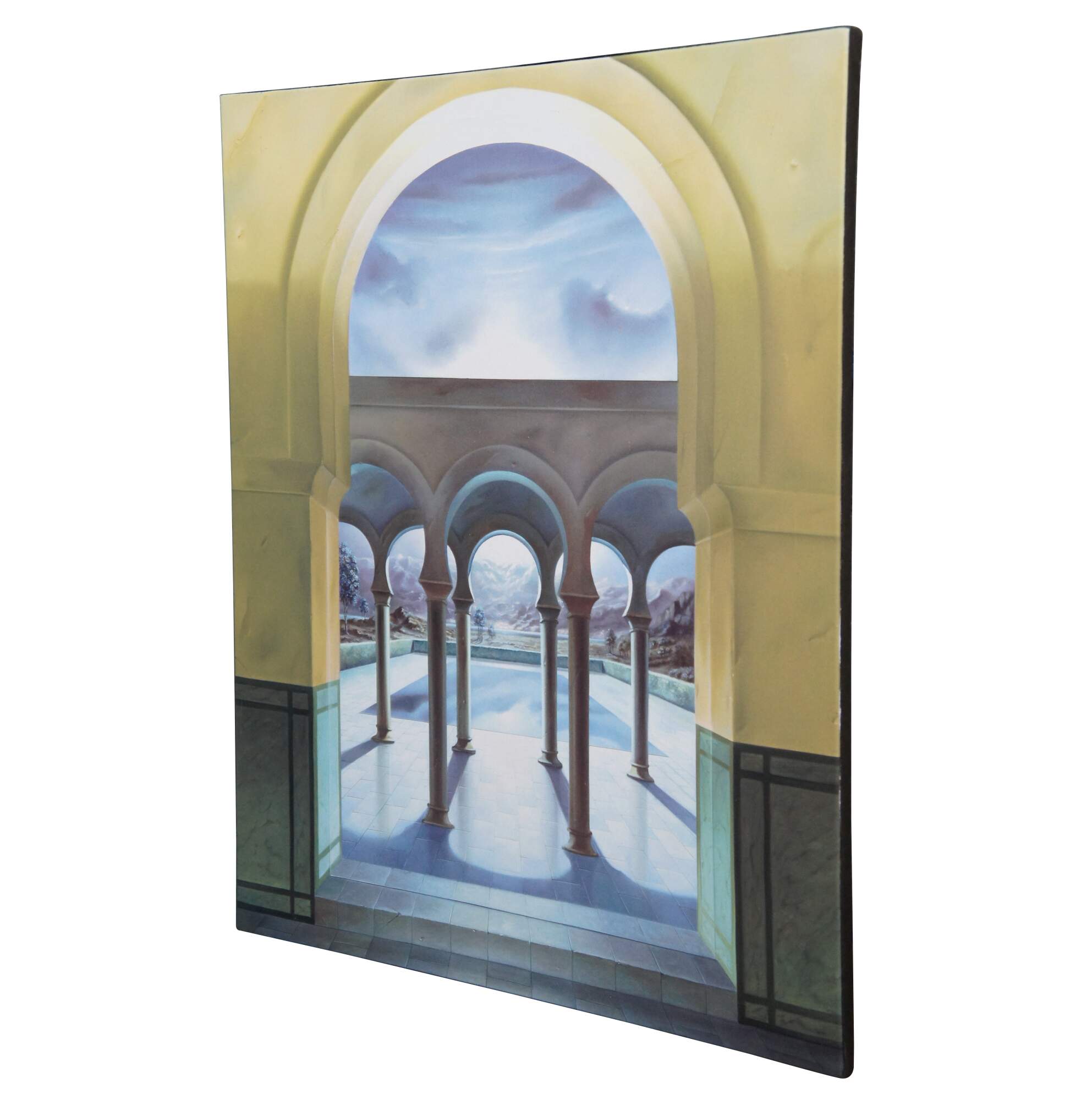 In the beginning of Aguilar's art, there were """"paintings within paintings"""" with references to classical masters. Images of works by daVinci, Titian and Manet appeared in Aguilar's series of imaginary museum-apartments with their alluring emptiness. Soon mirrored reflections began to emerge. Like Van Eyck in """"The Couple Arnolfini"""" and Velasquez in """"Las Meninas,"""" Aguilar began creating magically-complex compositions. However, Aguilar uses no props or live models in his paintings. He waits for an inspiration, a vision to appear, and then he proceeds to paint until it is complete.”""