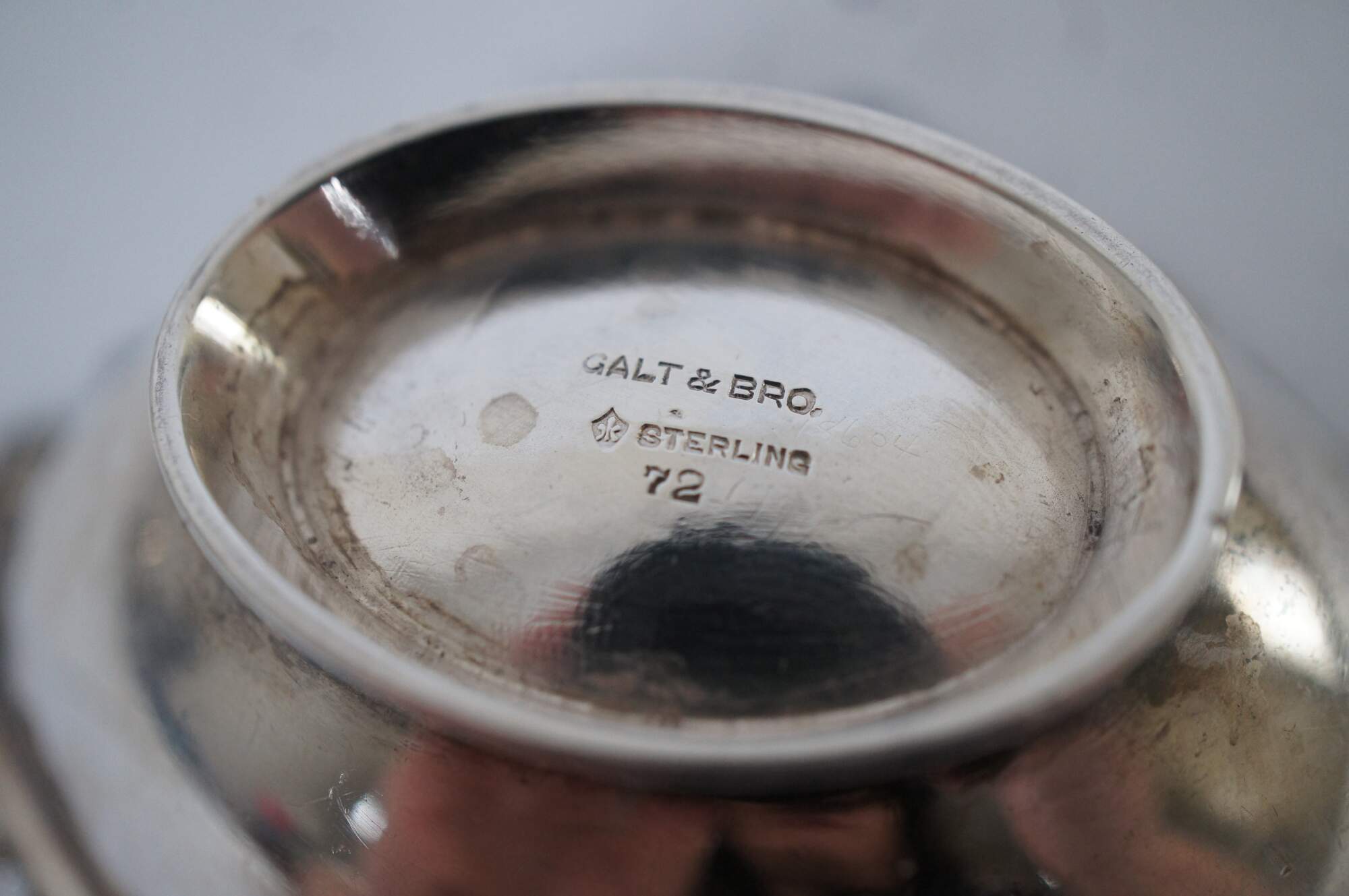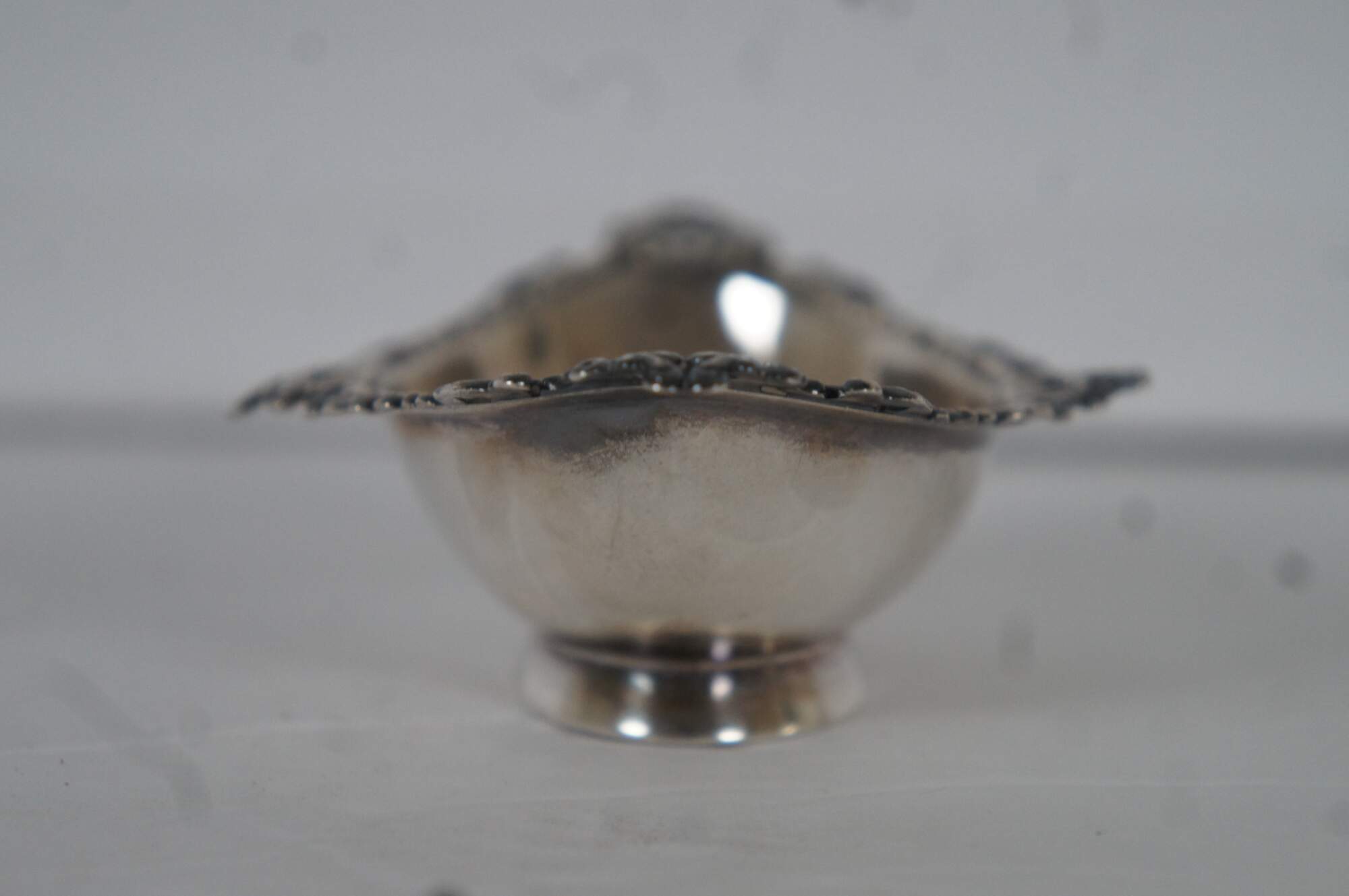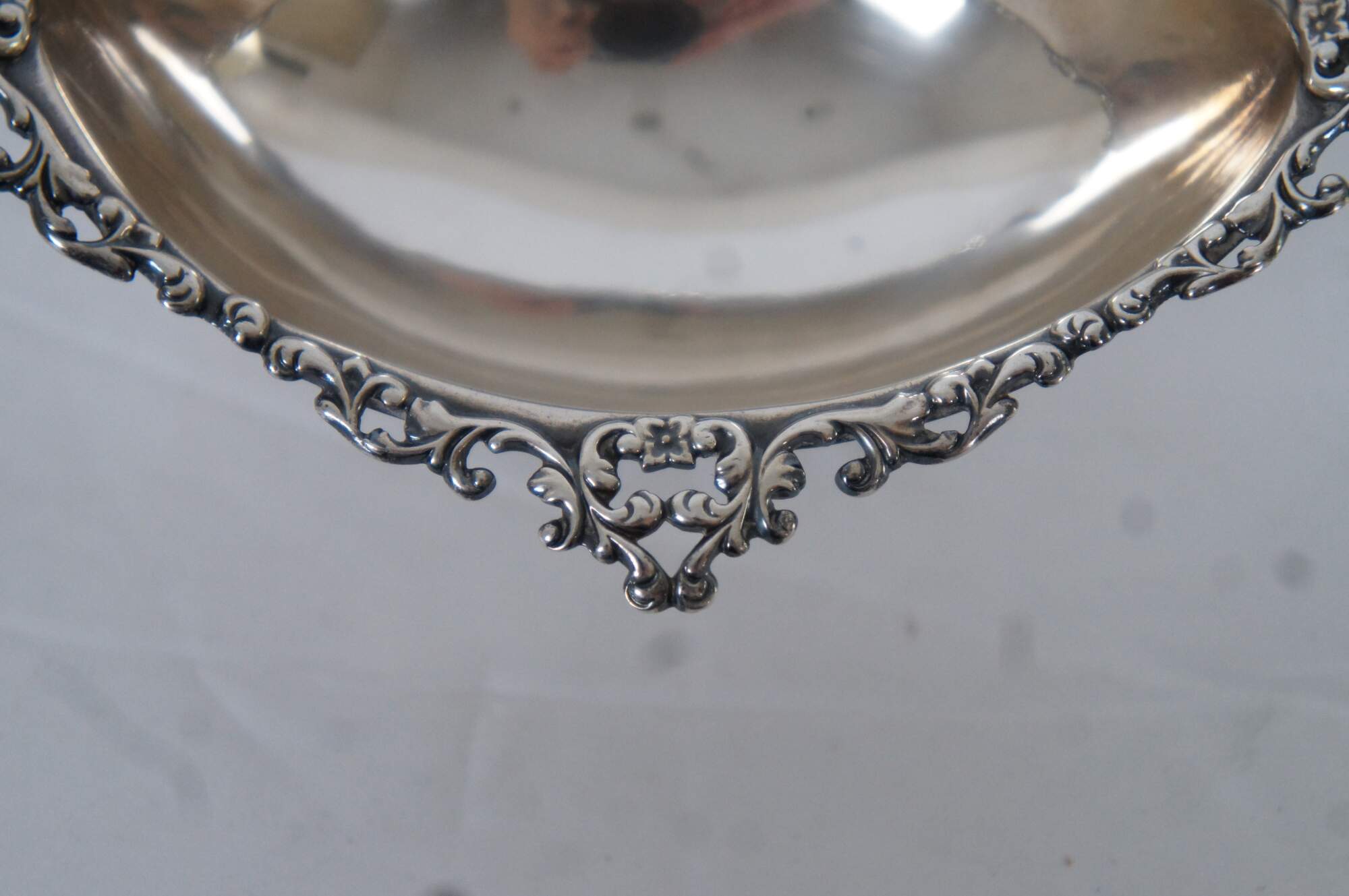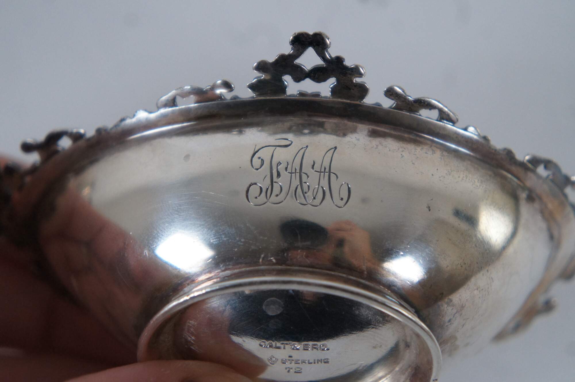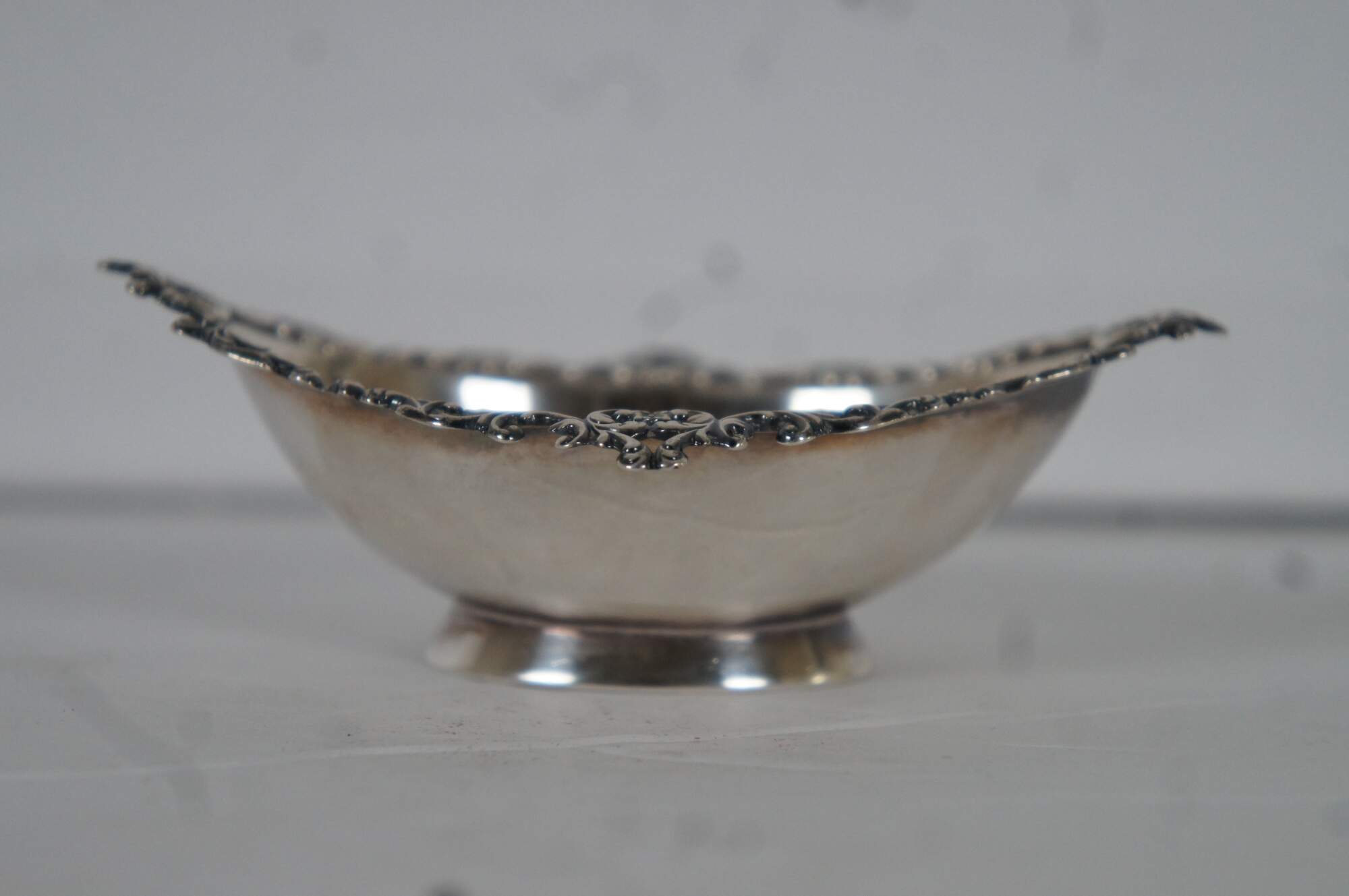 Antique Galt & Bro number 72 sterling silver nut / bone dish featuring an oval boat shape with foliate and floral pierced edge. Monogrammed with the initials FAA.