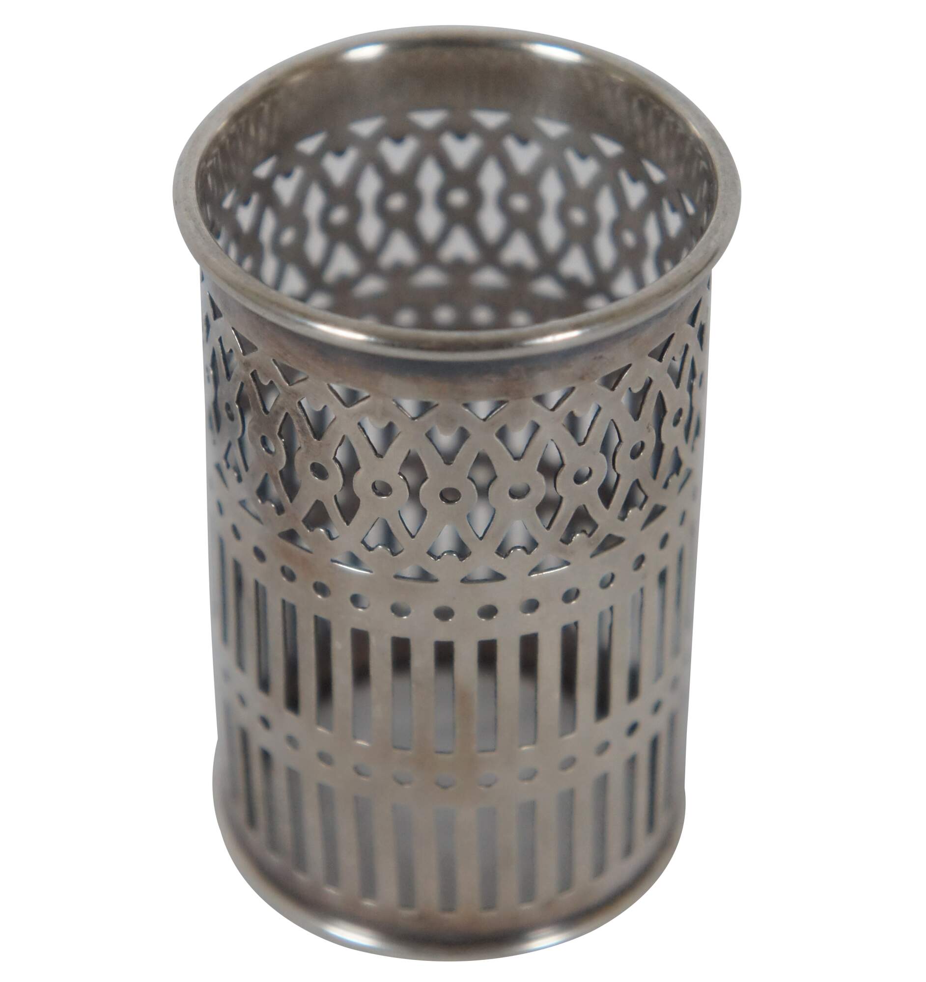 Antique Webster pierced sterling silver overlay for a condiment cup or toothpick holder. No glass insert.