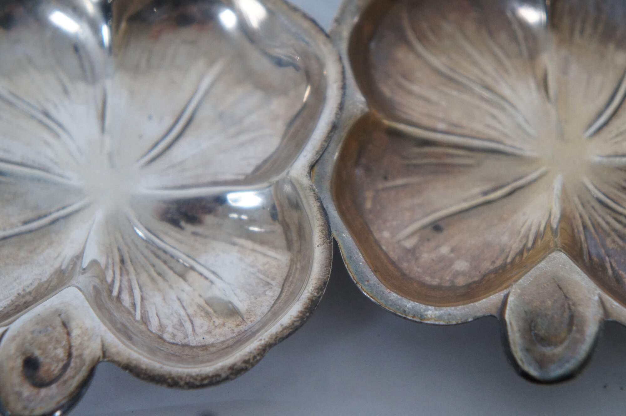 Set of six vintage Shamrock or four leaf clover shaped sterling silver individual nut / bonbon / bone dishes by Lenox Silver Inc.