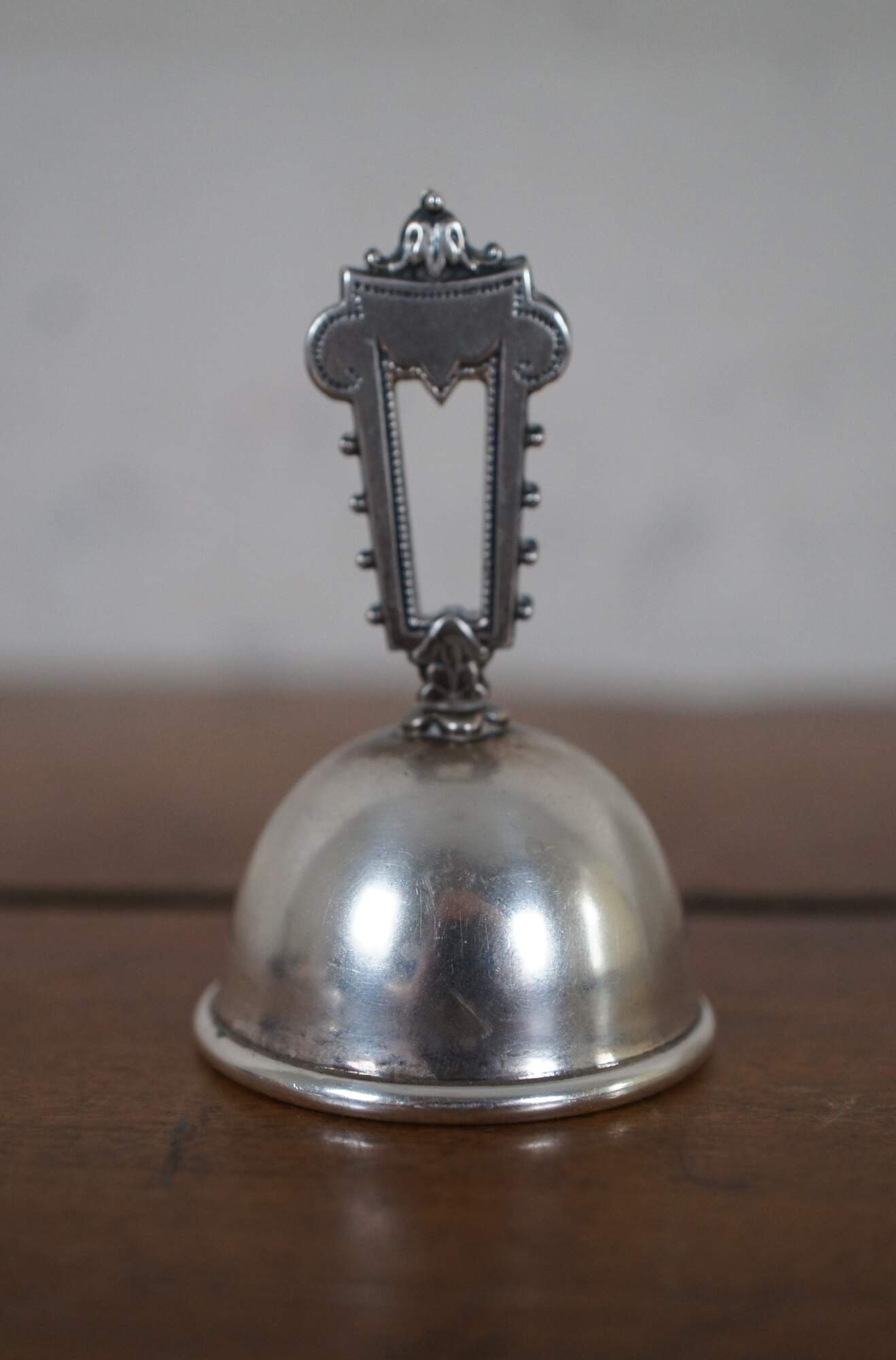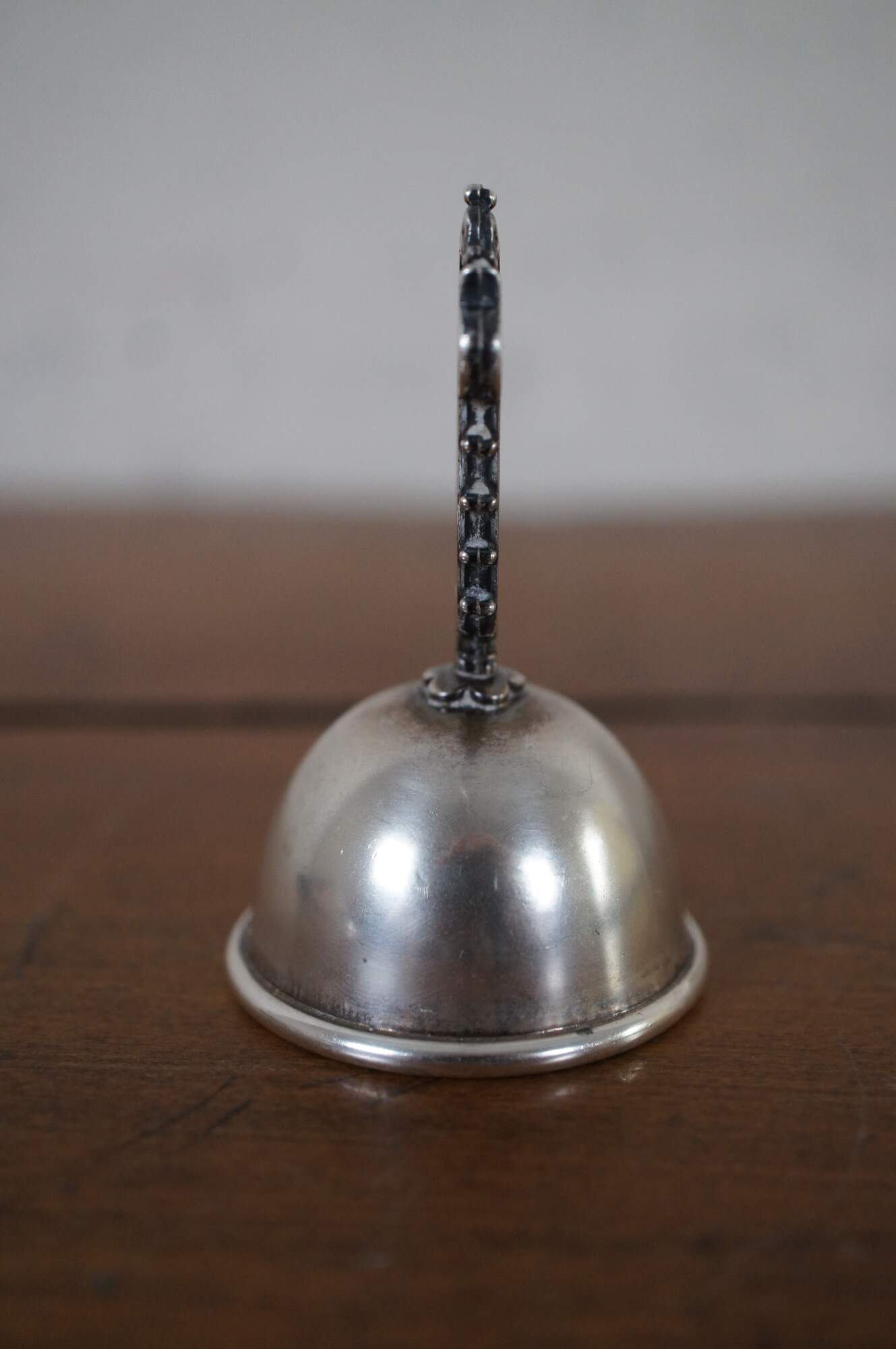 Vintage JWR sterling silver hand bell / dinner bell with ornate pierced handle.