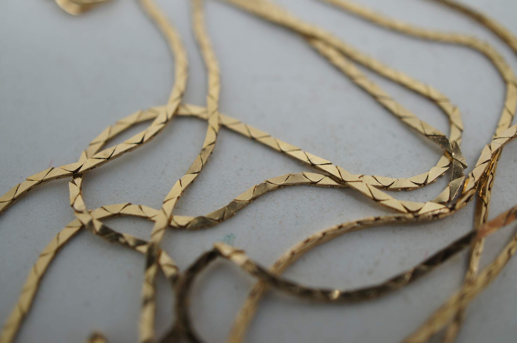 Vintage 14k yellow gold flat cobra chain necklace with a pendant charm in the shape of a fox or wolf.