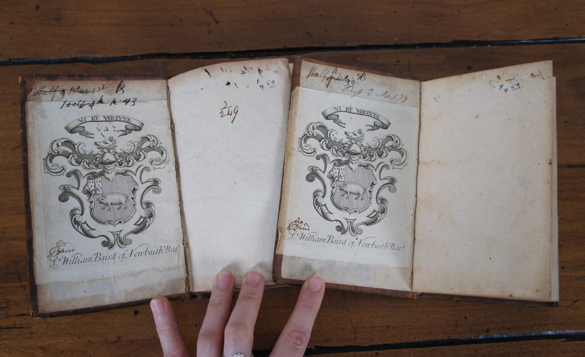 Set of two rare 18th century French language leather bound hard cover books, representing portions of the Christian Bible’s Old and New Testaments.