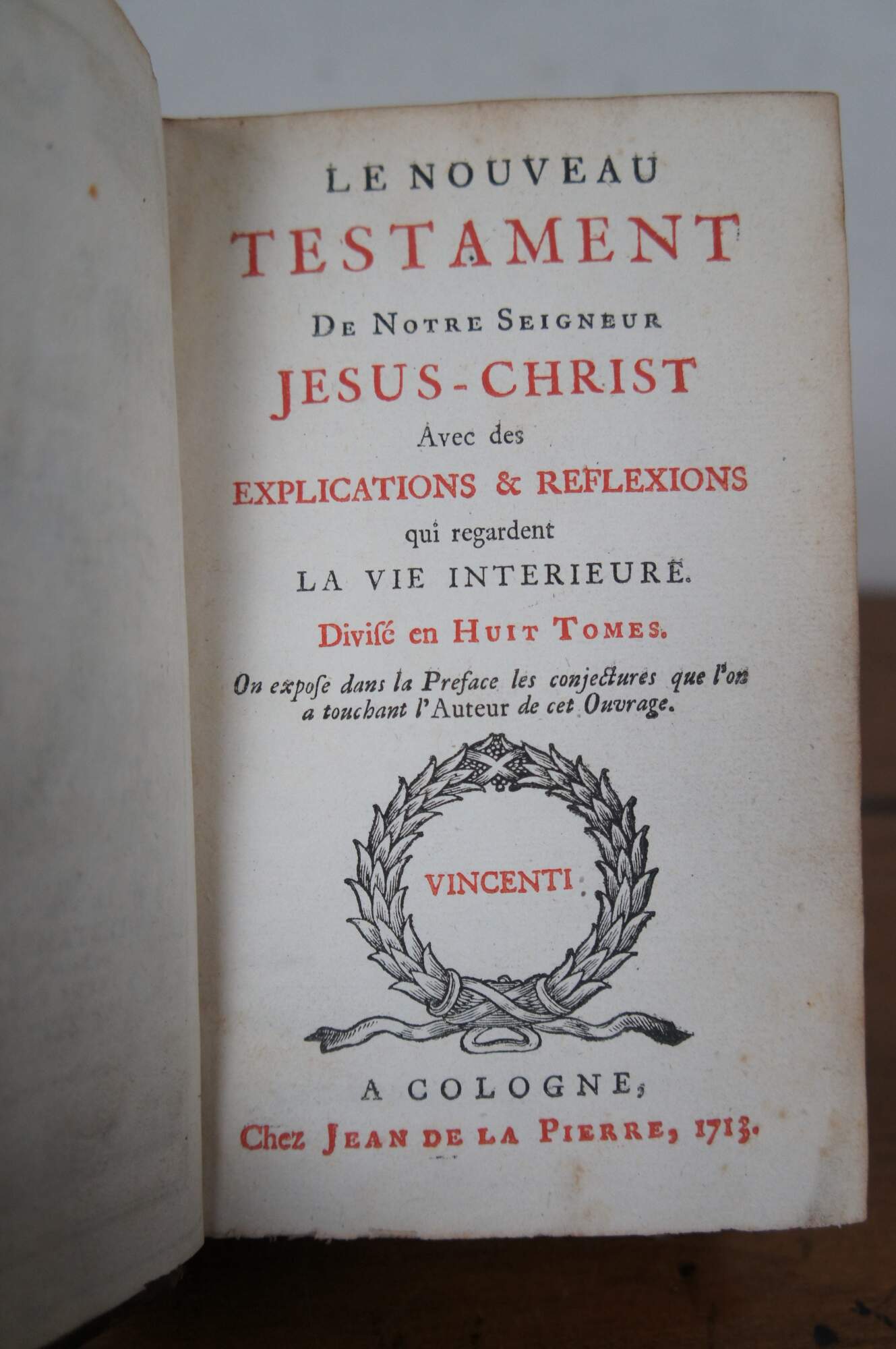 - 1713 - Le Nouveau Testament De Notre Seigneur Jesus-Christ. Avec des Explications & Reflexions qui Regardent la vie Interieure (The New Testament of Our Lord Jesus Christ With Explanations & Reflections that Look at the Inner Life) - Divise en Huit Tomes (Divided into Eight Volumes) - Part I - S. Matthieu (Saint Matthew) - Vincenti, a Cologne, Chez Jean de la Pierre
