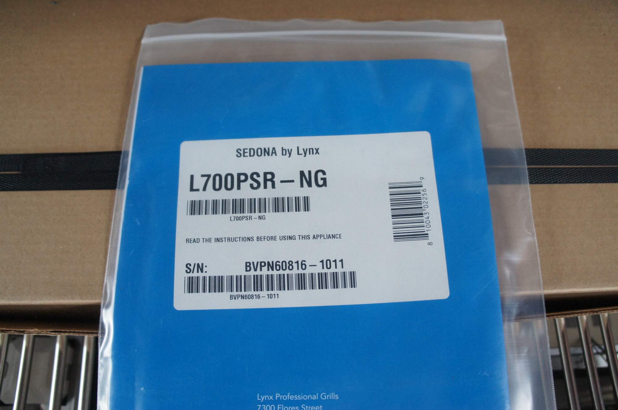 42 Inch Built-In Gas Grill with 83,000 BTU, 1049 sq. in. Cooking Surface, Independent Rotisserie Burner, LED and Halogen Illumination, Ceramic Briquettes and Stainless Steel Grilling Grates: Natural Gas or Propane. Circa 2016.