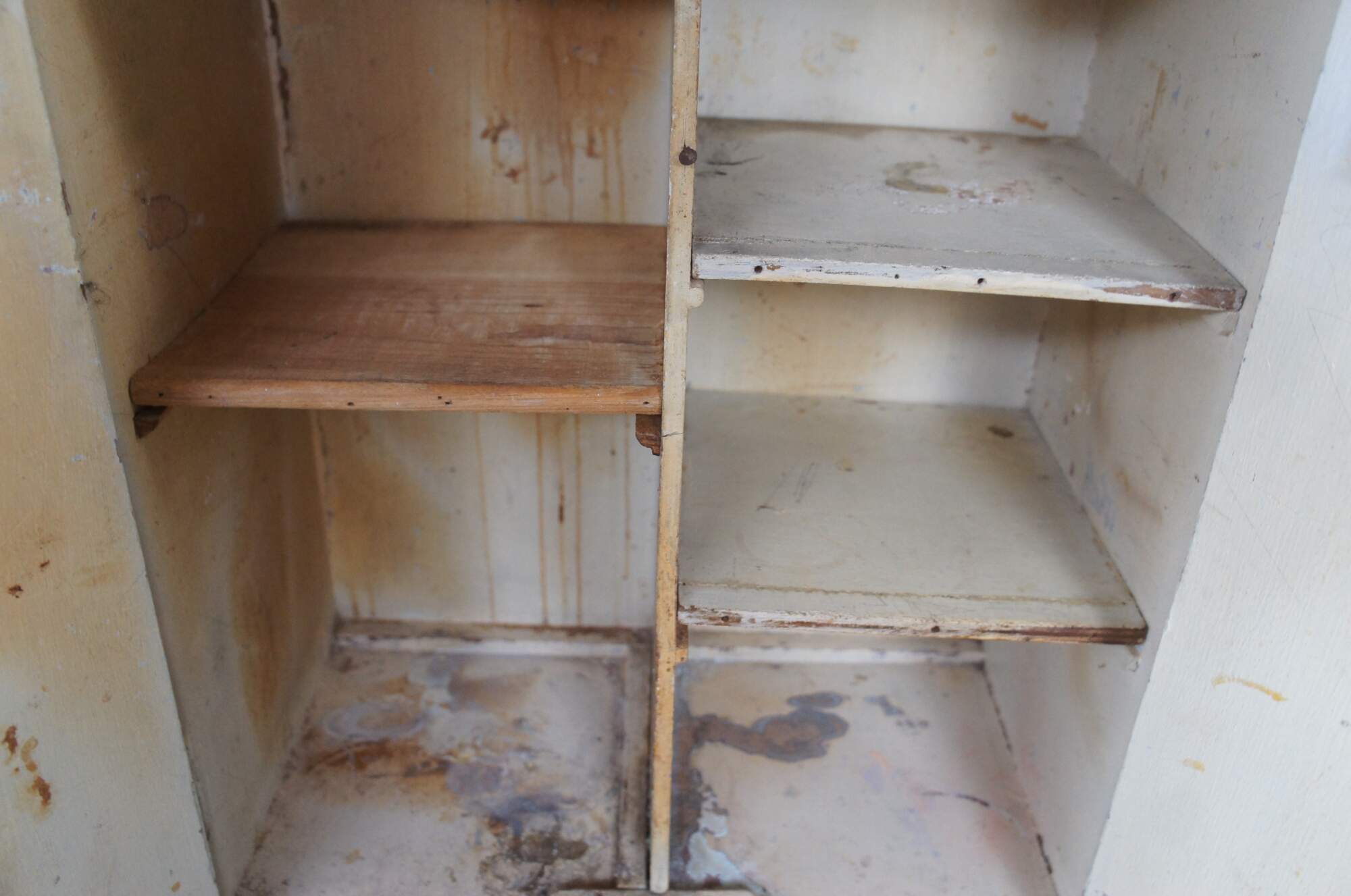 Small Vintage painted cupboard, circa mid 20th century. Last used as an apothecary or medinet cabinet. Features two holes in the back for hanging.