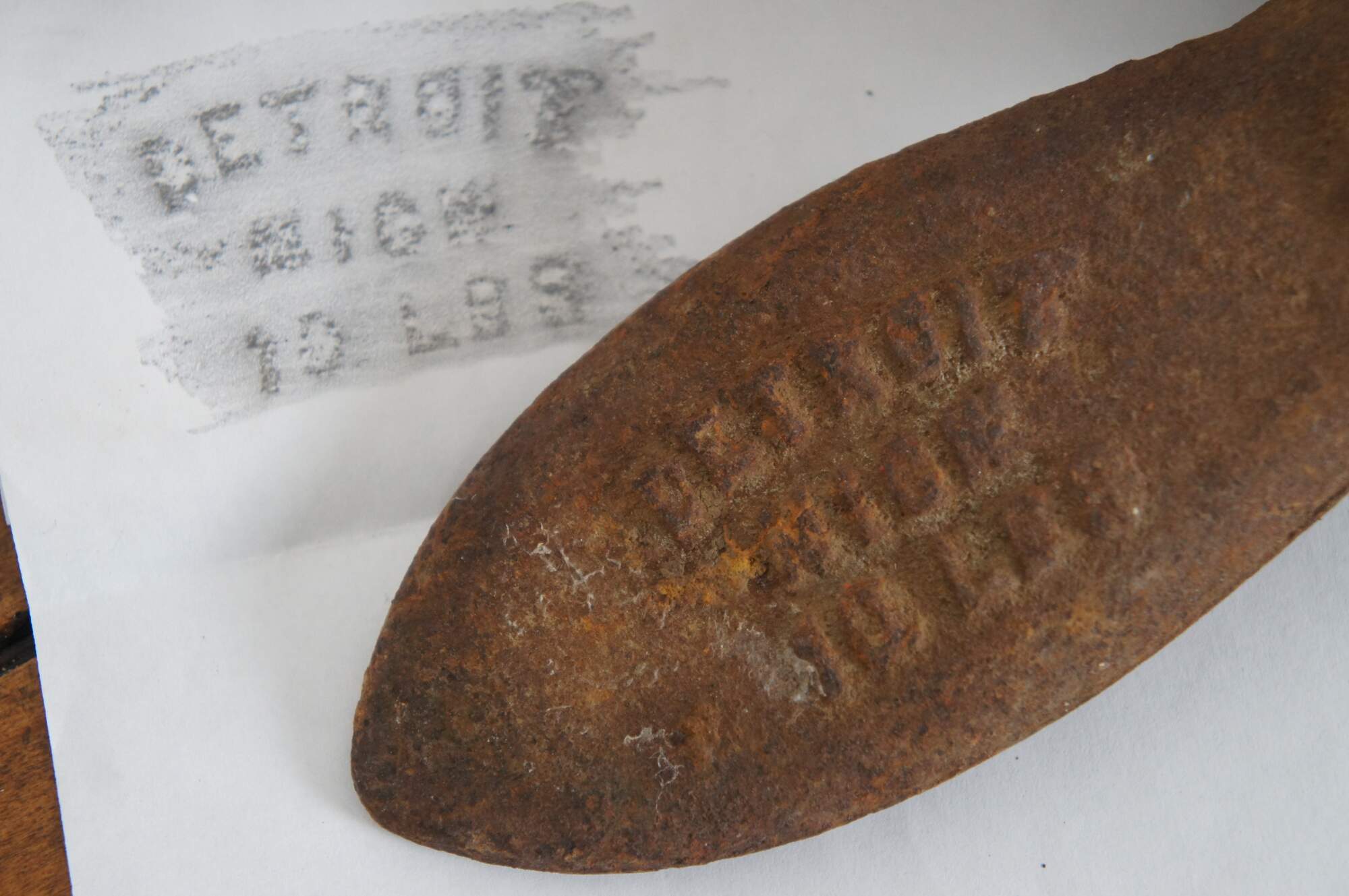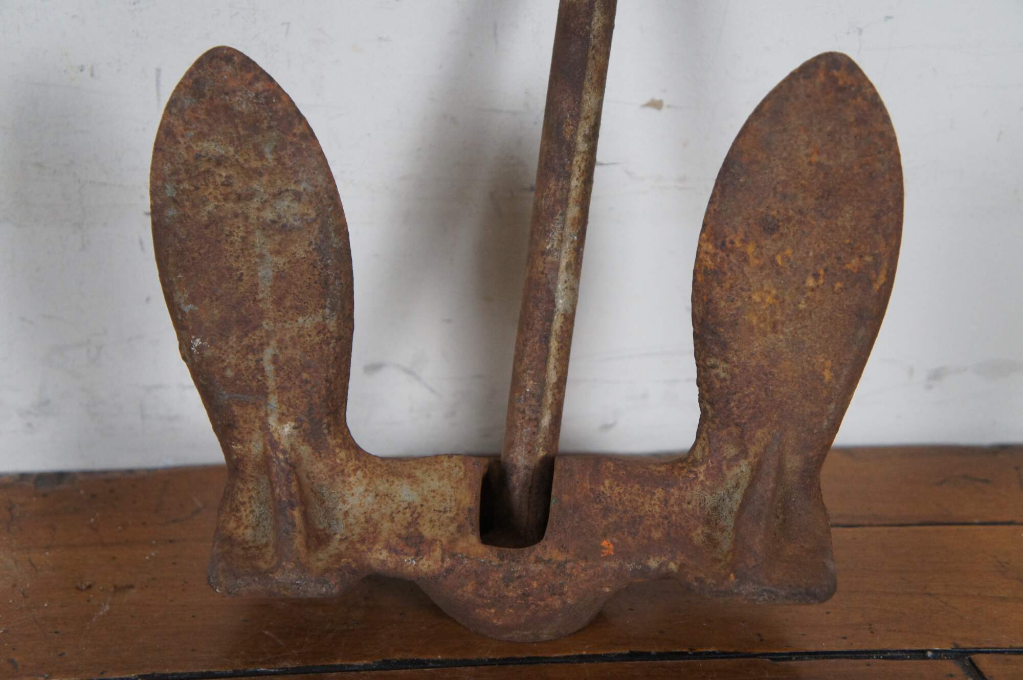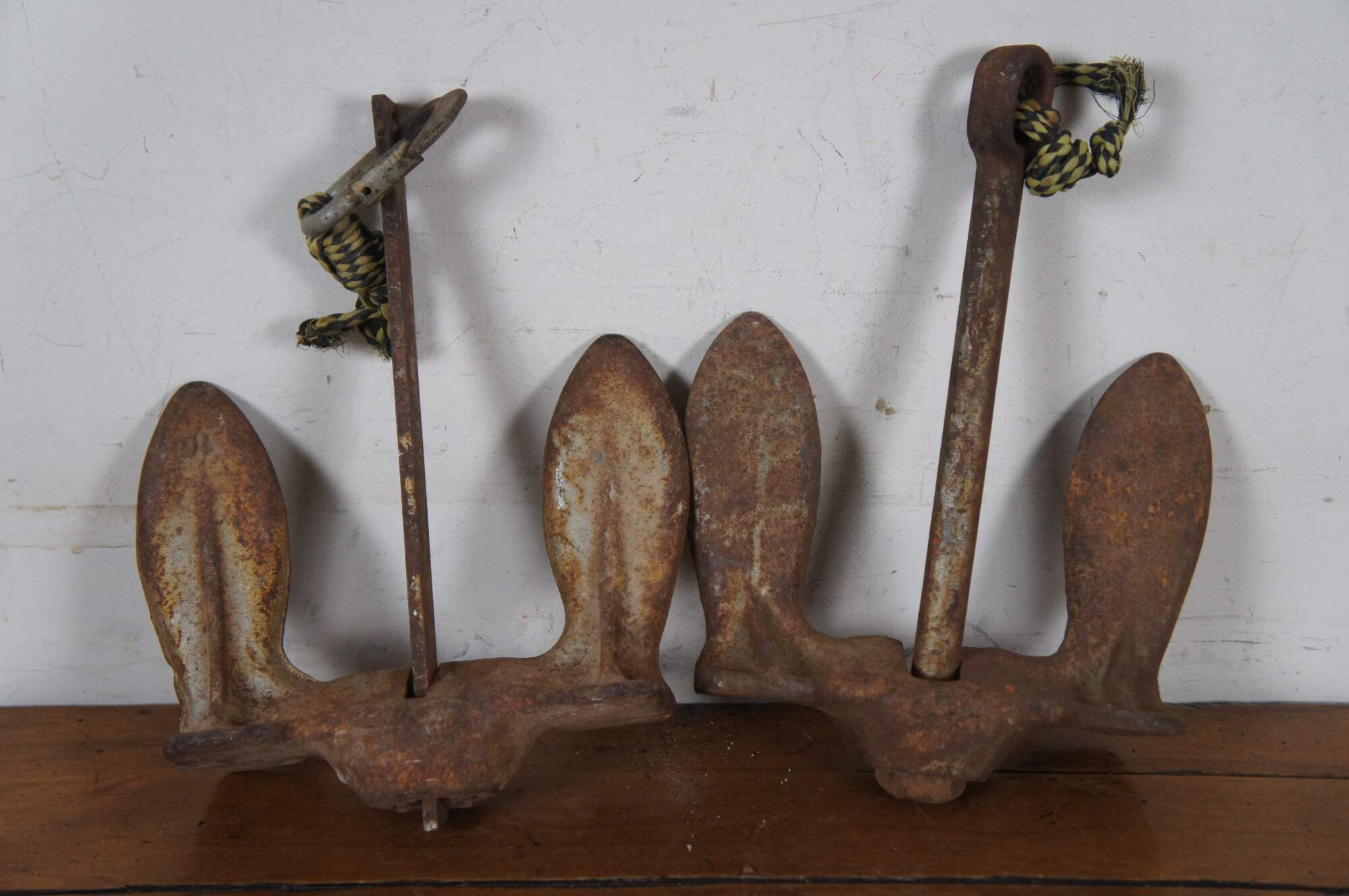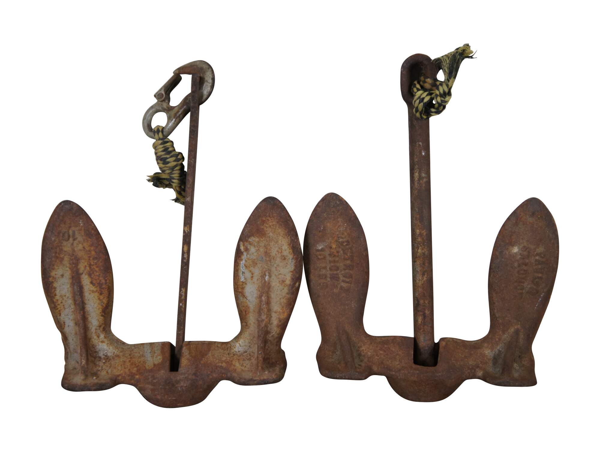 Two vintage 10 pound iron stockless boat anchors, one by Paul R. Salomon of Detroit, MI; the other unmarked.