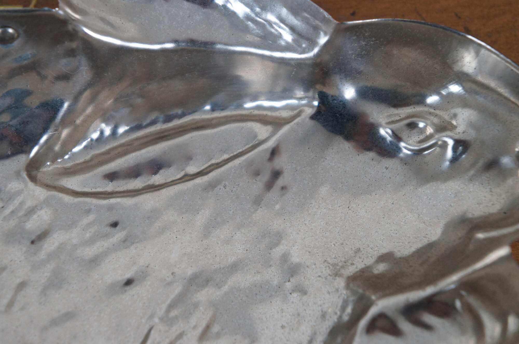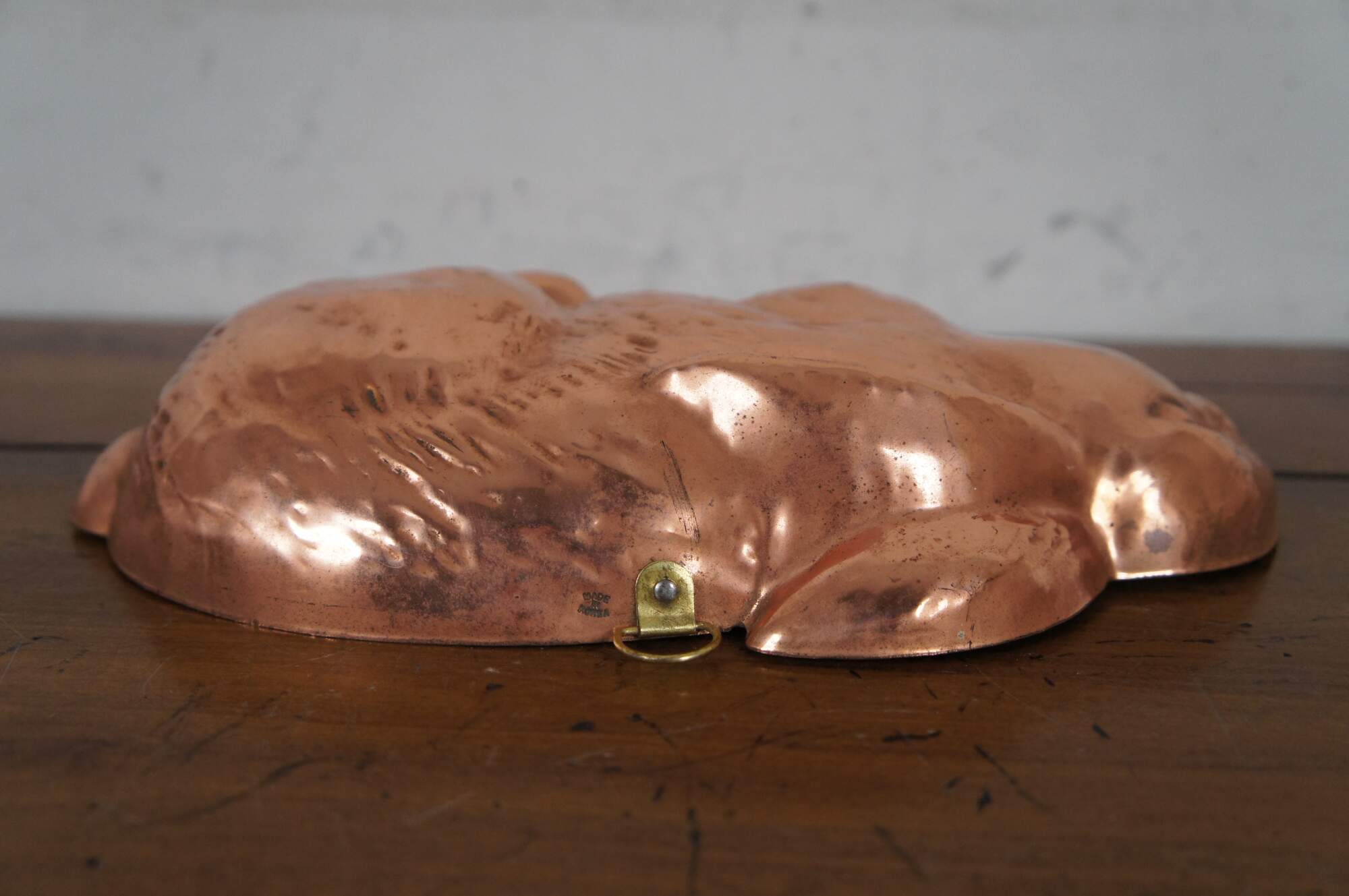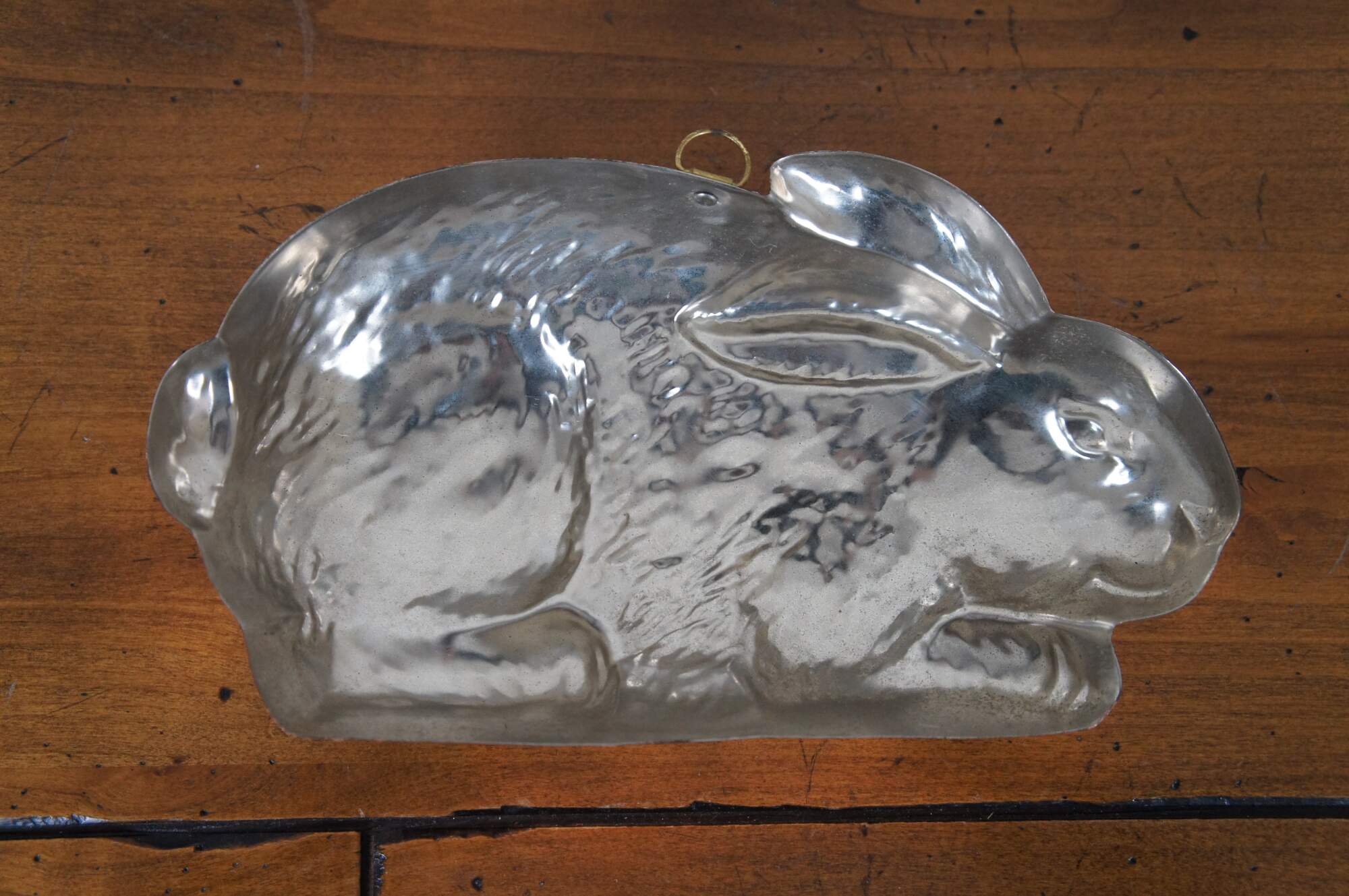 Vintage tin / aluminum lined copper cake pan / dessert mold in the shape of a rabbit / Easter Bunny, with a brass ring for hanging. Made in Korea.