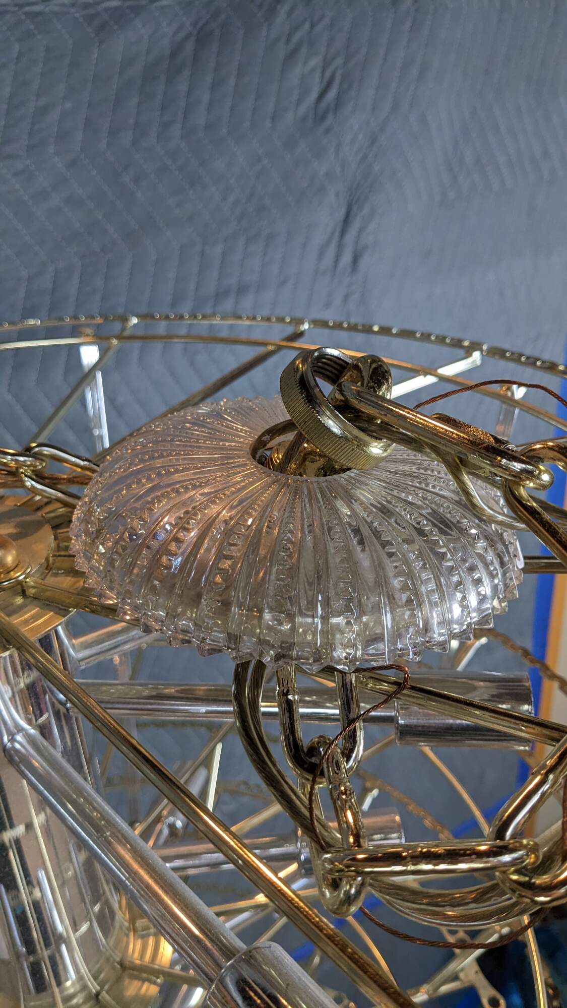 A timeless classic contemporary design featuring 8 tiers and 49 lights. Includes a crystal canopy
