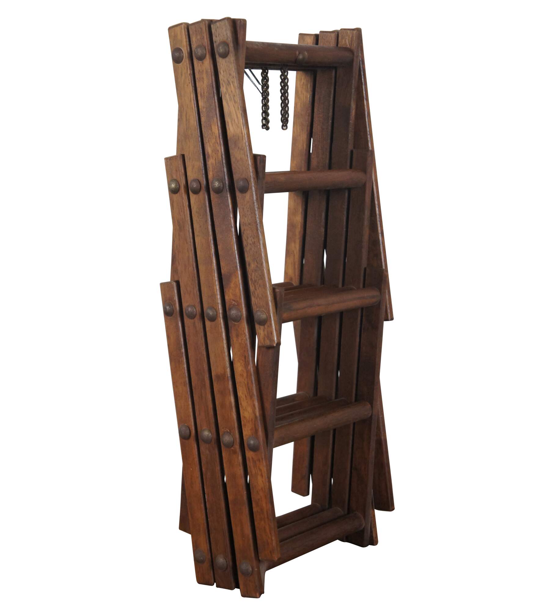 Vintage wooden accordion/ concertina style folding countertop wine rack with capacity for ten bottles of wine.