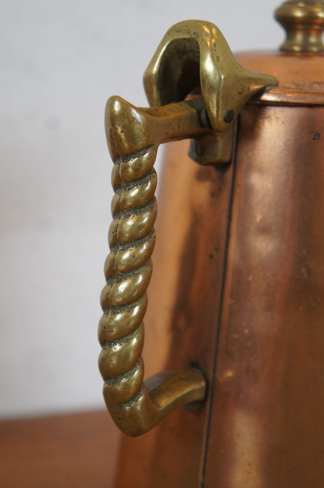 Vintage Colonial style, lightly hammered copper farmhouse kettle / water pitcher with brass spout, finial, and twist handle. Hand made by Colonial Virgina of Hampton VA.