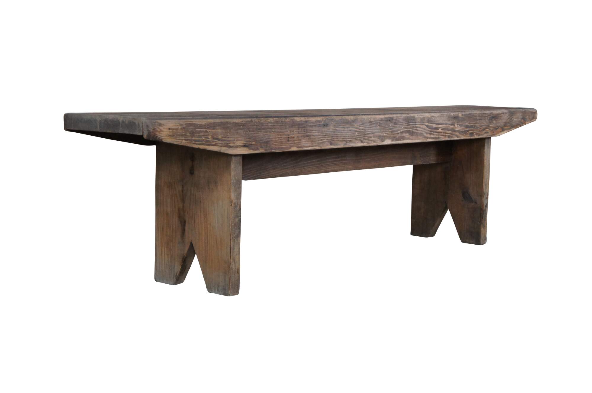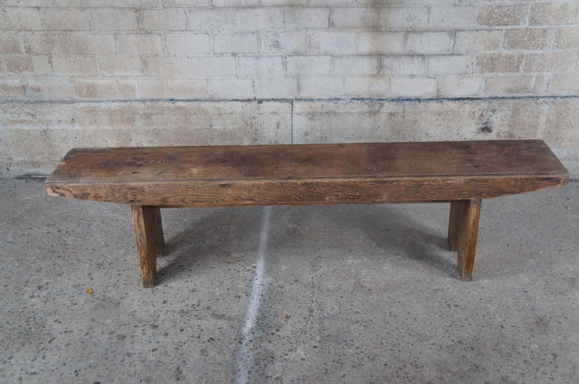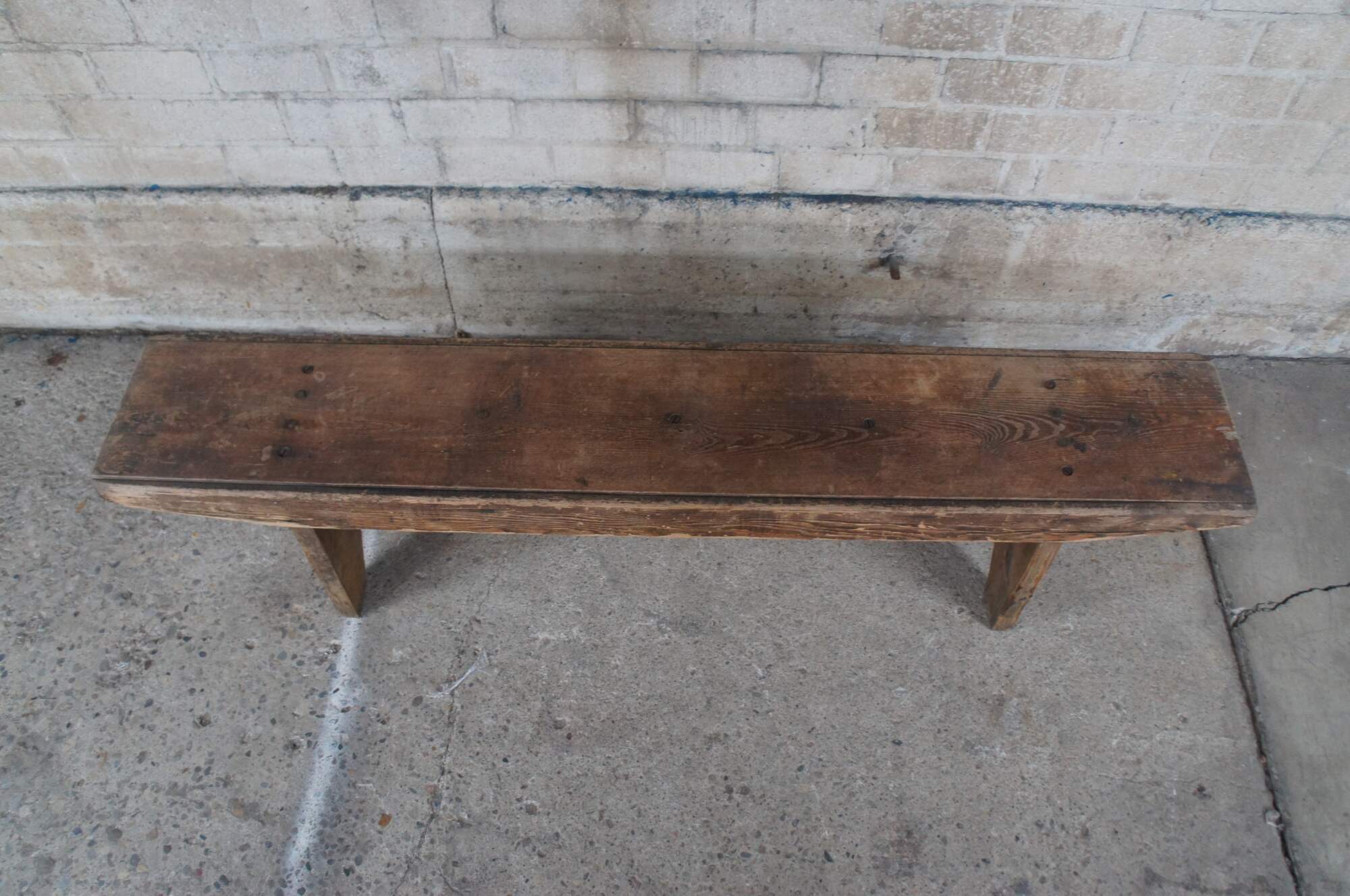 A beautiful Arts & Crafts farmhouse pine bench. Features a distressed rustic patina. Built using large old flat head screws