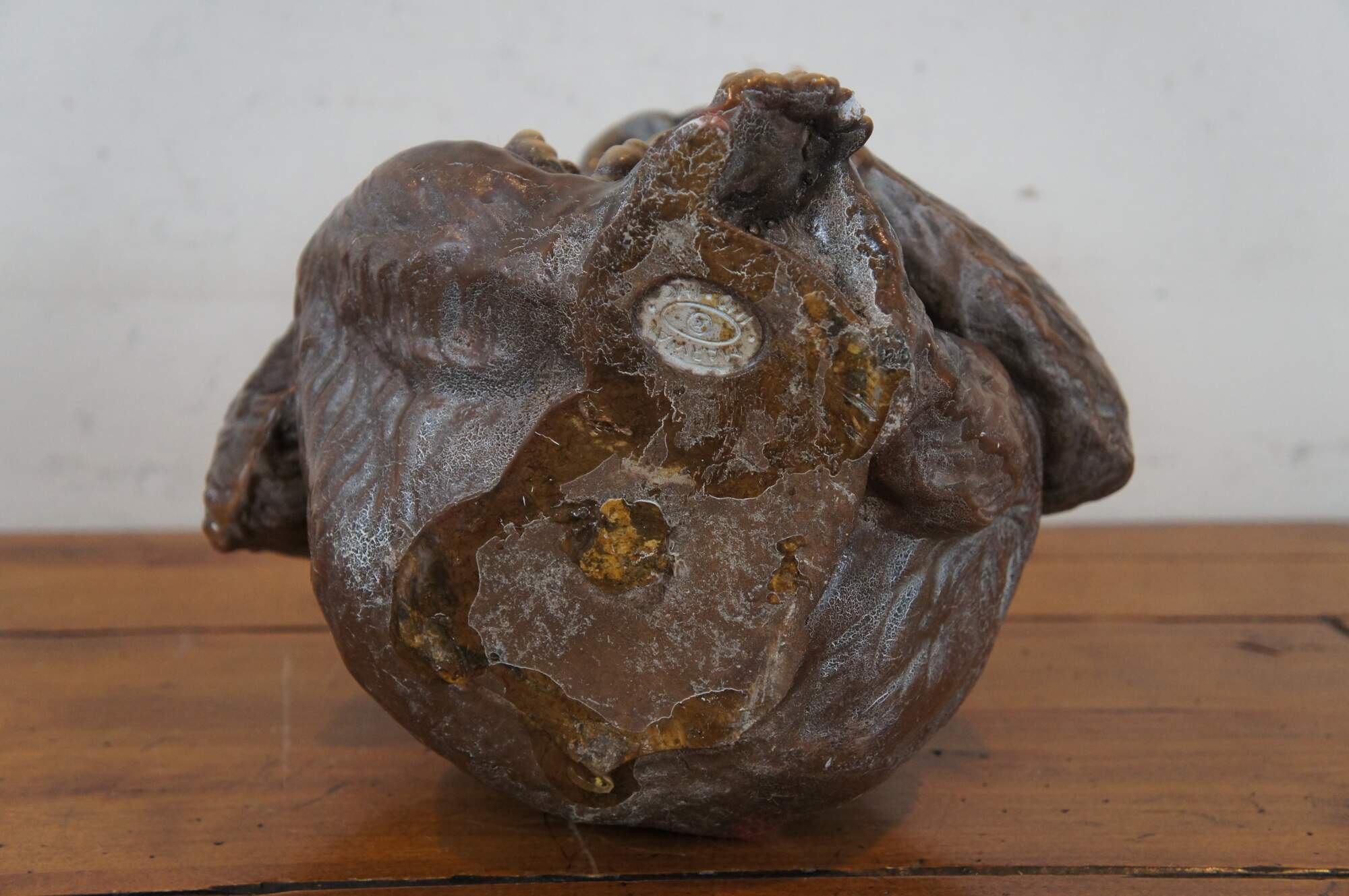 Rare vintage figurine / statue of a seated brown primate / ape / chimpanzee by Marwal Industries Inc, crafted of chalkware with a glossy lacquer finish.