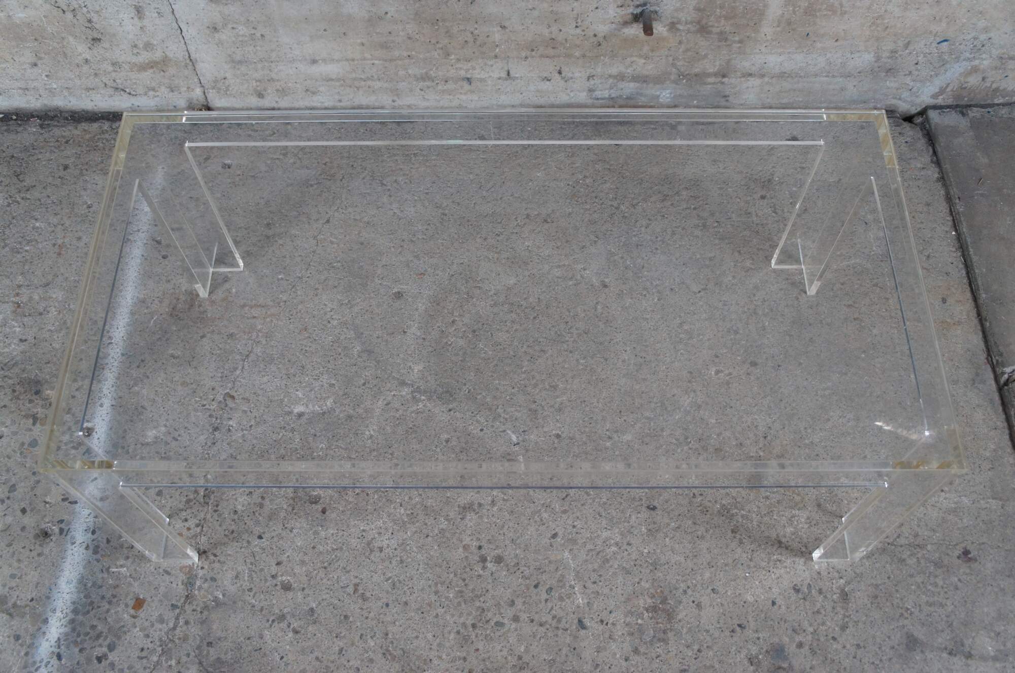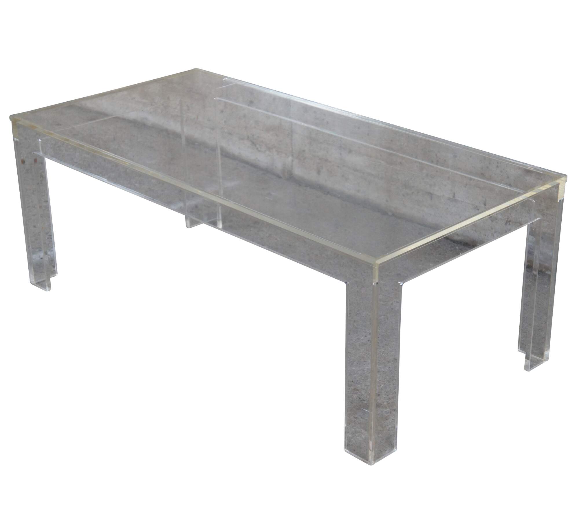 Mid century Modern Parsons lucite coffee table featuring rectangular form.