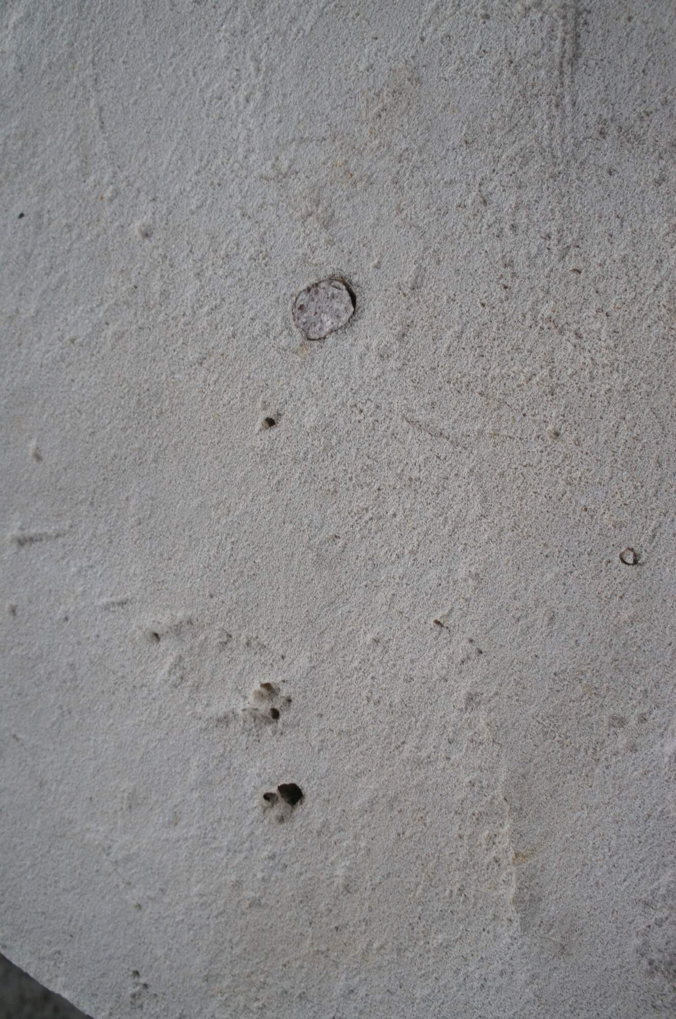 Very good, wear and distressing commensurate with age and use, natural stone imperfections, not perfectly round or flat, wear to base of table and top of pedestal where they contact.