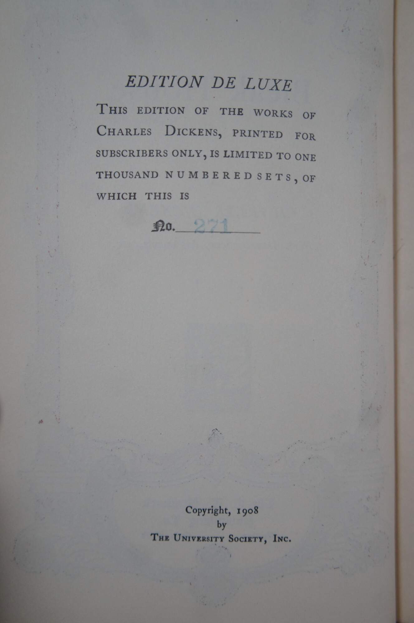 The Works of Charles Dickens - The C.T. Braindard Co, Boston, New York - Edition de Luxe No. 271/1000 - Copyright 1908 by The University Society, Inc.