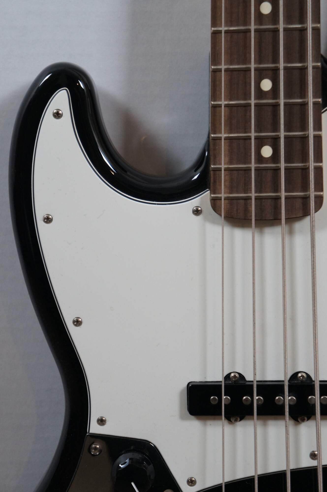 Vintage 2013 Fender Standard Jazz Bass® Left-Handed, Rosewood Fingerboard, Black electric bass guitar. “Combining traditional design with contemporary features, the left-handed Standard Jazz Bass is an elegant and affordable classic designed for the bassist who appreciates great style, rich and versatile tone, and excellent value. Time-honored Fender style and performance-minded modern upgrades don't have to break the bank, and this model delivers the best of both in a design ideal for Jazz Bass players everywhere at every level.”