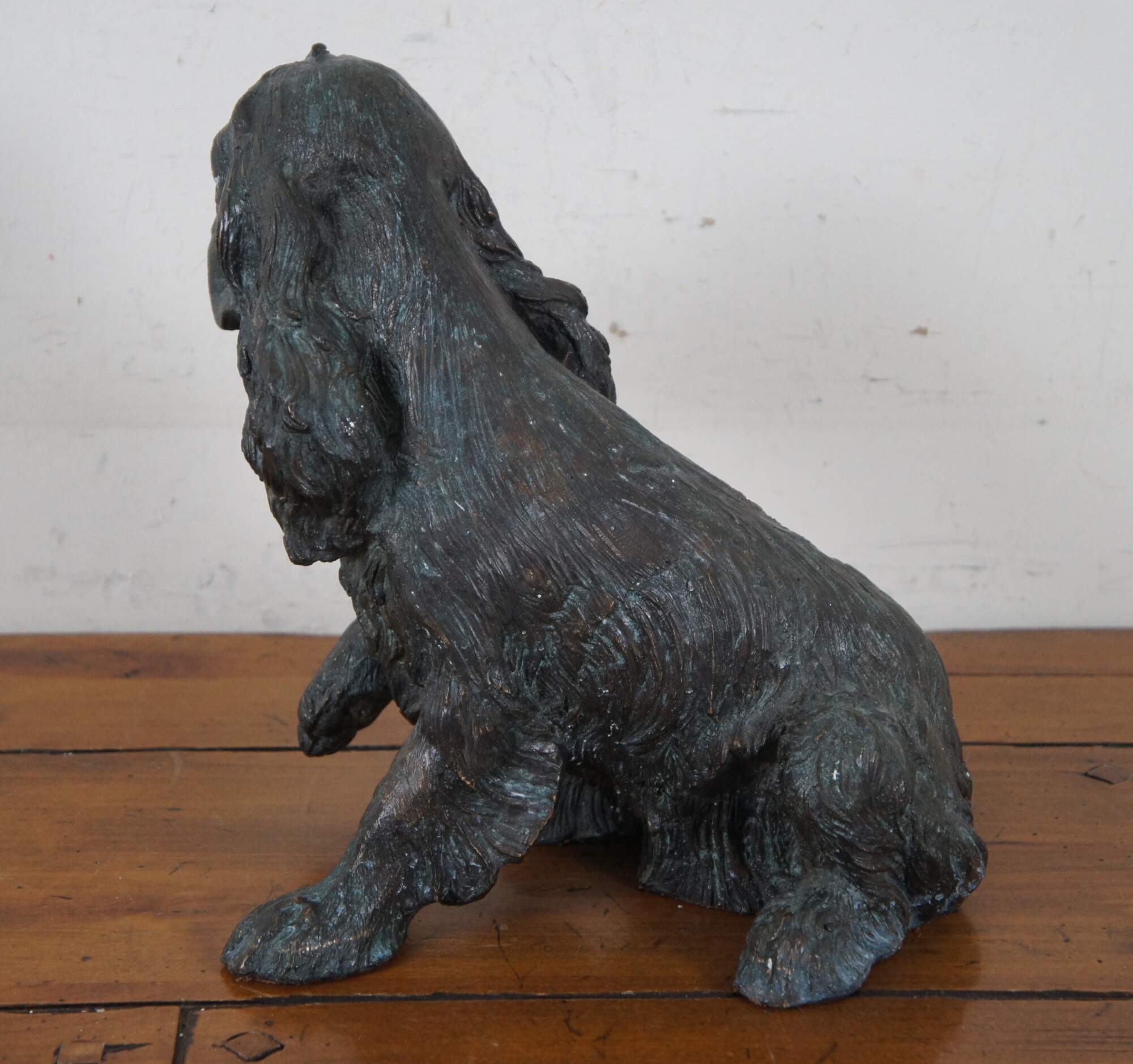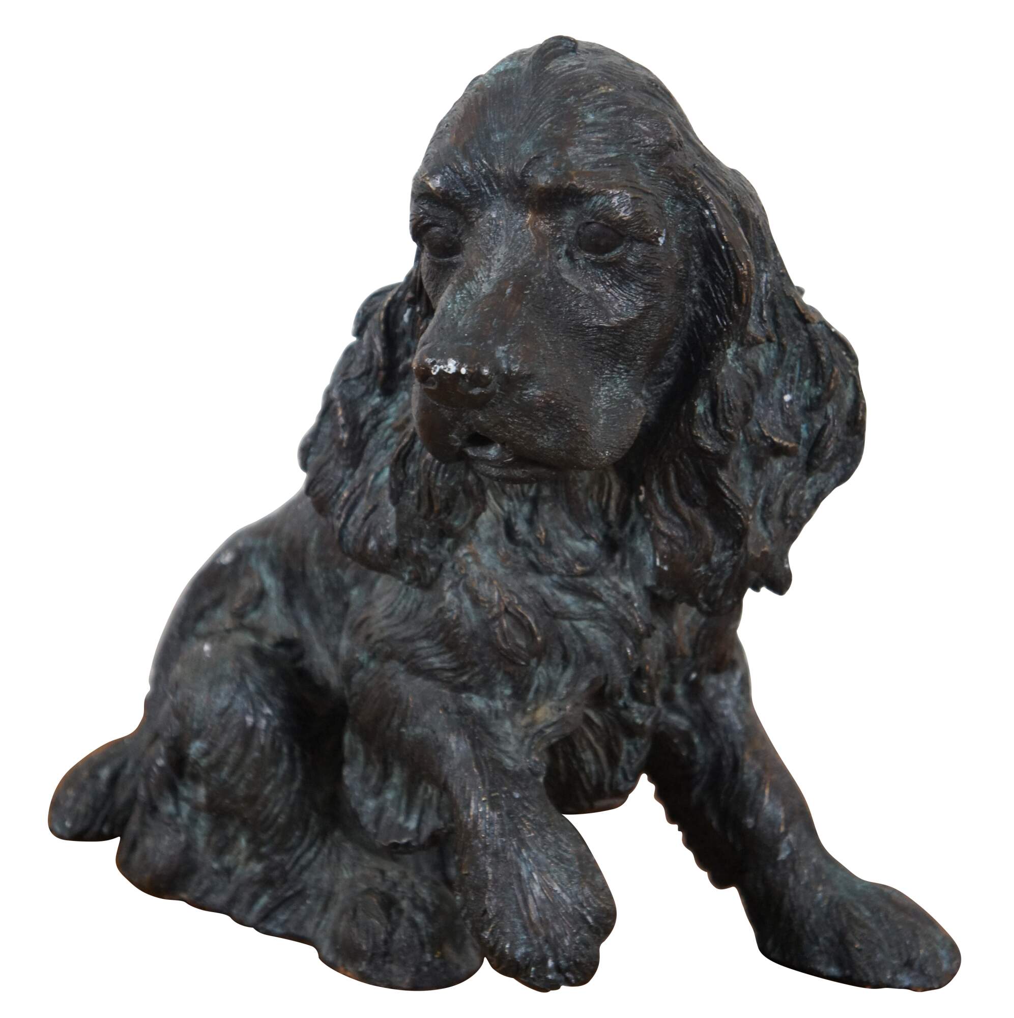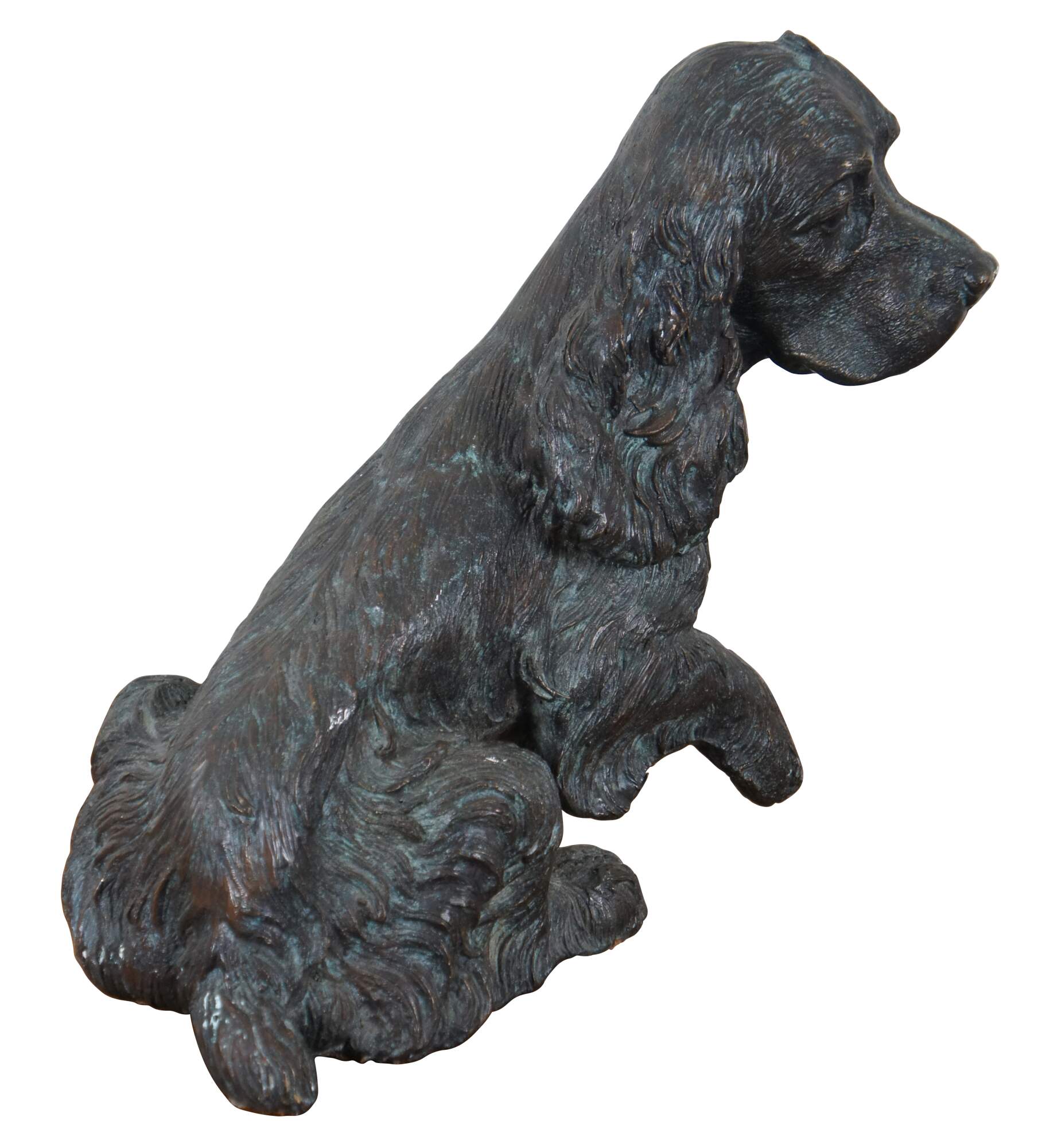 Finely detailed vintage bronze sculpture / statuette of a seated Cocker Spaniel or Irish Setter with one paw raised.