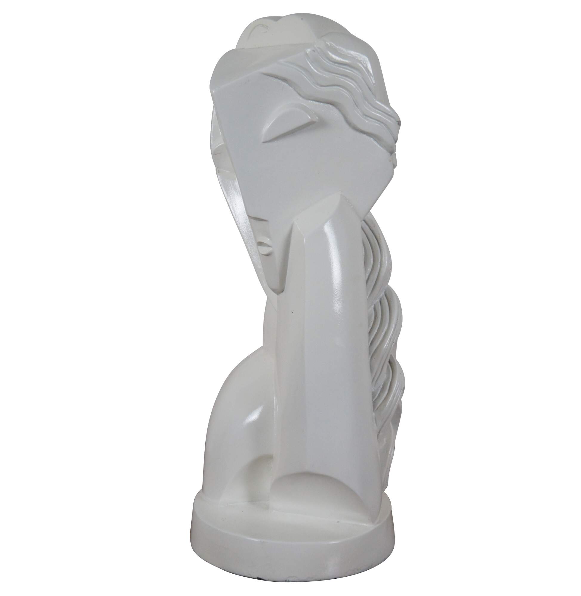 Mid Century Modern 1961 glossy white plaster impressionist / expressionist sculpture produced by Austin Products / Productions Inc, based on Head of a Young Girl (Tete de Jeune Fille) – 1920 by Cubist sculptor Henri Laurens.