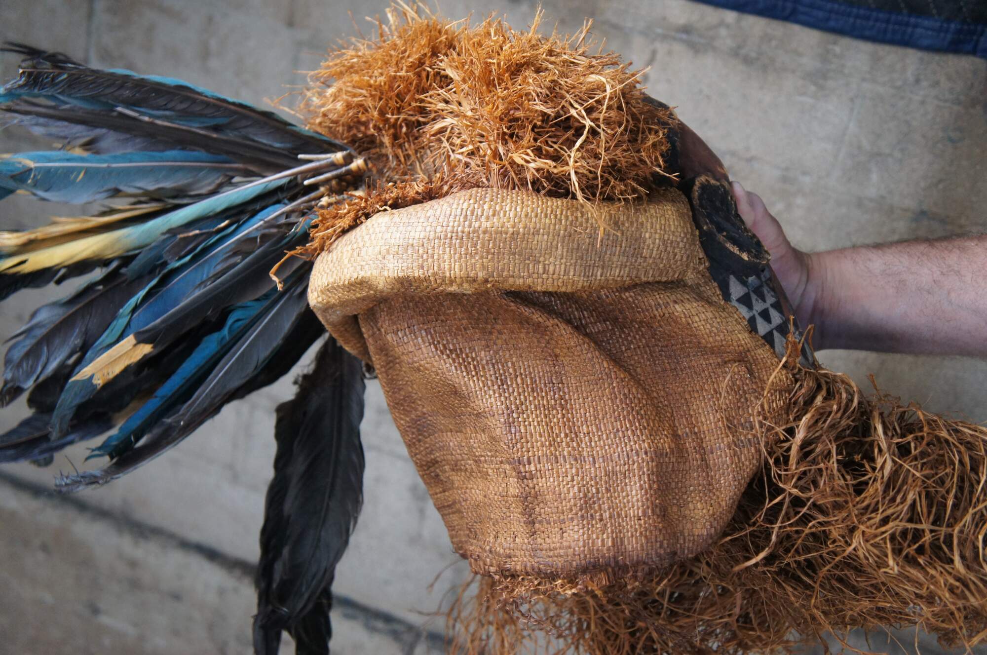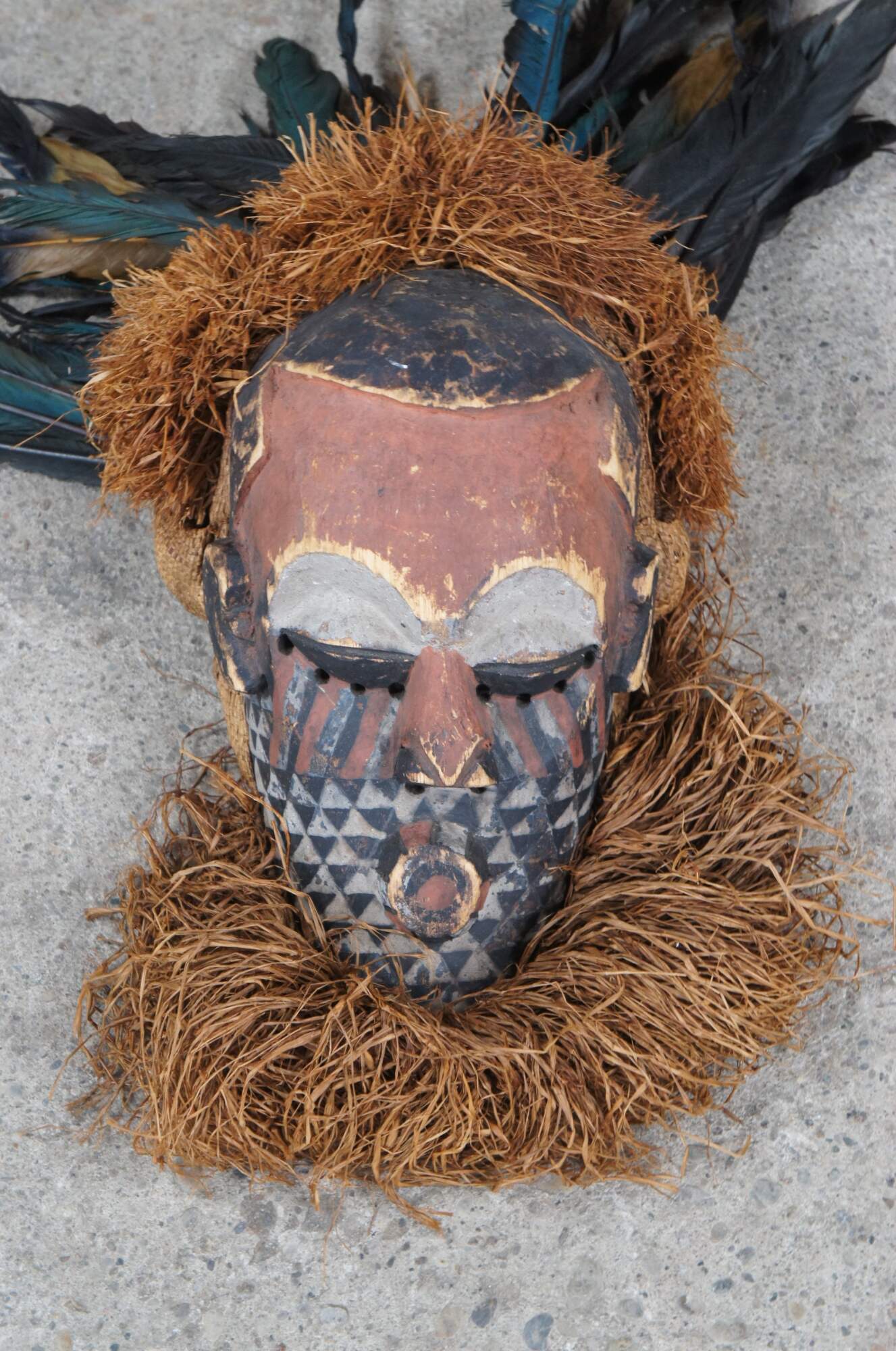 The Kuba Kingdom, also known as the Kingdom of the Bakuba or Bushongo, is a traditional kingdom in Central Africa. The Kuba Kingdom flourished between the 17th and 19th centuries in the region bordered by the Sankuru, Lulua, and Kasai rivers in the heart of the modern-day Democratic Republic of the Congo. This mask was used to declare the status and wealth of a masked personage at funerals of deceased initiated men (mubendi). Masked performances acknowledged the achievements of the deceased and their membership in the initiation society. Made from wood with decorative painting, feathers and straw