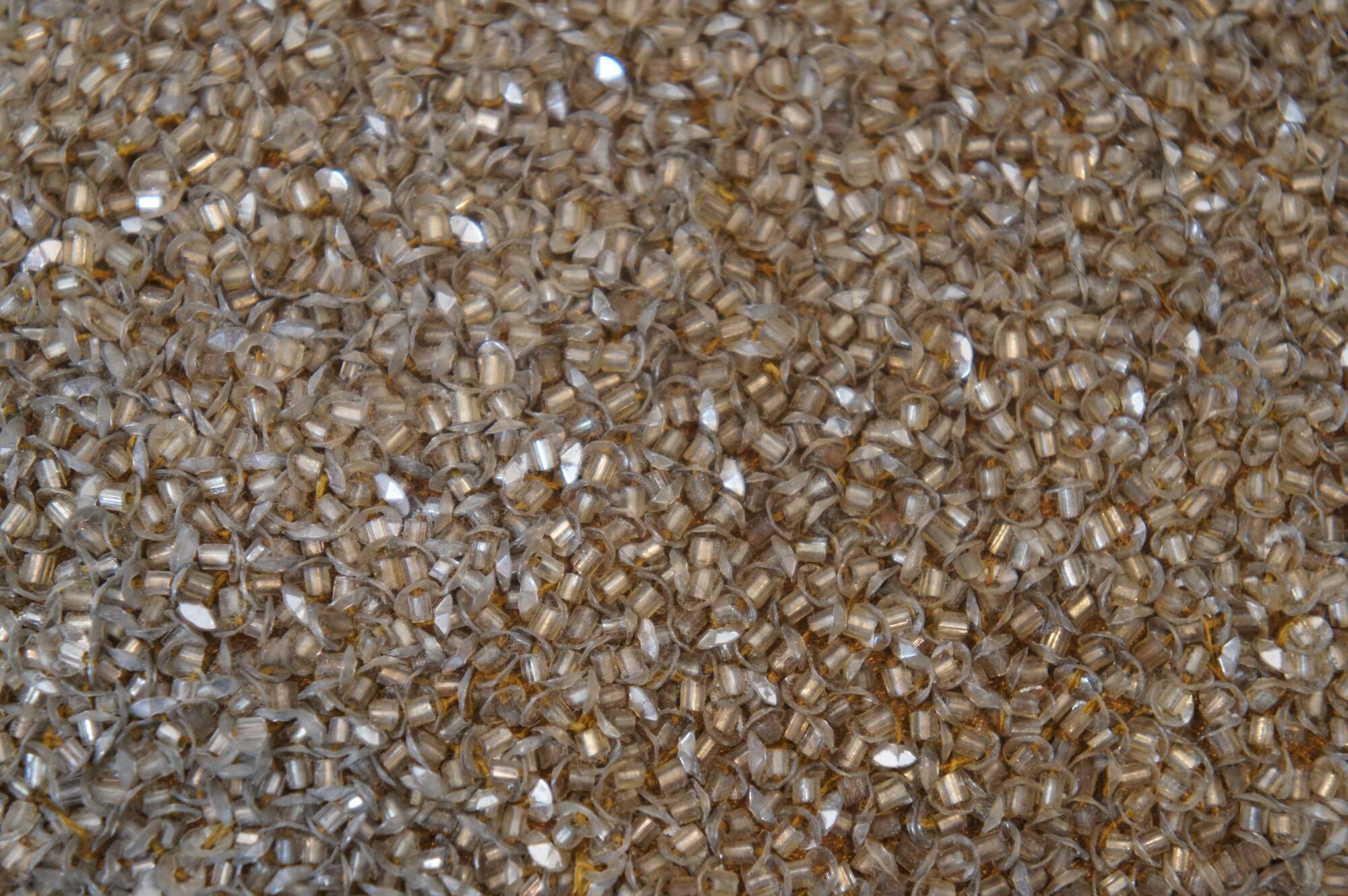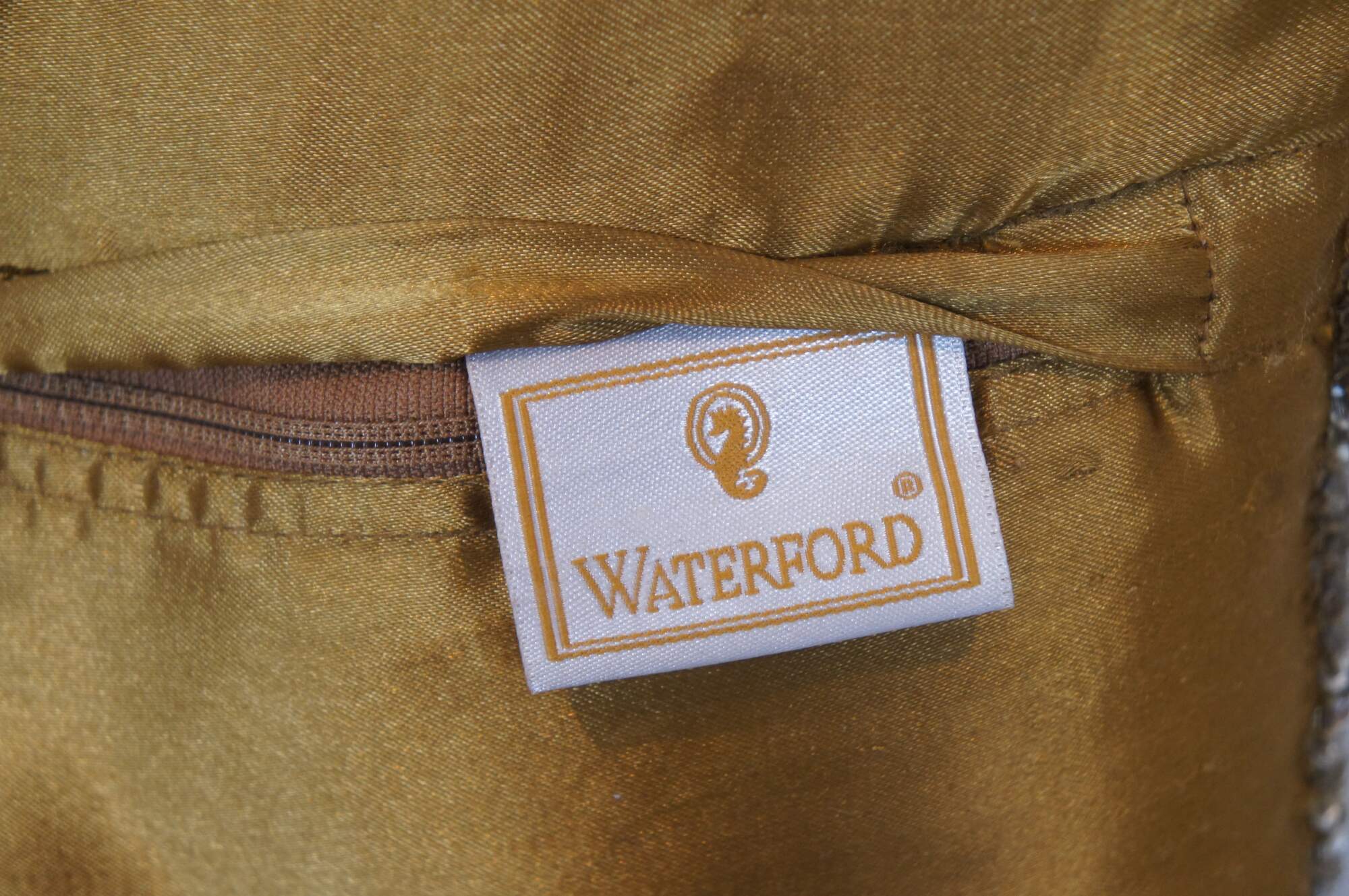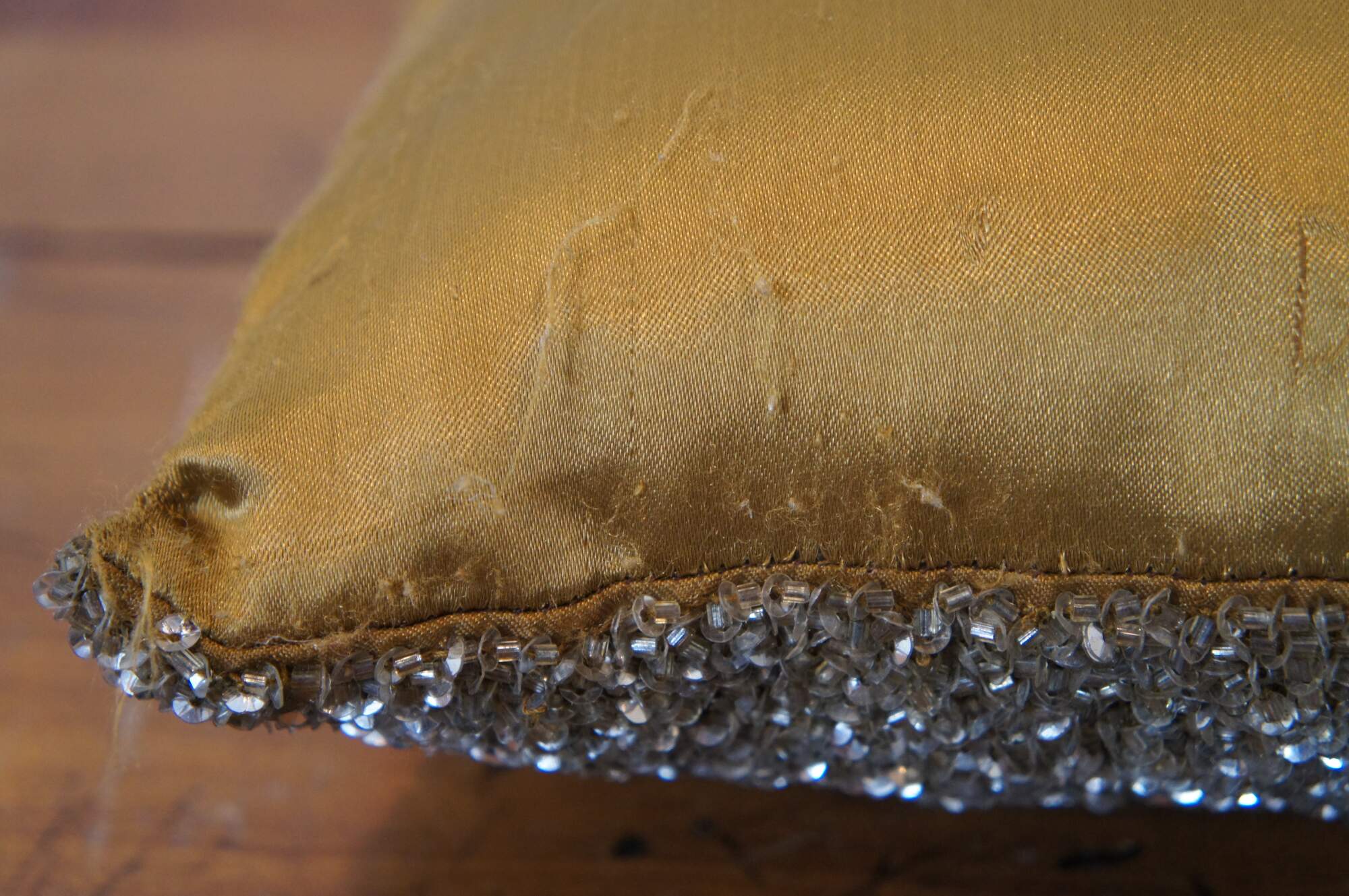 Waterford beaded throw pillow featuring tightly packed sequins and crystal beads on metallic, deep gold polyester. Ployester fiber filled; zippered closure.