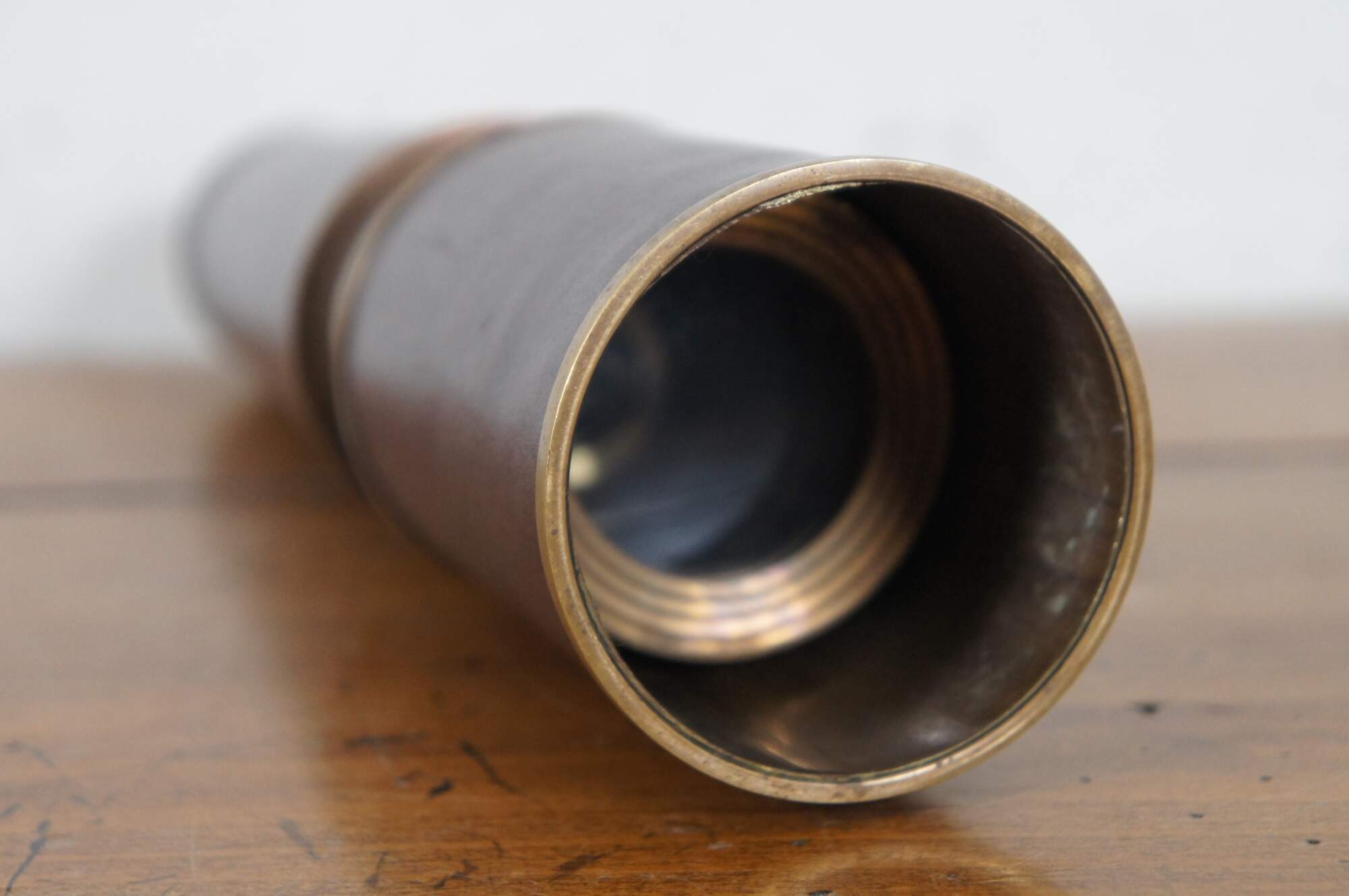 Vintage Stanley London nautical martime collapsible brass ships telescope / spyglass with brown leather sheathing.