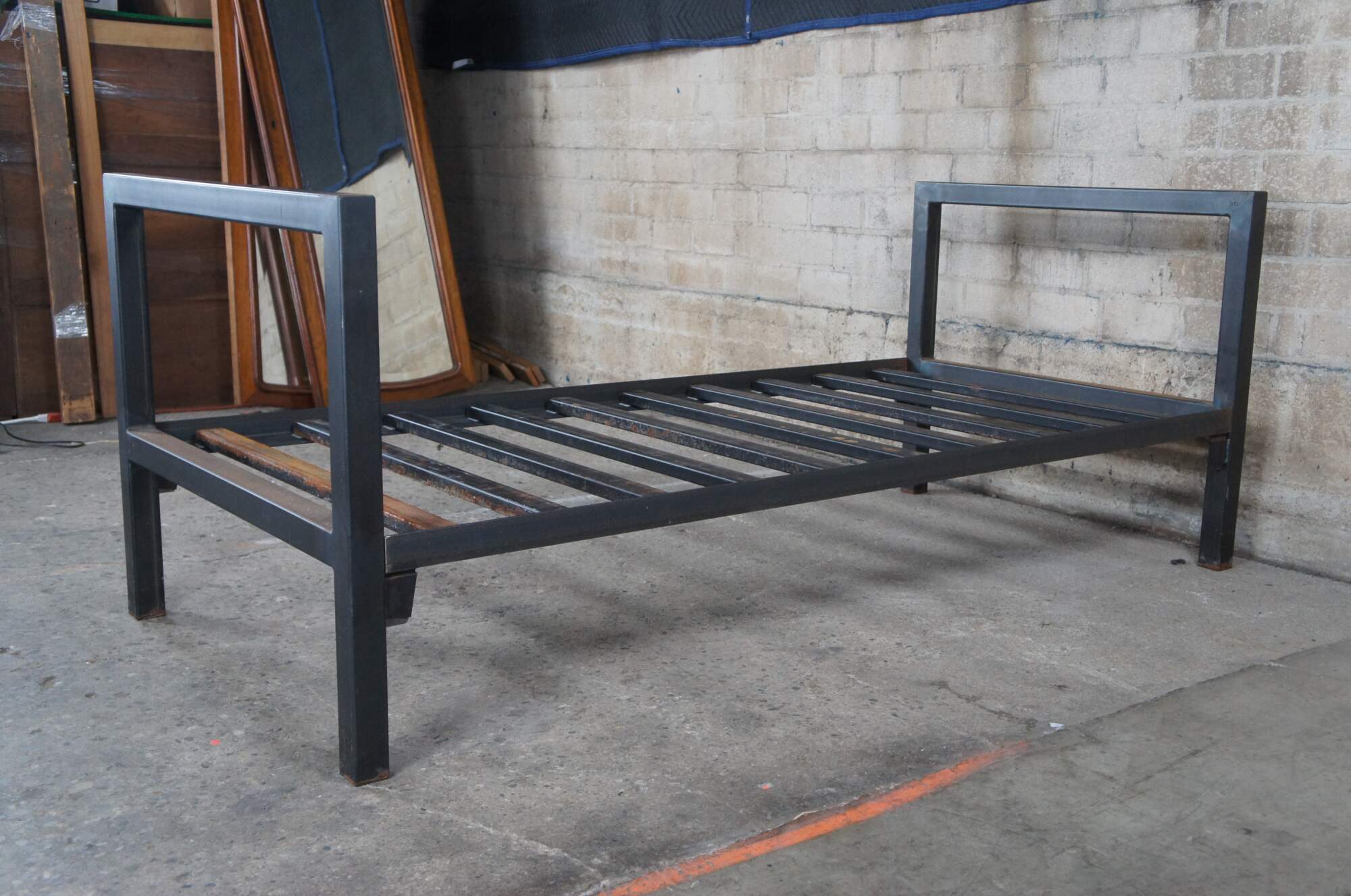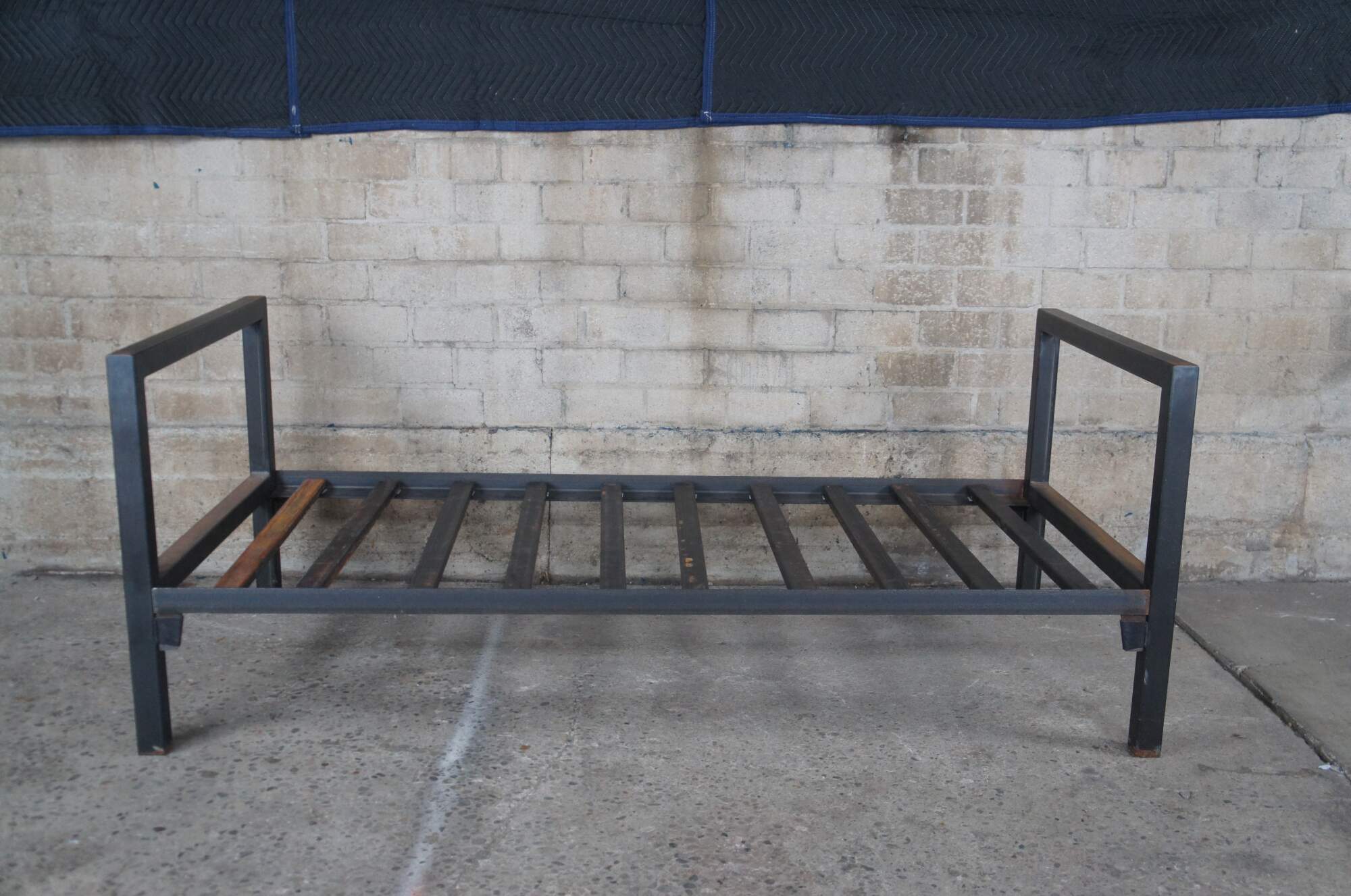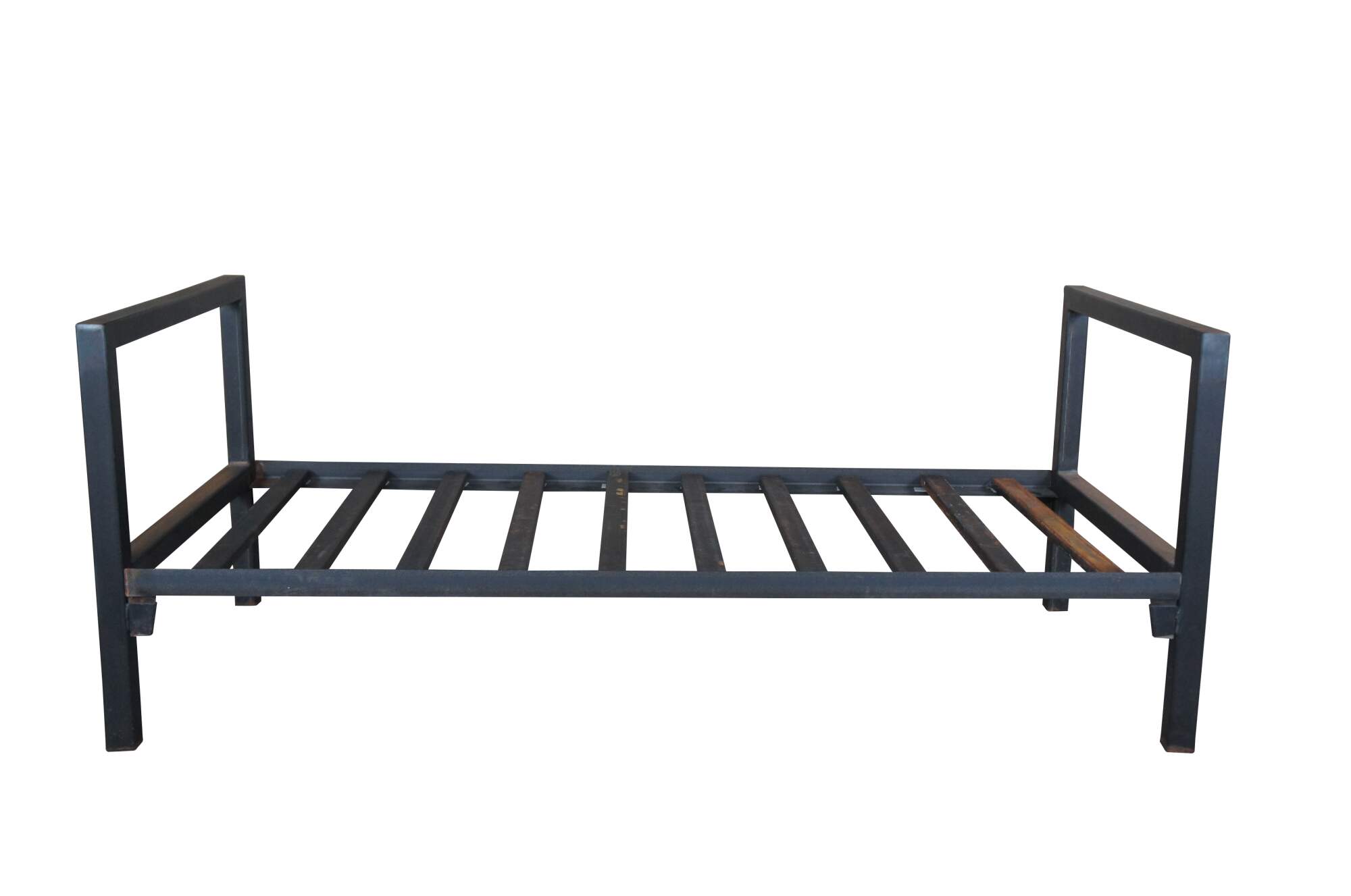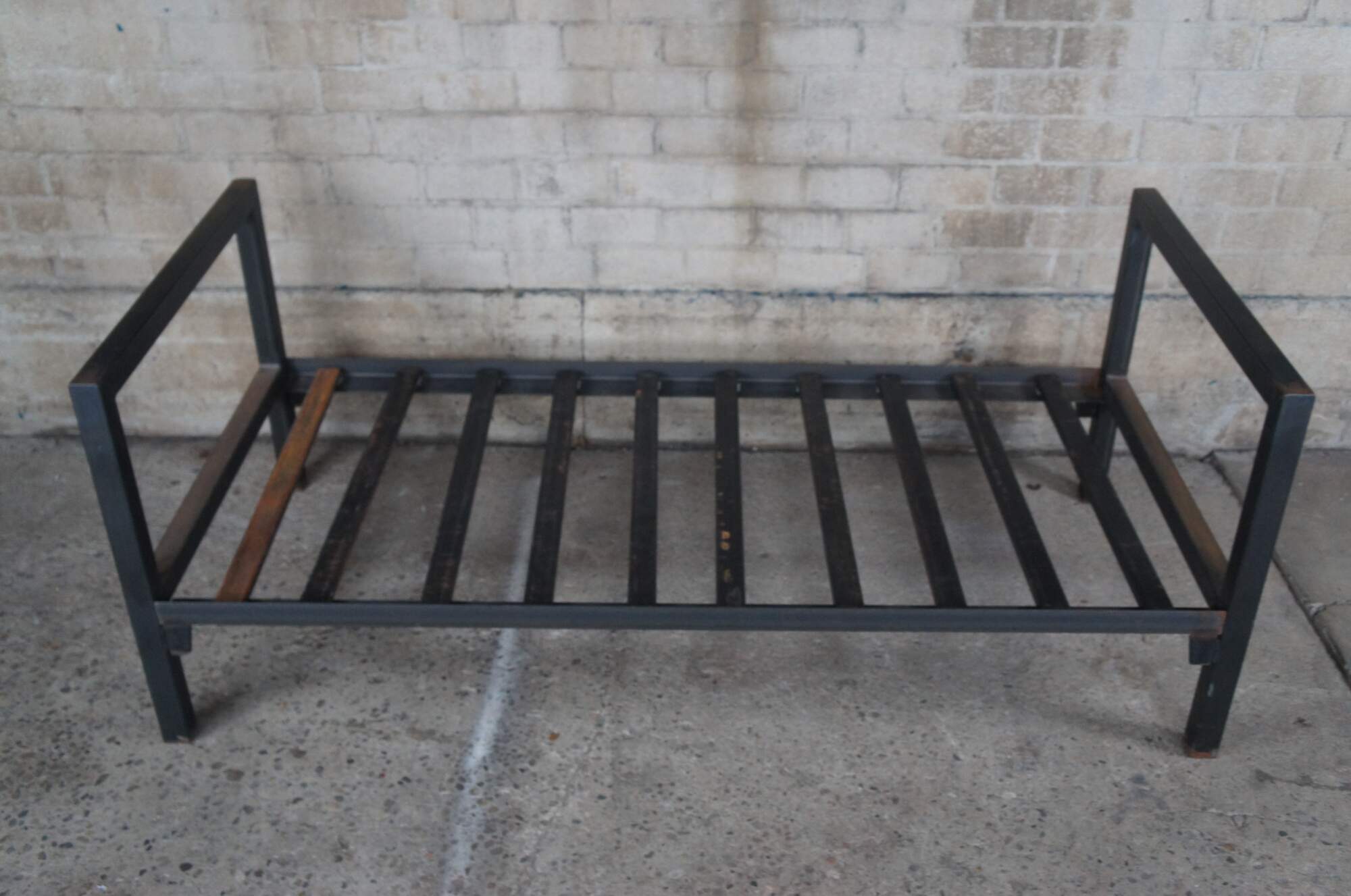20th Century steel bed / daybed. Features a rustic frame with metal steel cross supports.