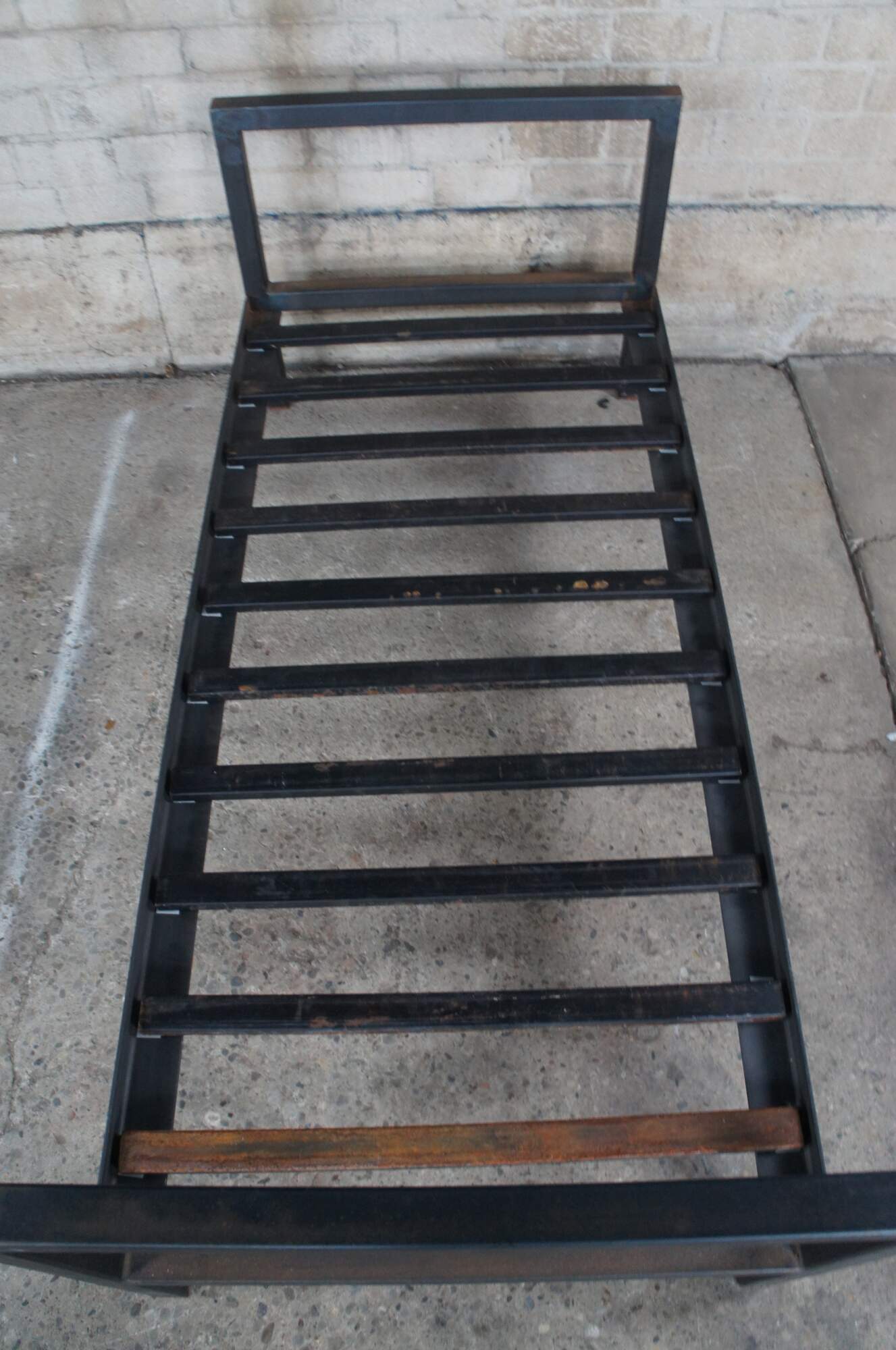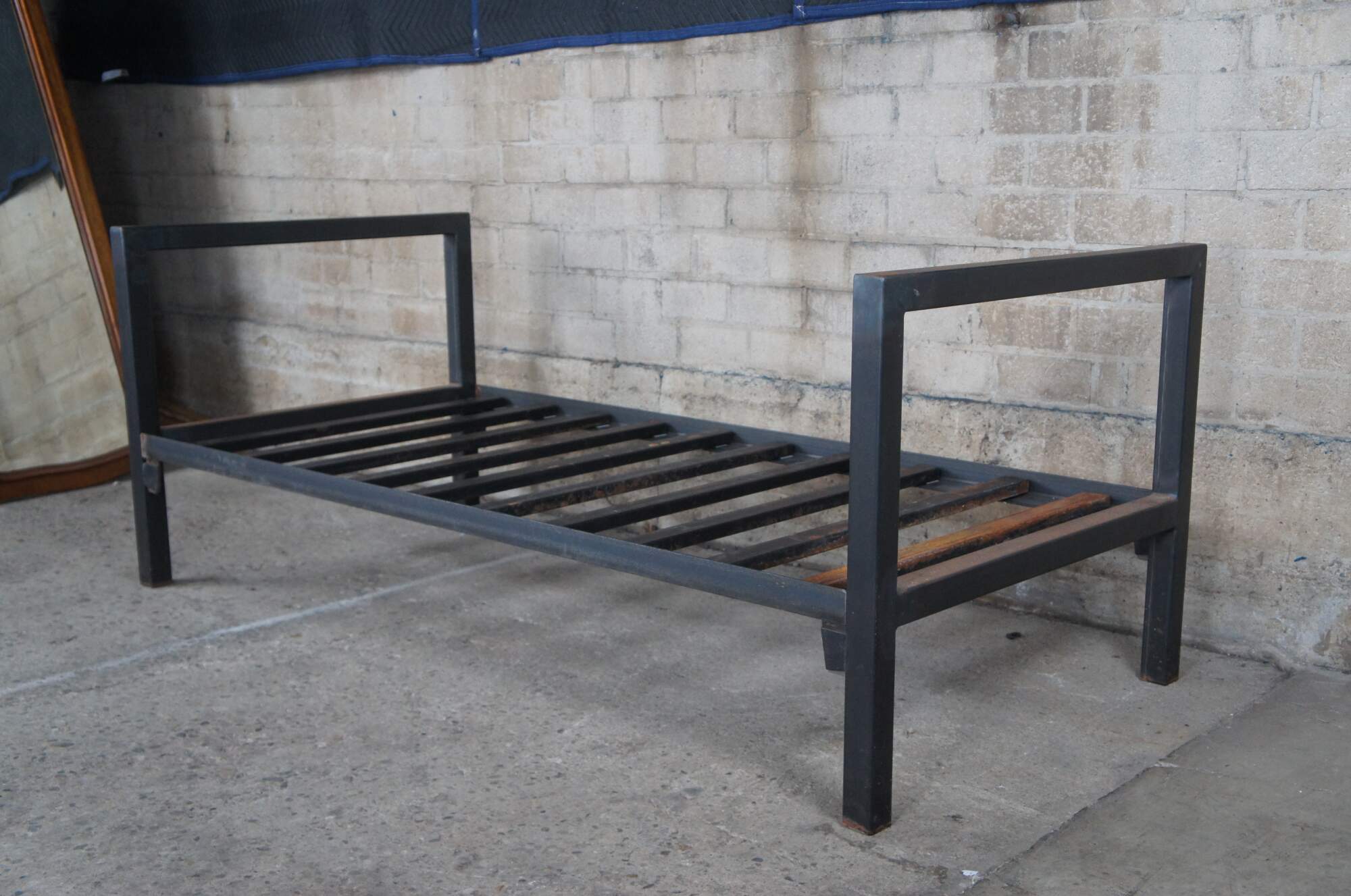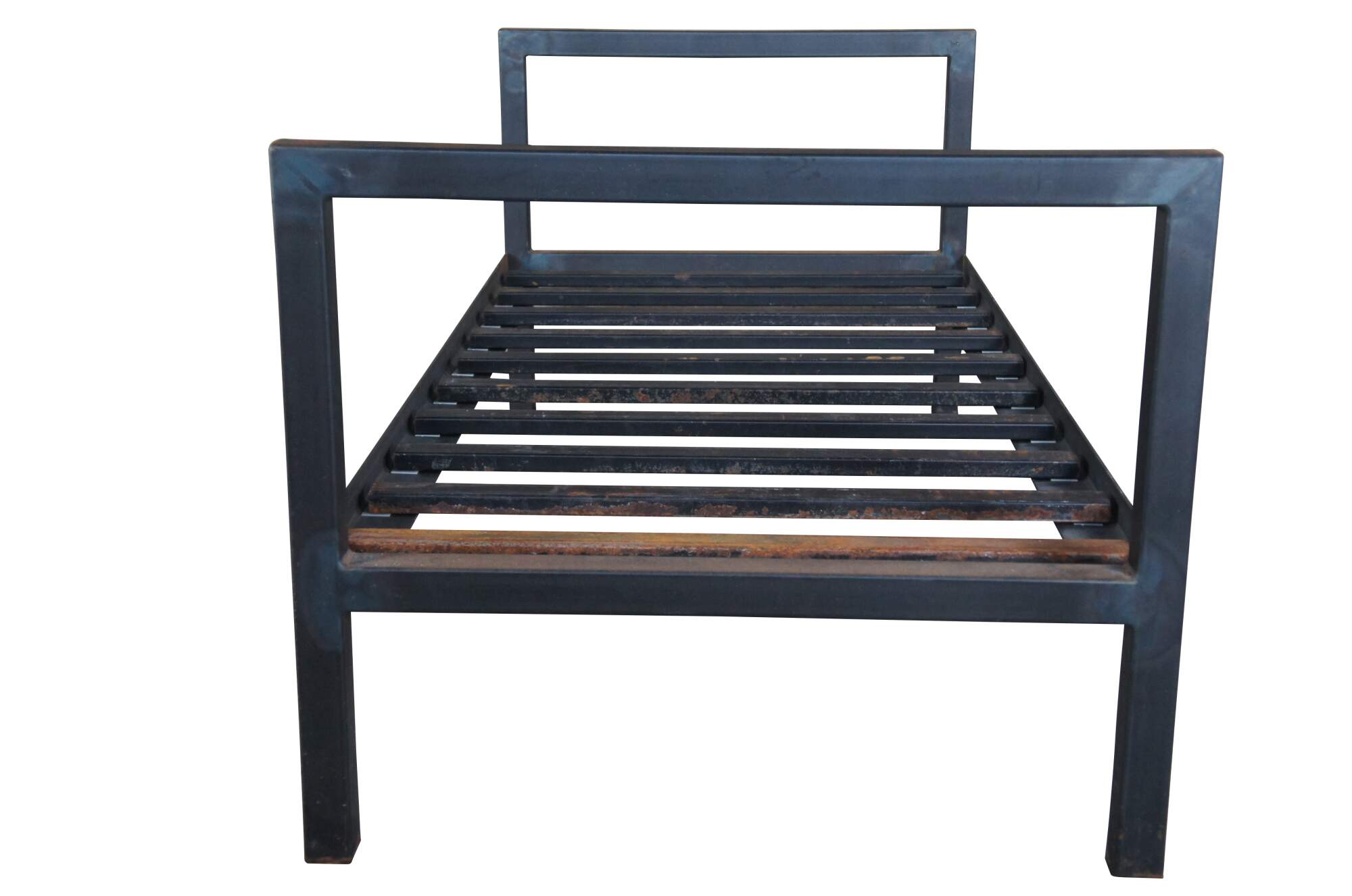 20th Century steel bed / daybed. Features a rustic frame with metal steel cross supports.