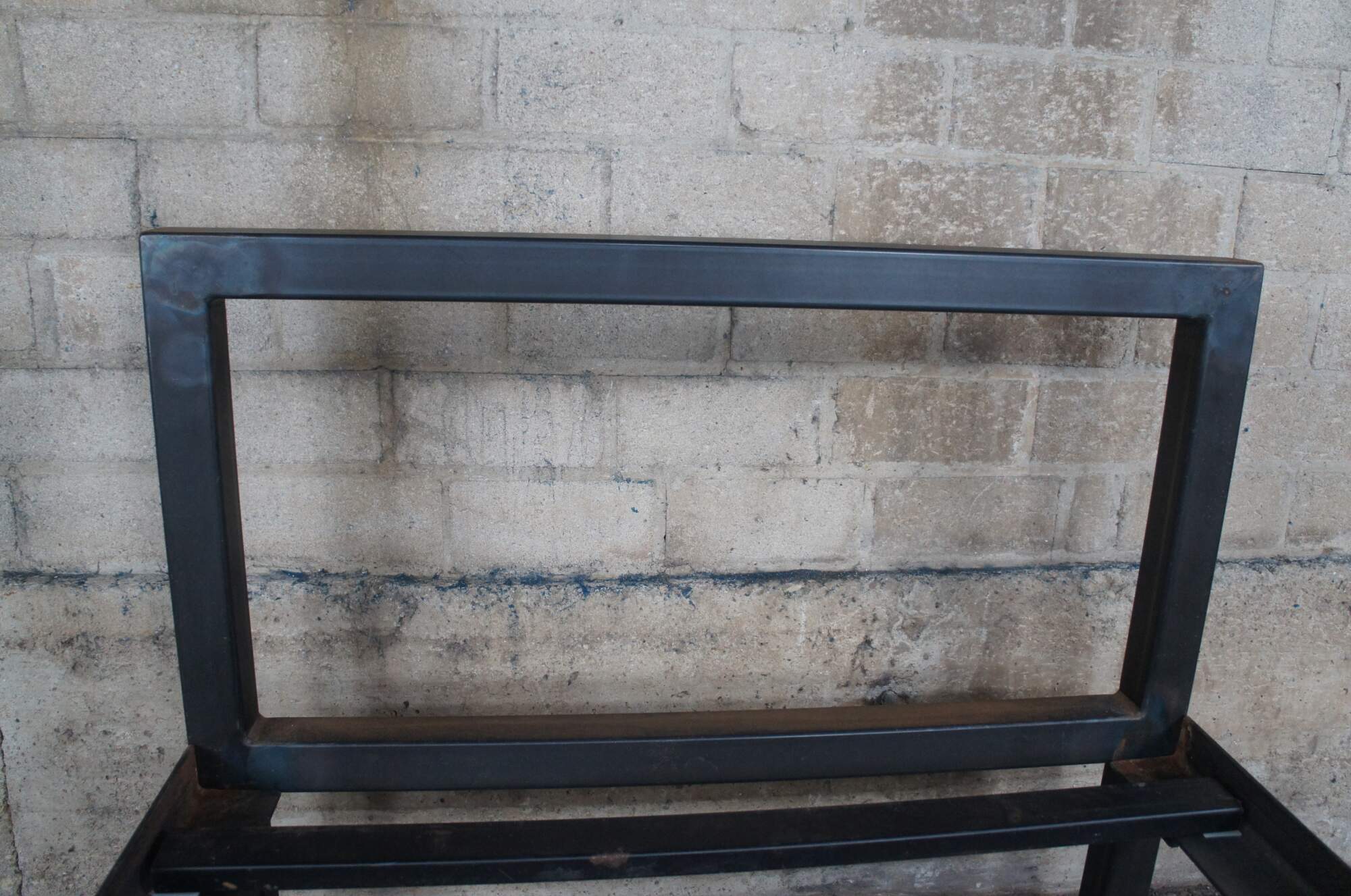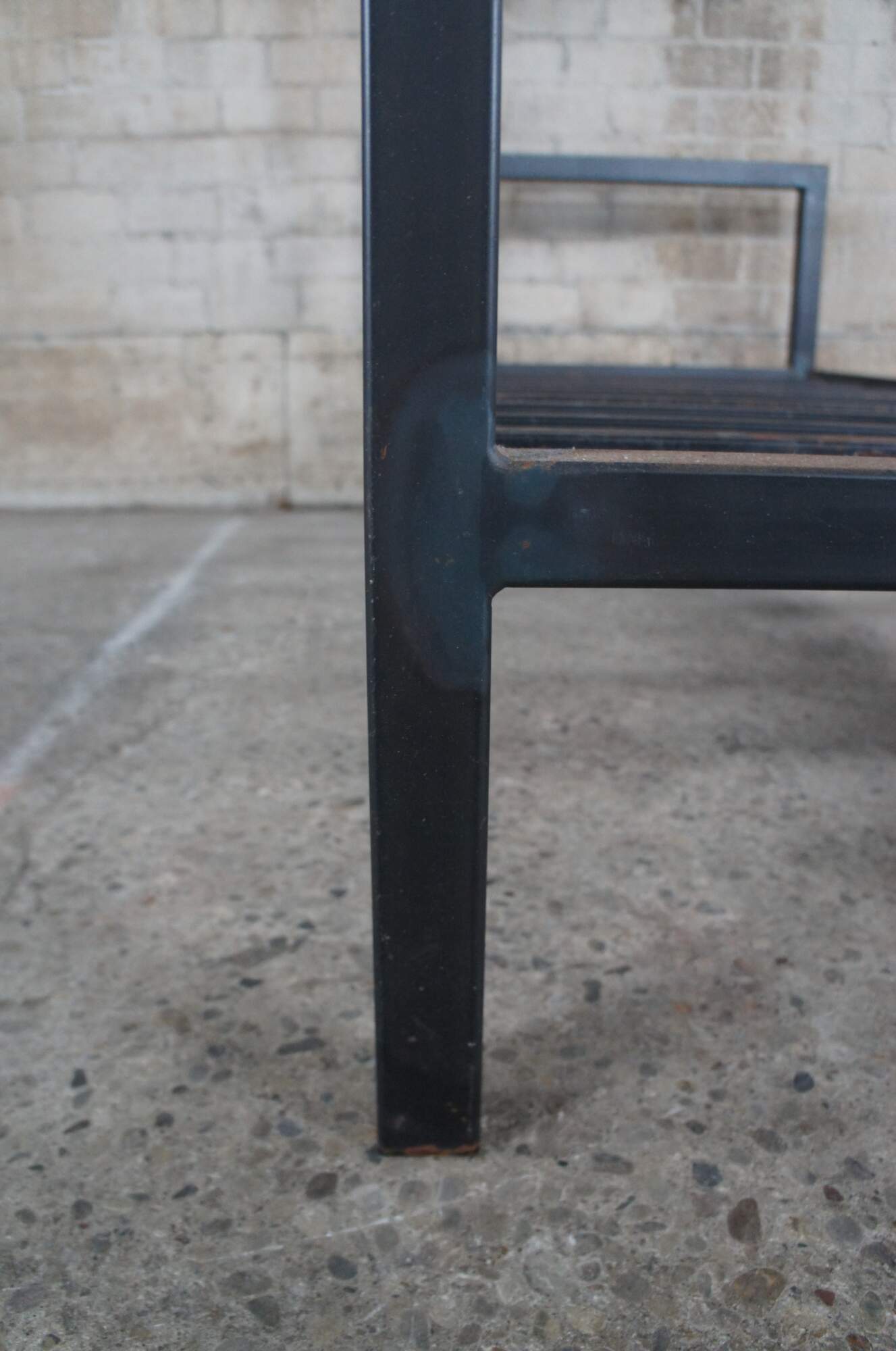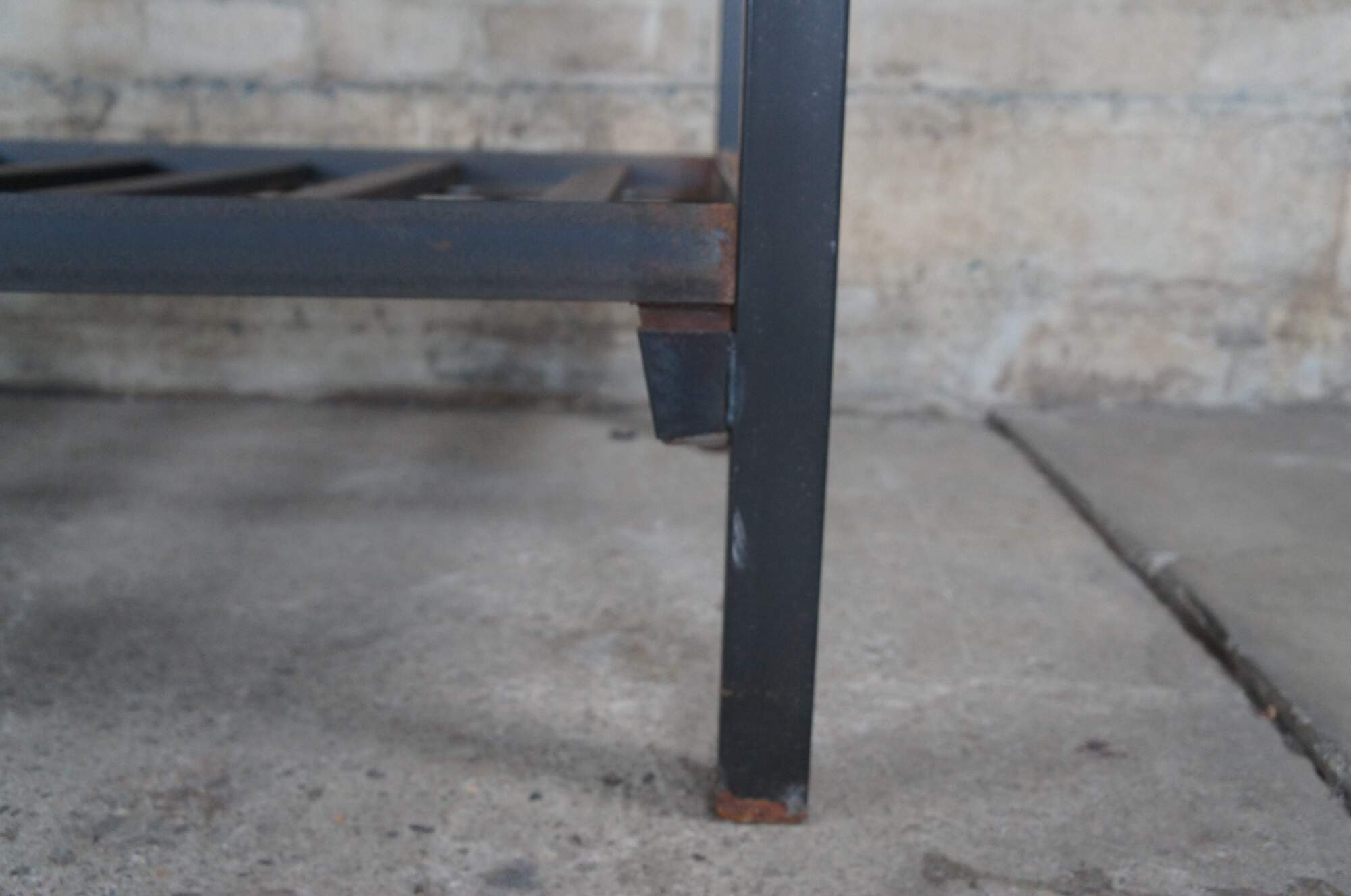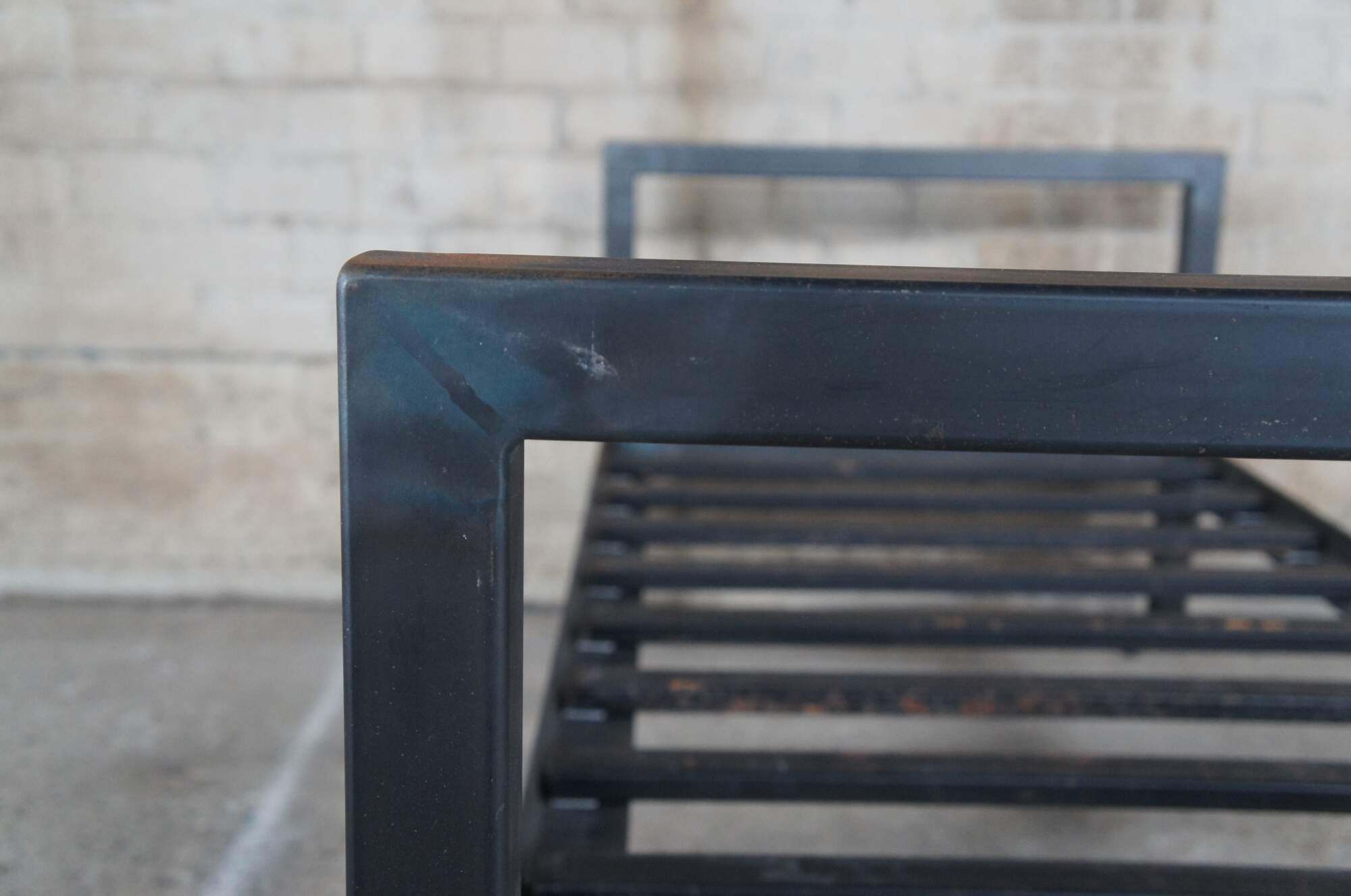 20th Century steel bed / daybed. Features a rustic frame with metal steel cross supports.