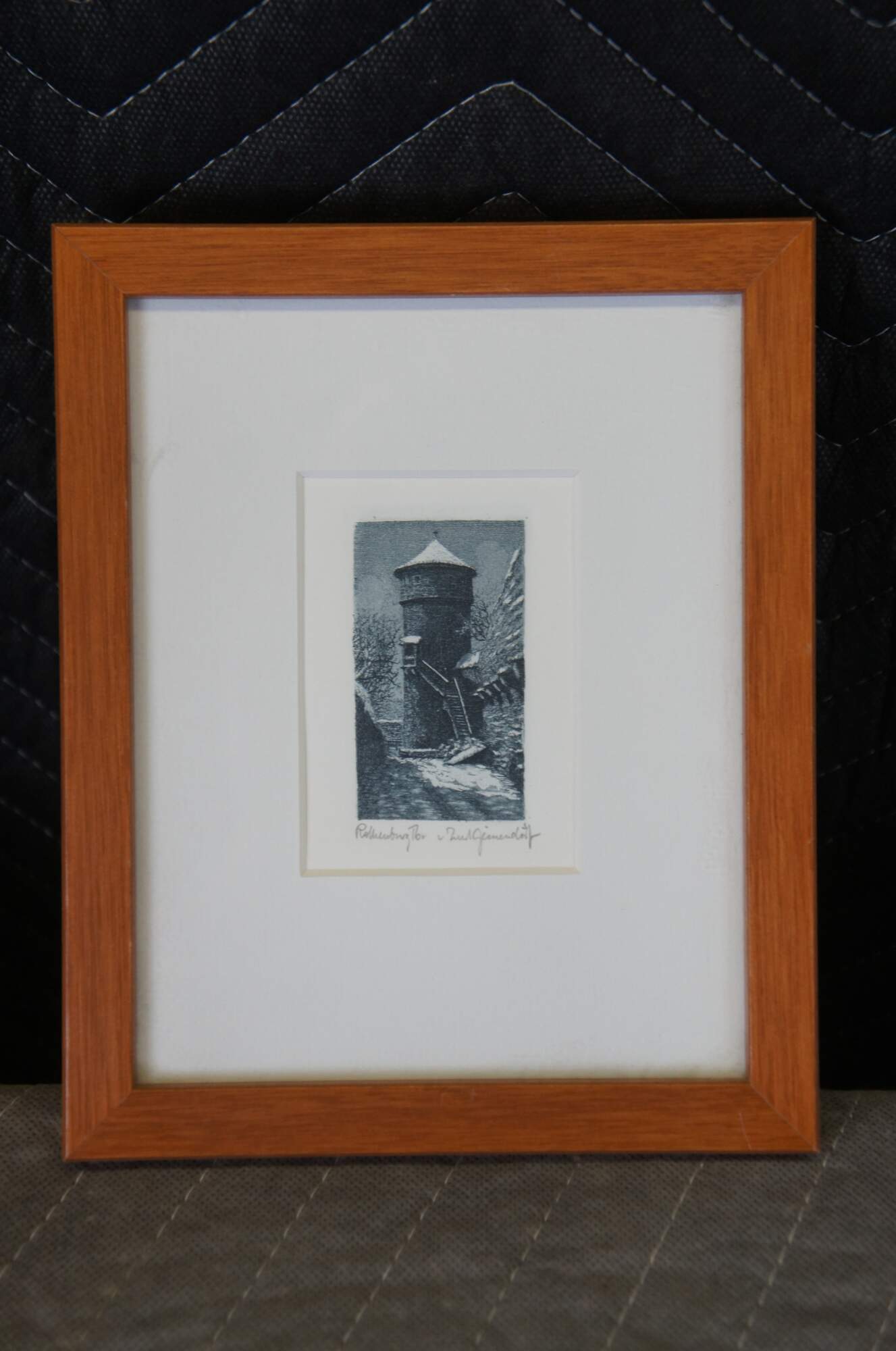 Mid 20th century etching depicting The criminal (penal) tower in Rothenberg Germany. Hand Signed Lower right.